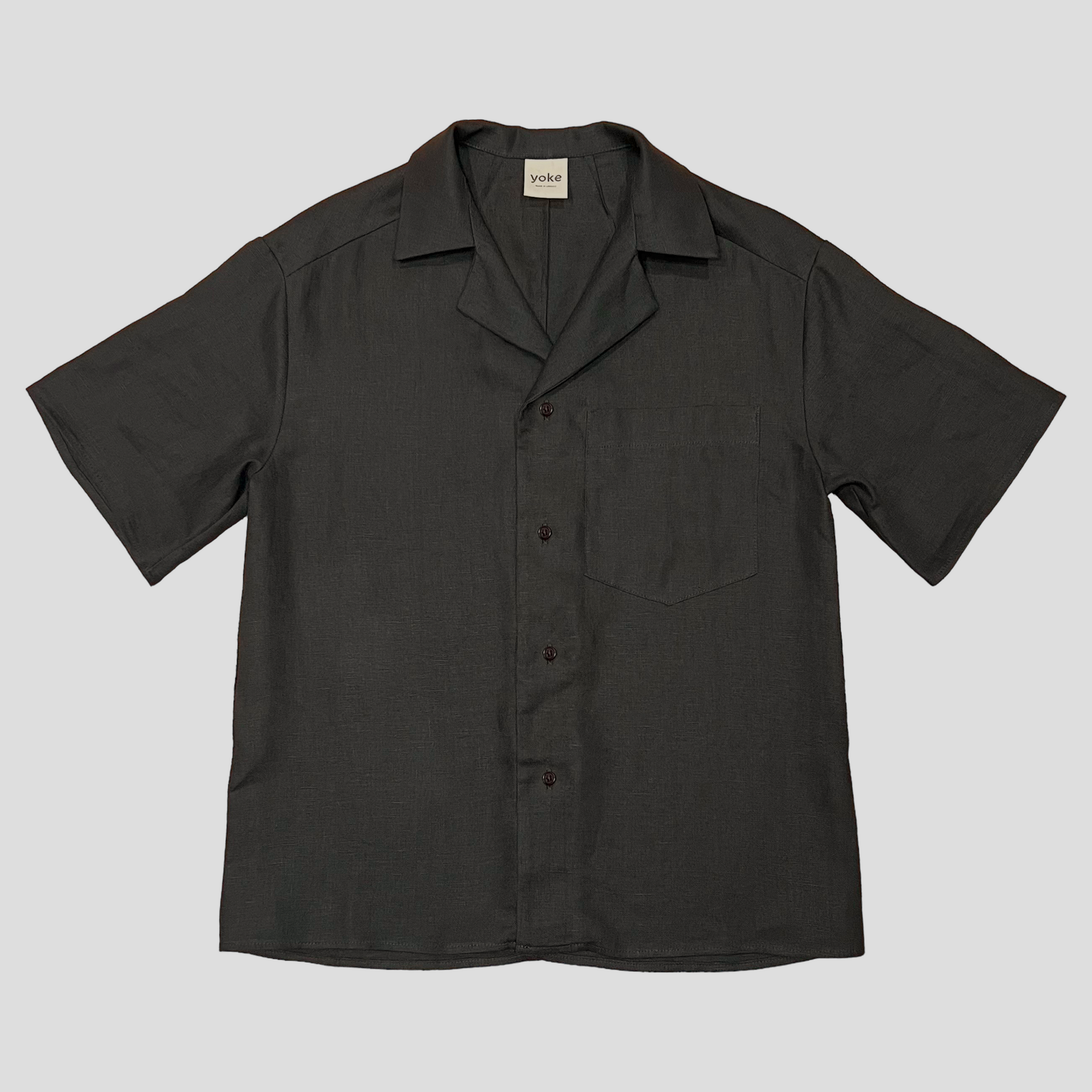 A wardrobe staple for everyone, this bitterly brown pure linen shirt has a Cuban-style collar and a single chest pocket. It is designed to be timeless and genderless, please see size guide for further info and here for measurements. Maudie is seen wearing a size medium shirt and 30-32 waist trousers.
