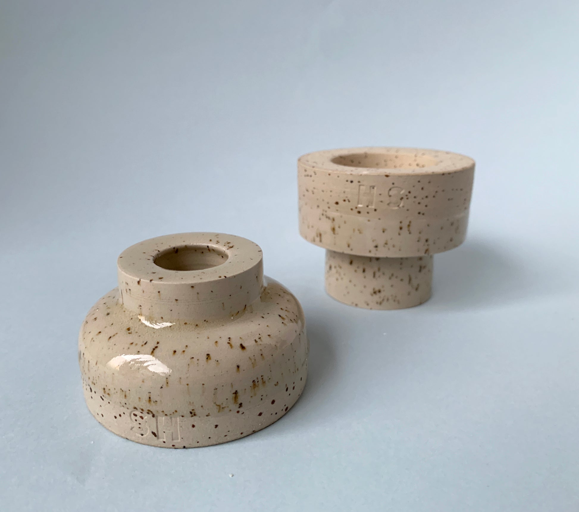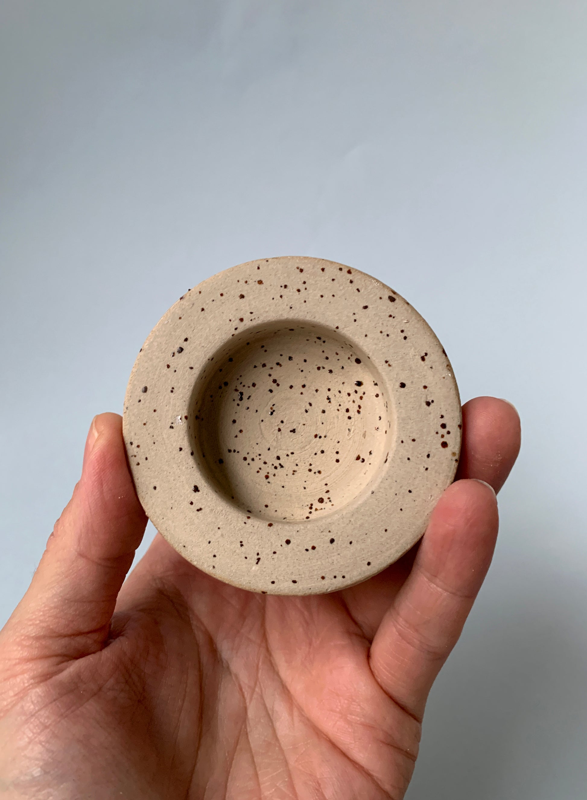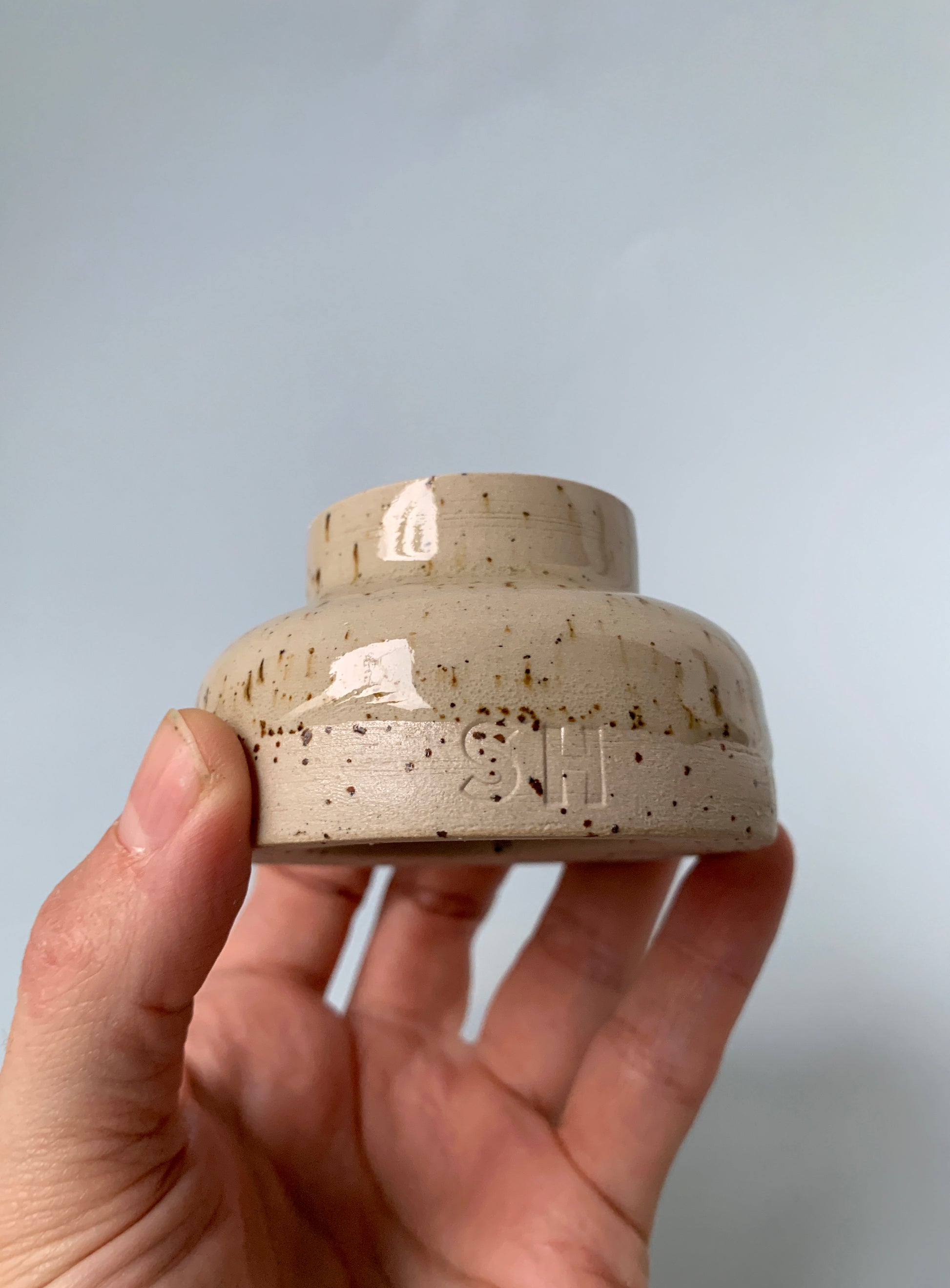 Color: Light clay with lava flecks, glazed with a glossy, transparent glaze.