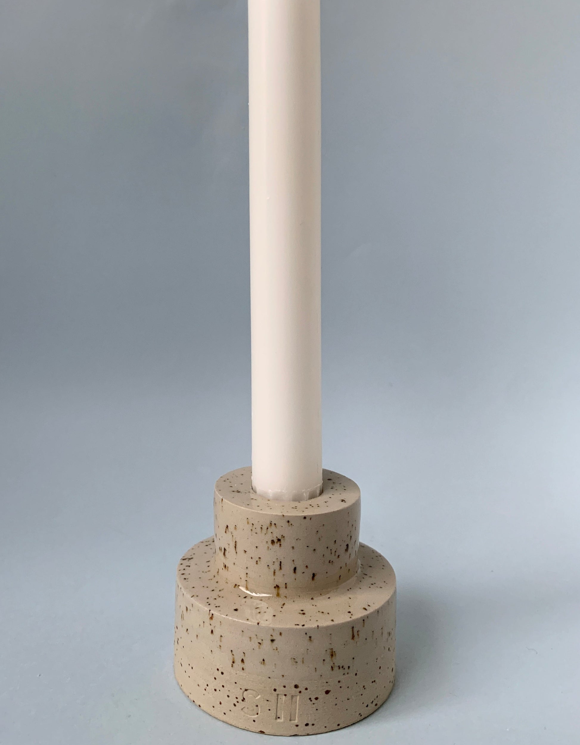 Reversible candlestick, one side for candles type crown candles and the other side for tealights.