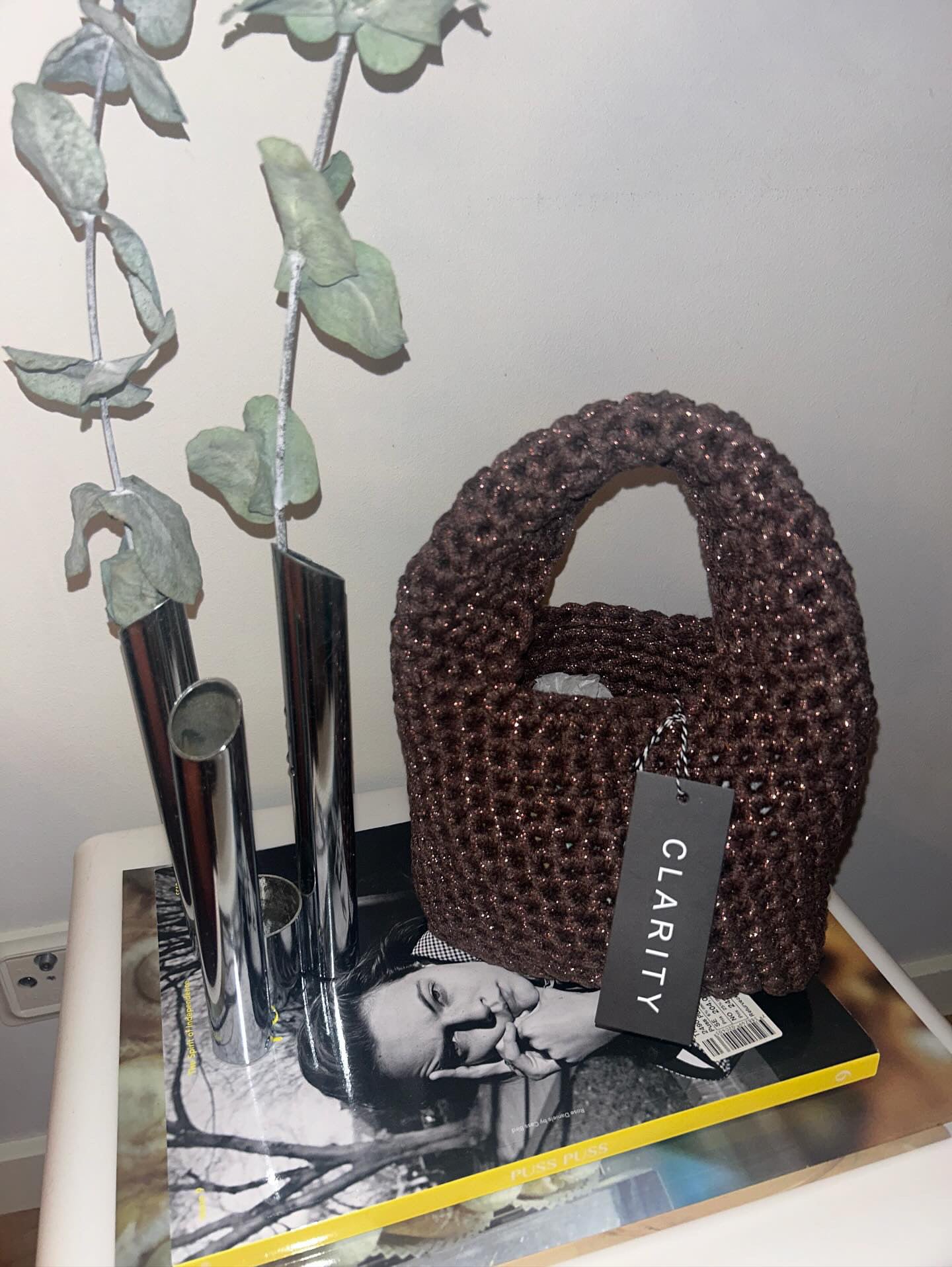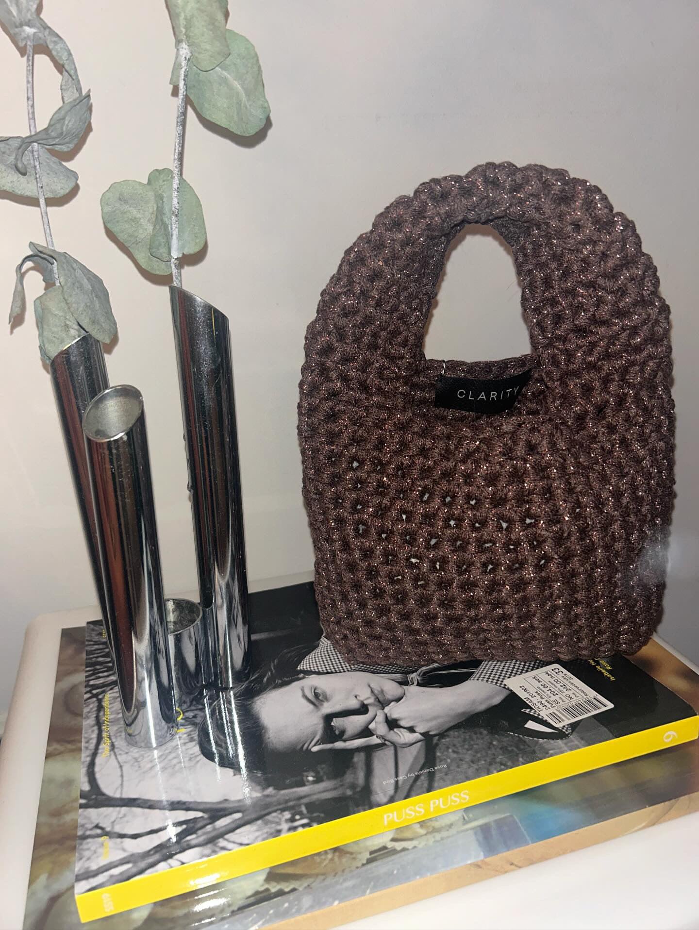A unique, brown crochet bag that's perfect for carrying your everyday essentials - handmade by the designer The clarity way of life. Wear it on your shoulder or carry it in your hand, and make your outfits more personal and stylish at the same time!