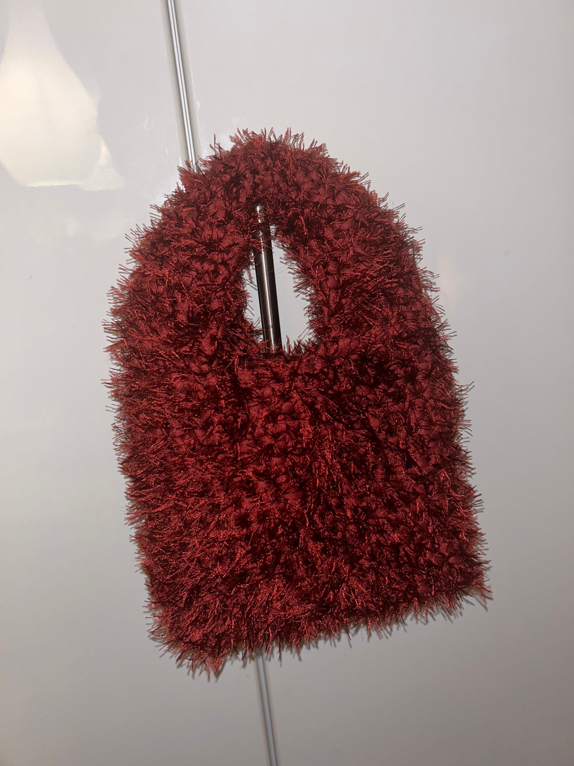 A unique, red and fluffy crochet bag that's perfect for carrying your everyday essentials - handmade by the designer The clarity way of life. Wear it on your shoulder or carry it in your hand, and make your outfits more personal and stylish at the same time!