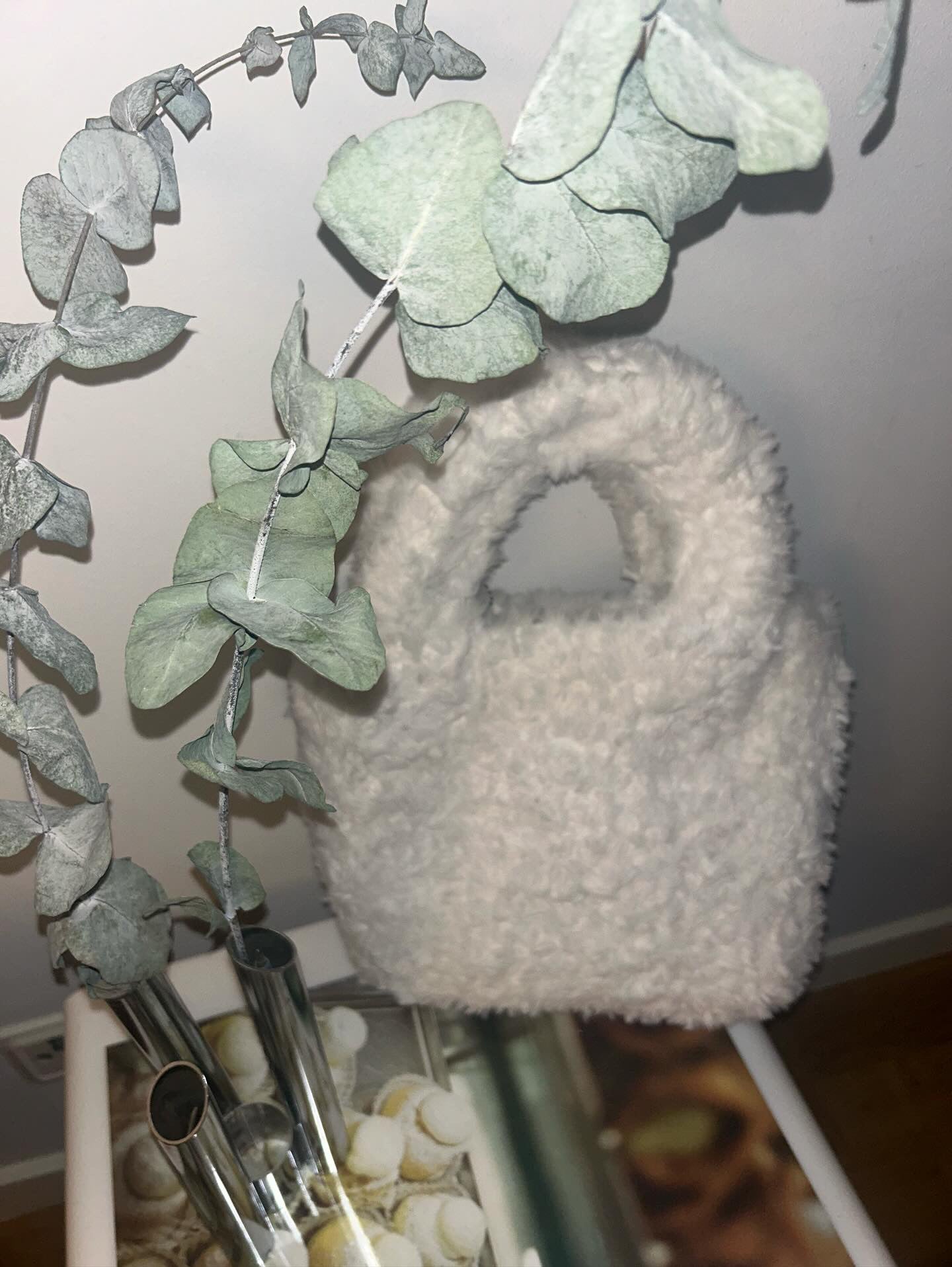 A unique, white and fluffy crochet bag that's perfect for carrying your everyday essentials - handmade by the designer The clarity way of life. Wear it on your shoulder or carry it in your hand, and make your outfits more personal and stylish at the same time!
