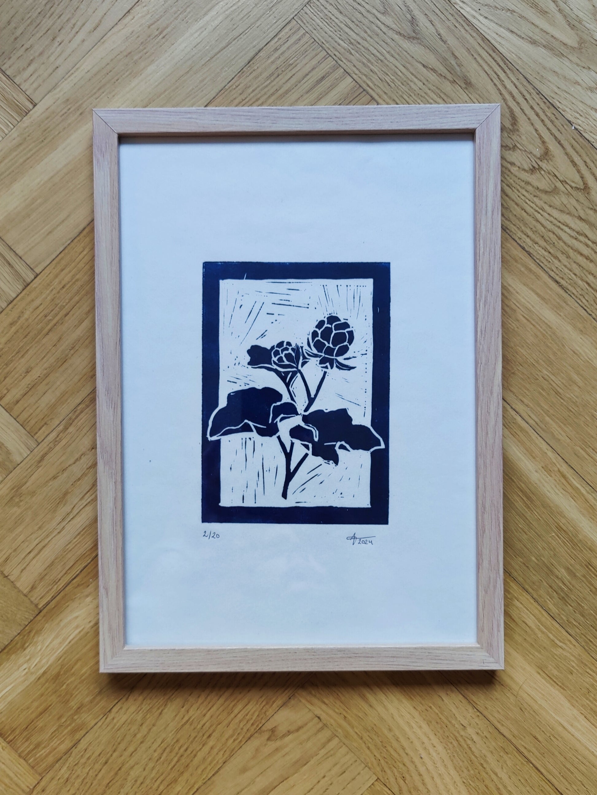 The prints are hand-printed and will therefore be unique, with slight variations from the reference images.