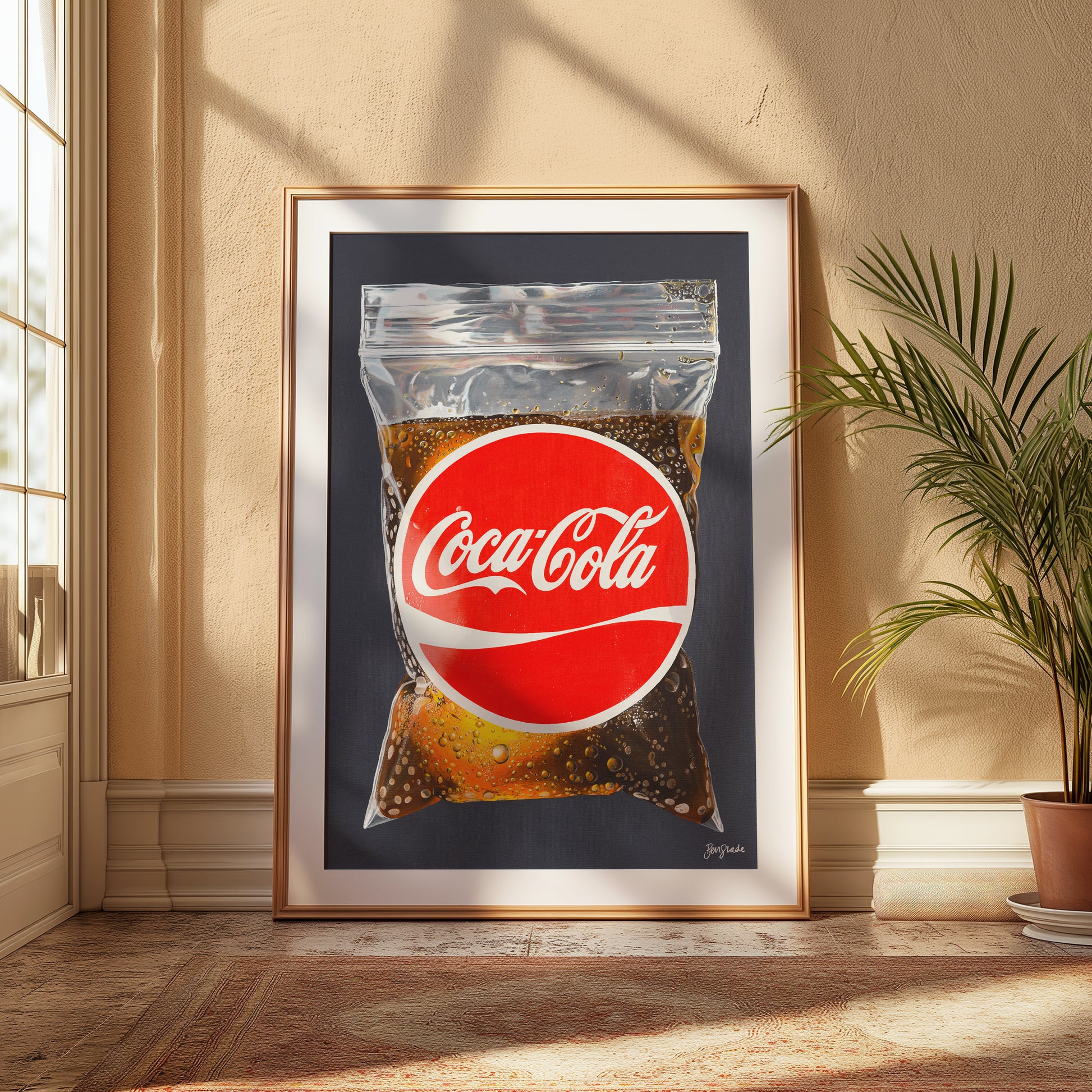 Printed reproduction of original acrylic painting ´Coke` by Ben Slade.