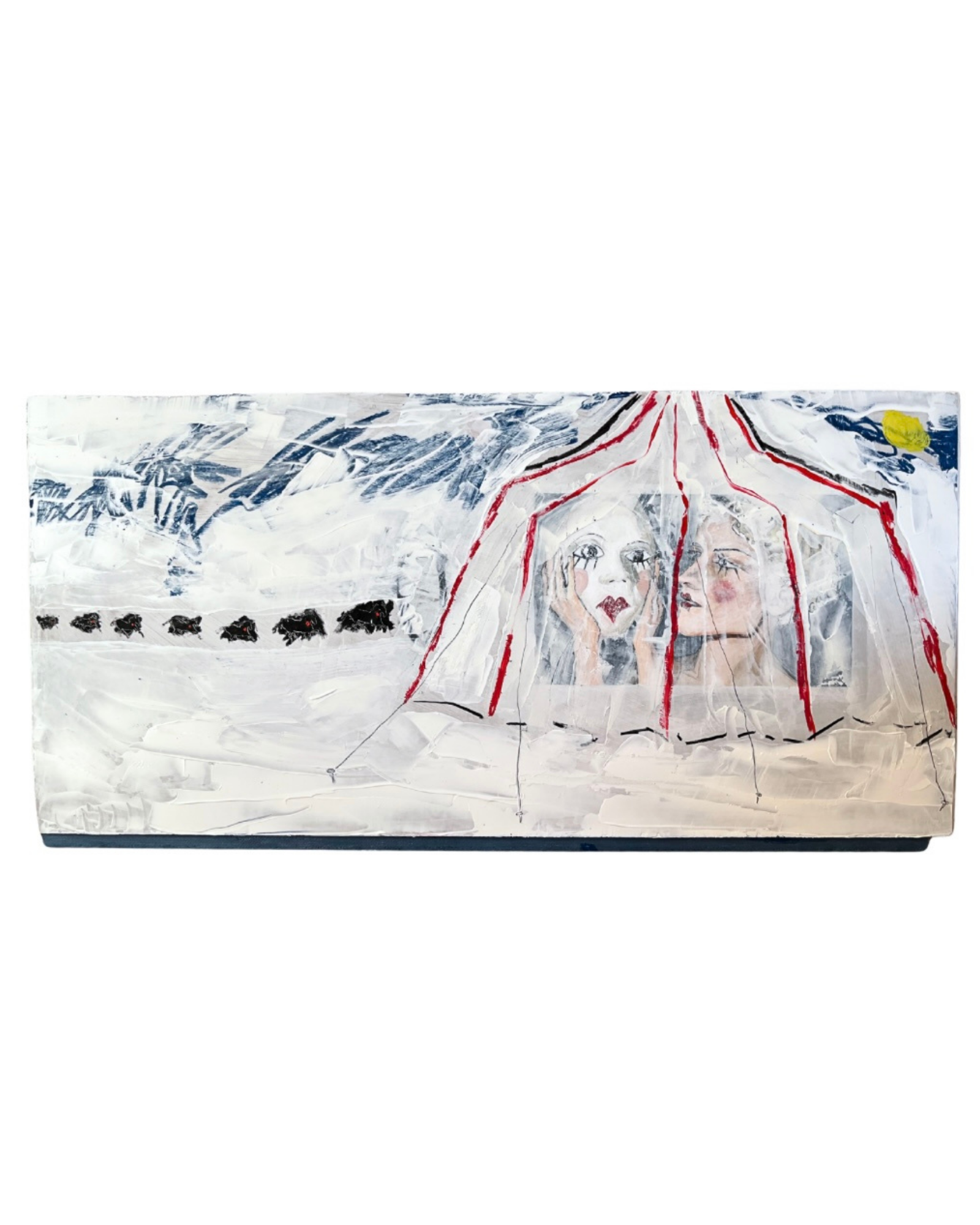 Acrylic and oil pastels on panel. Ca 40x80cm