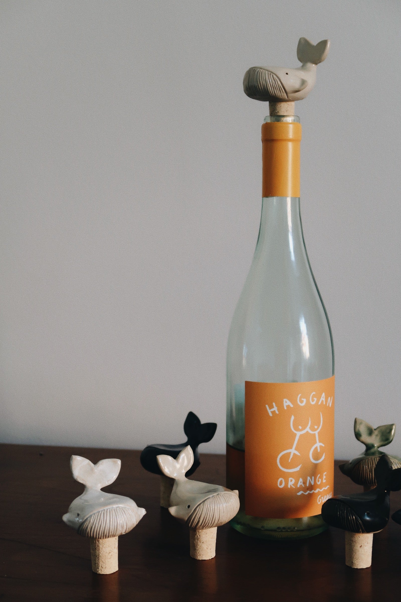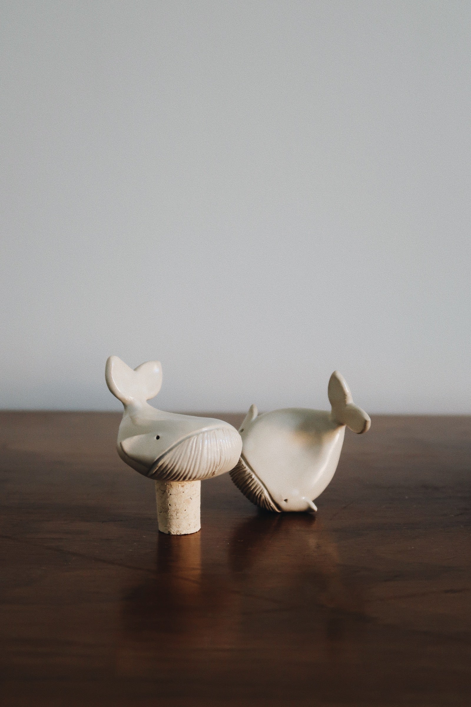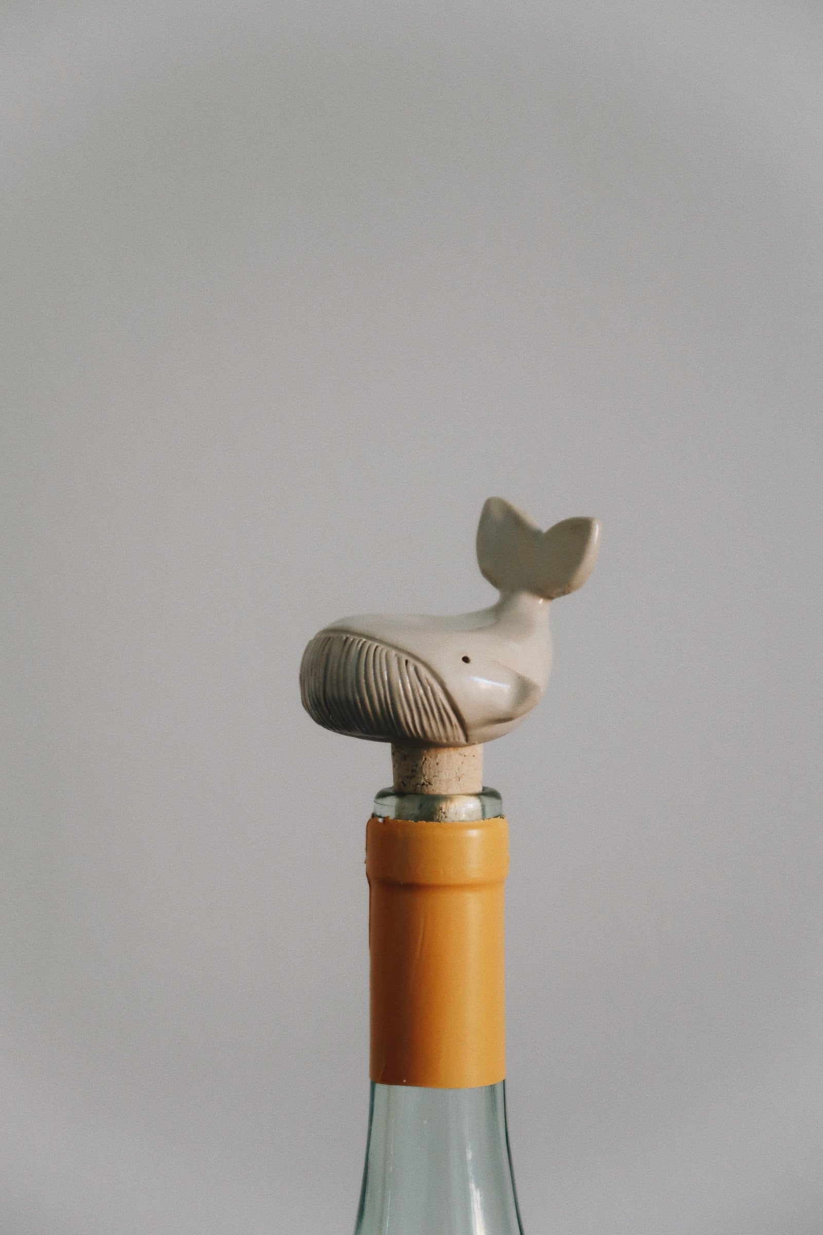 Small whales on cork to reseal or decorate a wine bottle.
