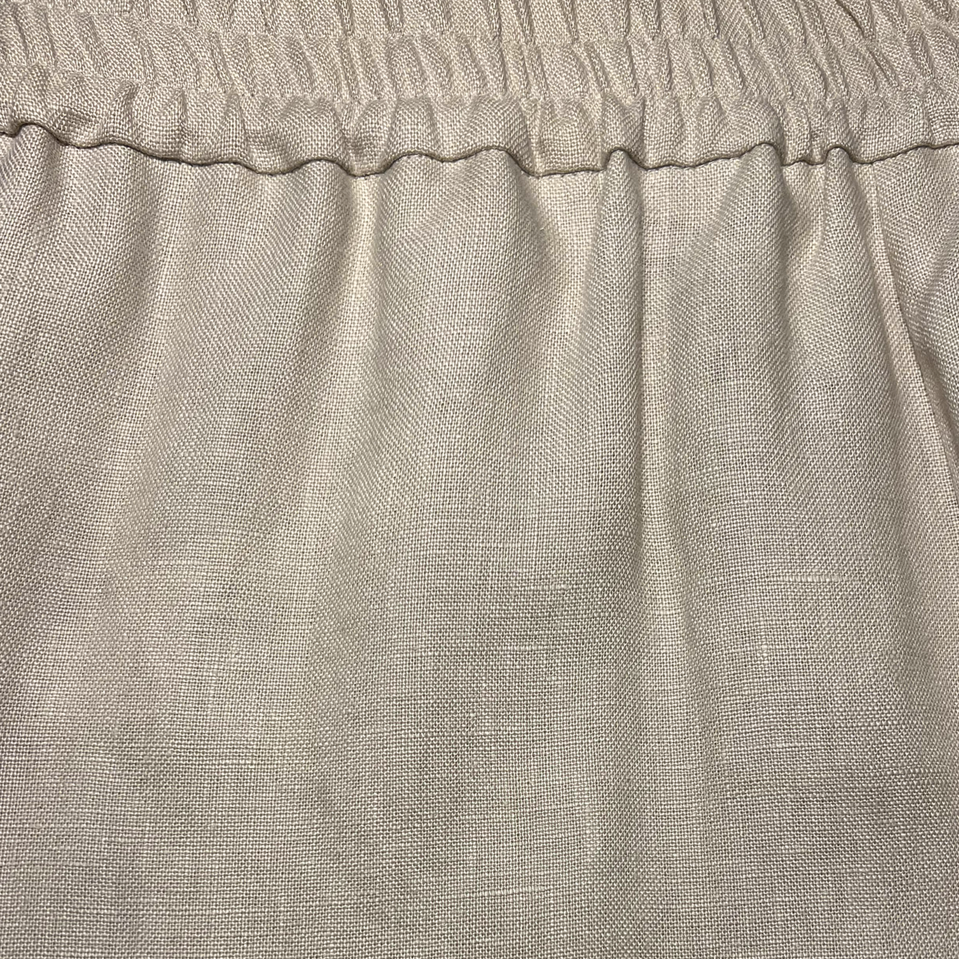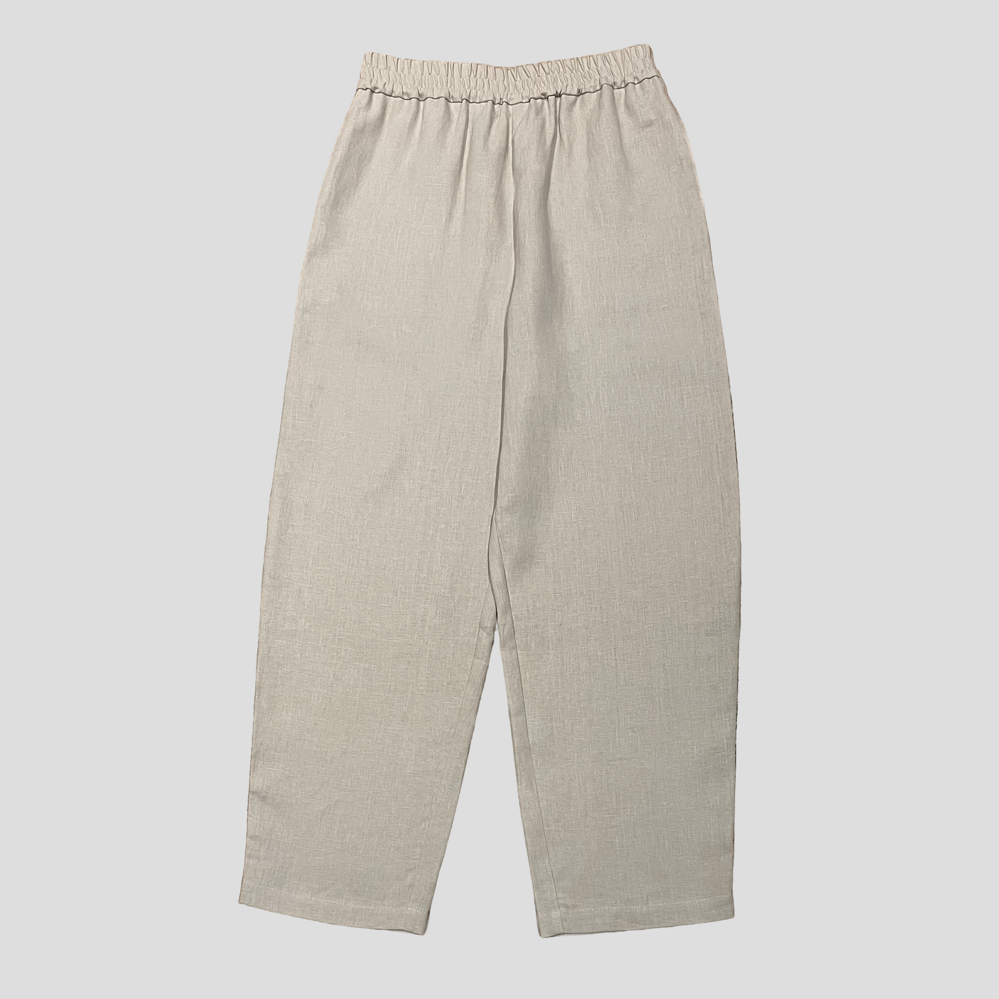 A summer staple, cream pure linen trousers in a classic baggy fit that taper at the hem, they have two side seam pockets and an ‘elasticated’ waist, making them both timeless and genderless. Please see here for further information on size measurements. Harpal is seen wearing a size medium shirt and 28-30 waist trousers.