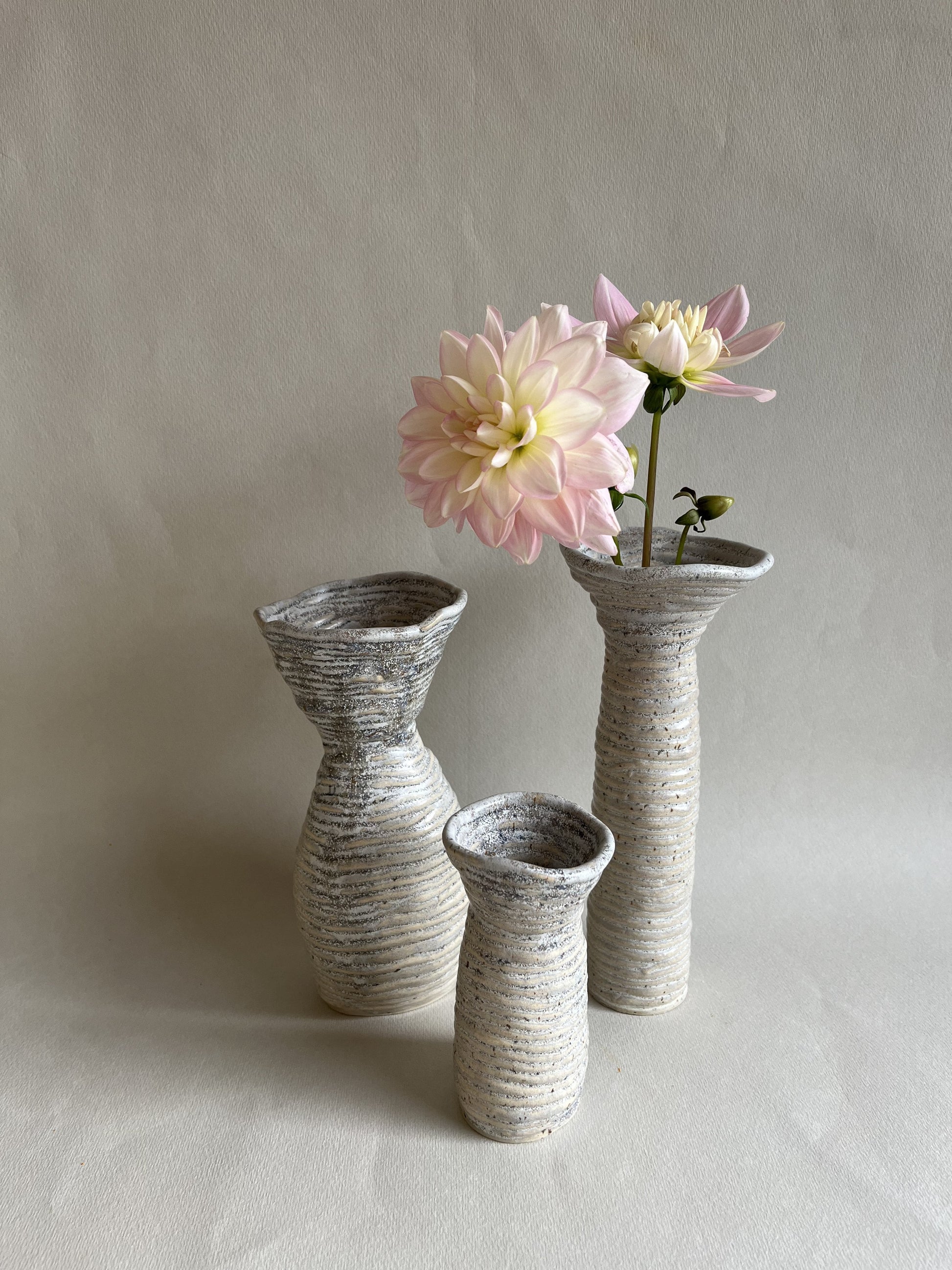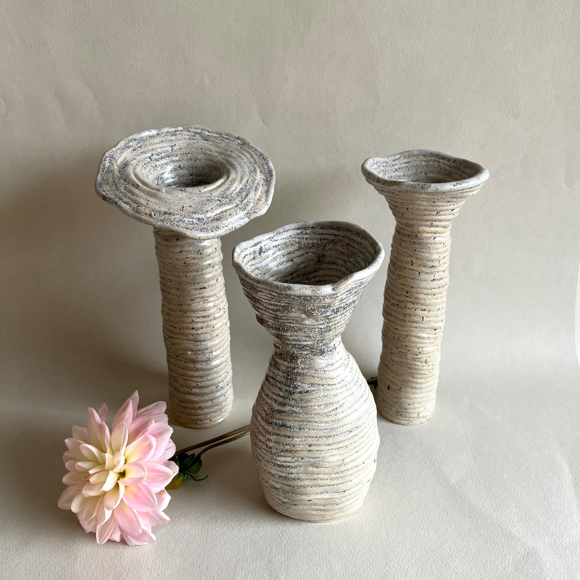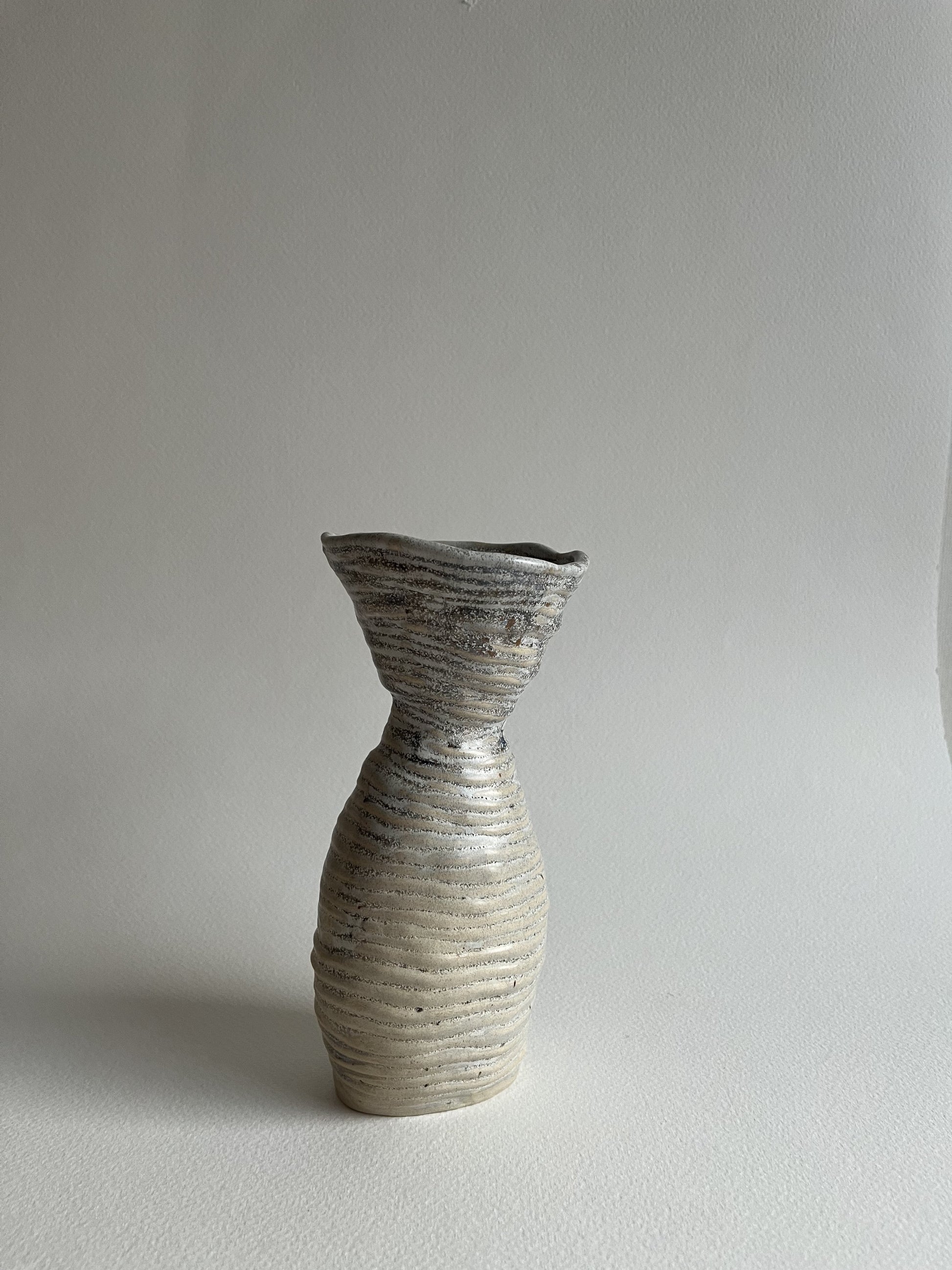 A handmade ceramic vase in a neutral color and unique shape, made by the talented Stilla Sinnet. This stylish, timeless piece is perfect for storing flowers and for elevating your home decor!
