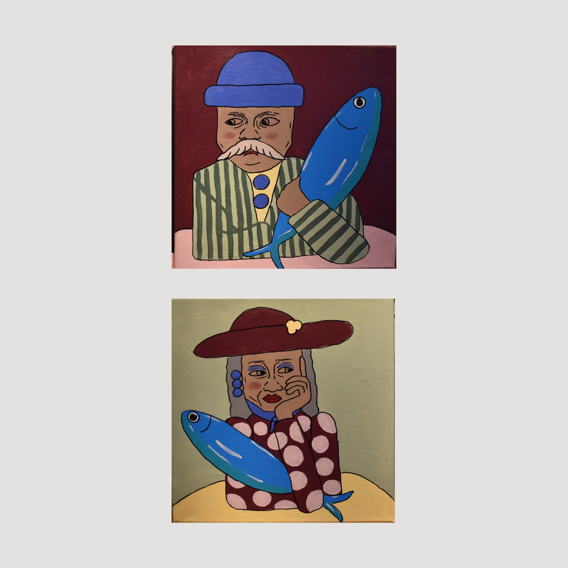 Two soulmates on two paintings, inspired by my beloved grandparents.