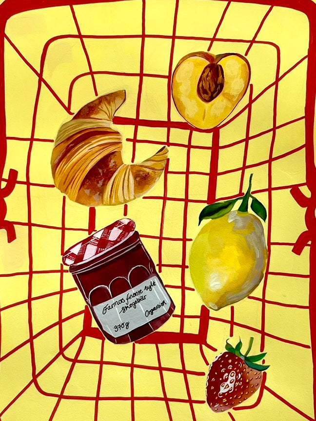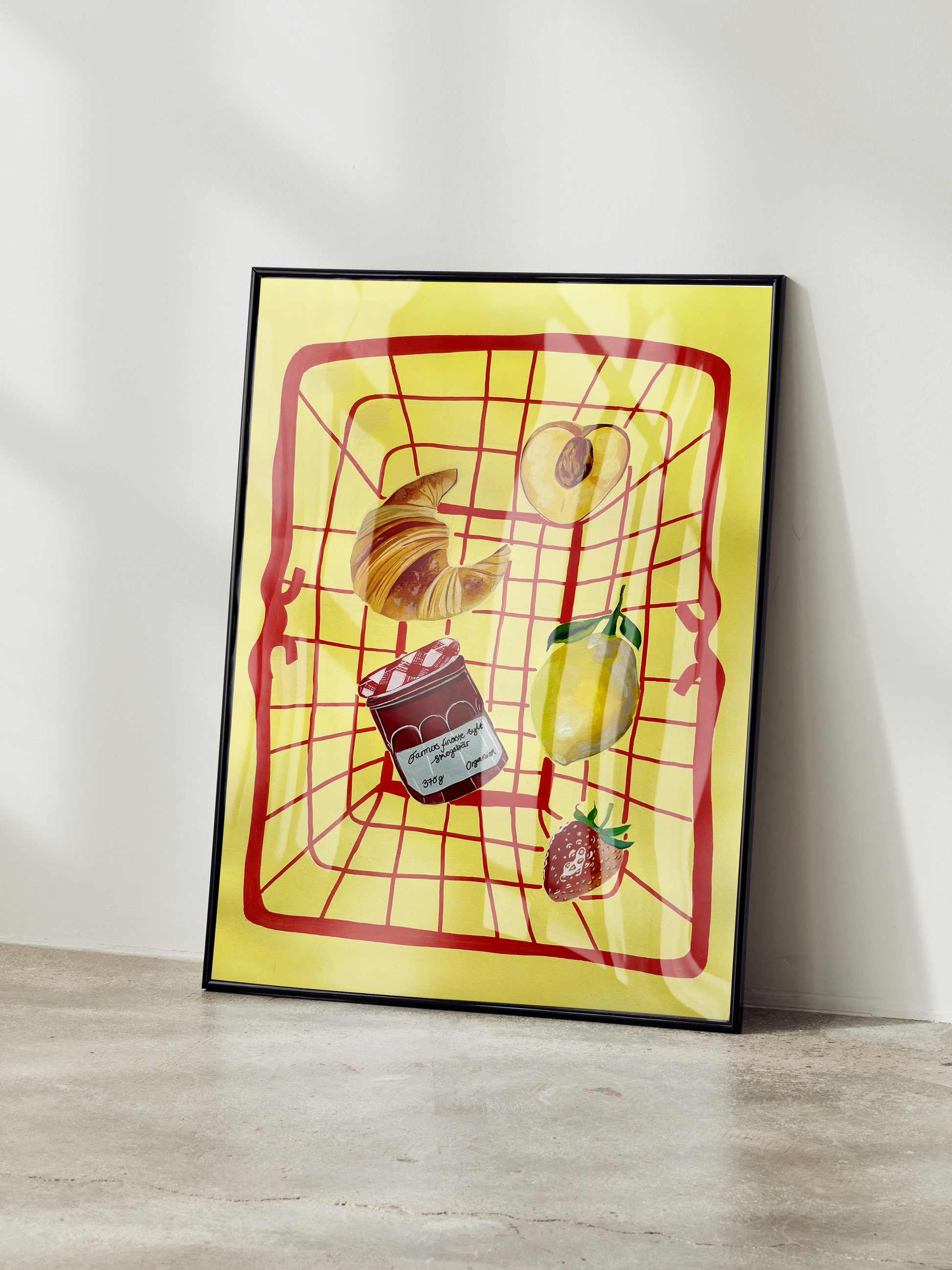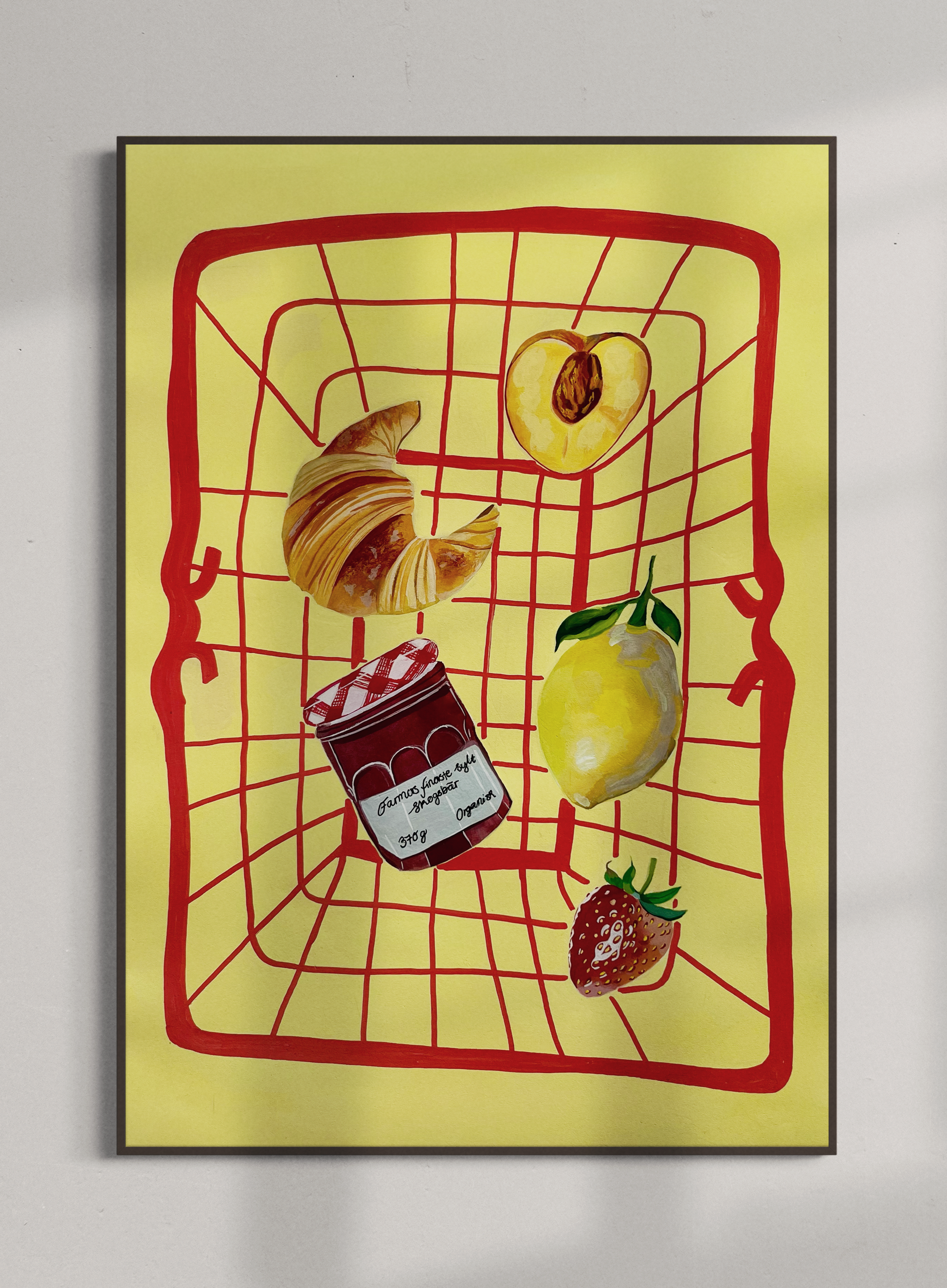 Picturing a basket of different fruits and foods, this colorful artwork by Julia Andersen makes your living space more joyful and unique! A poster that's perfect for the Scandinavian styled home.
