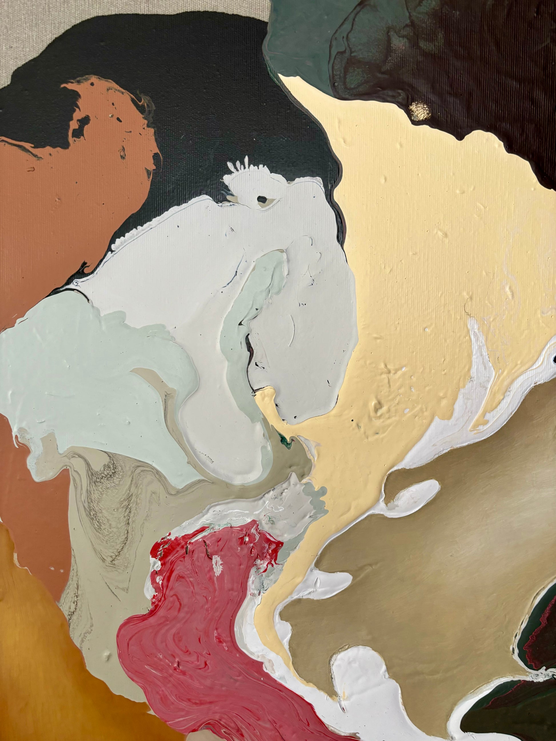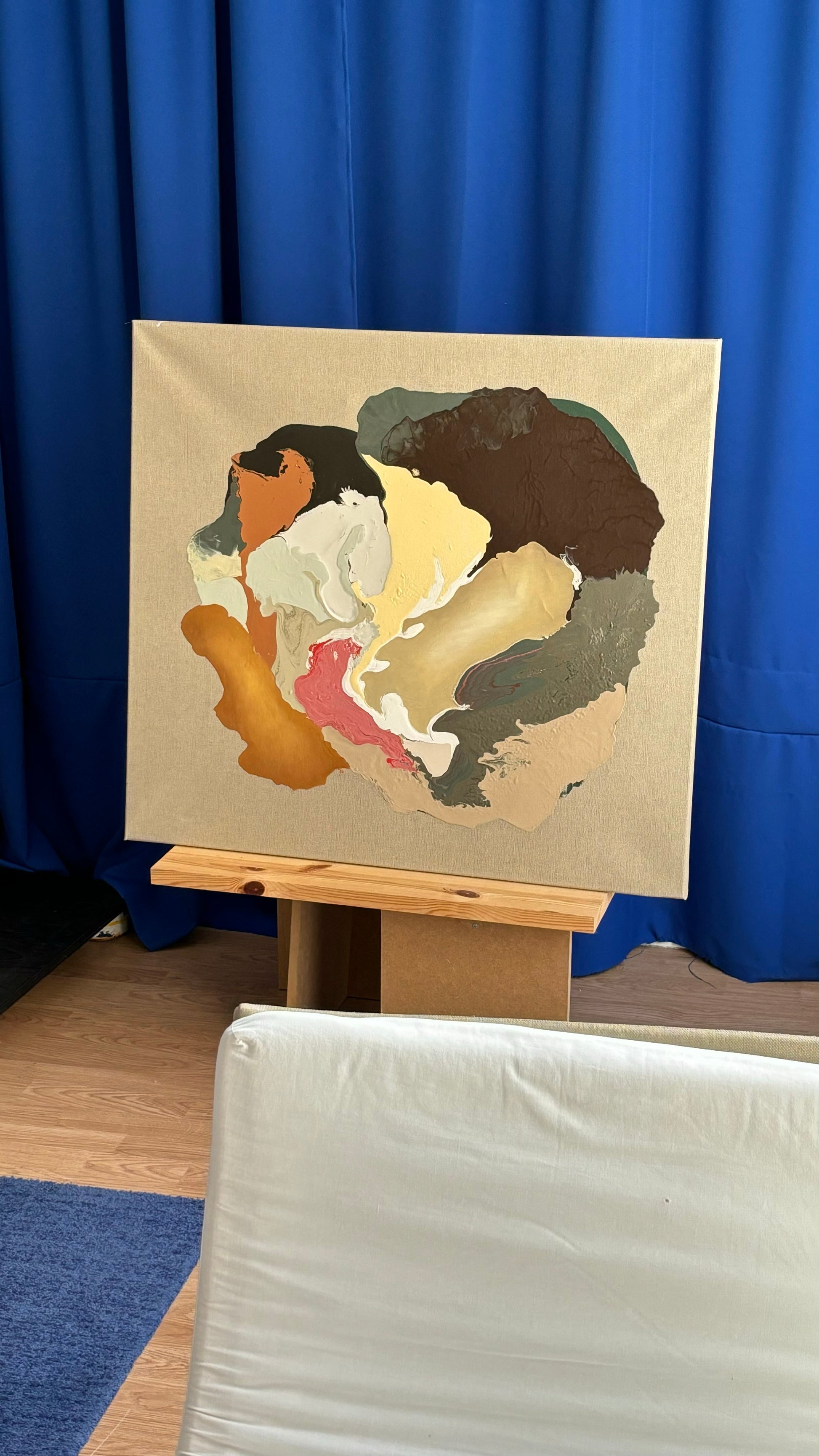 "Floating Colors" is a collection that reflects Elin’s deep exploration of color relationships, expressed through a series of organic, flowing forms in acrylic and oil on canvas. Drawing inspiration from the ever-changing movements of water and waves, the work is influenced by her environment—a floating atelier aboard a historic ship in the heart of Stockholm, where she also resides.