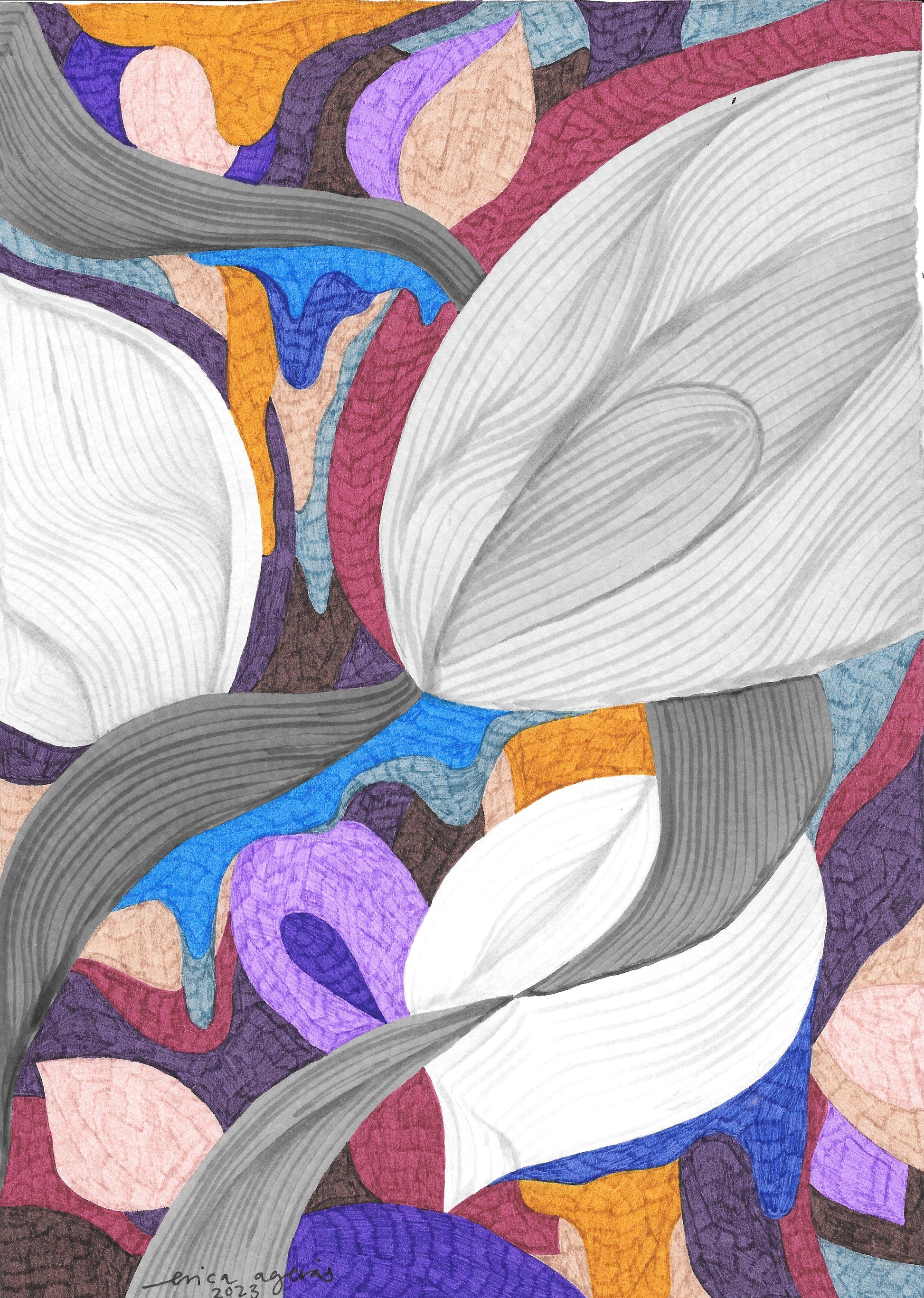 "Flowers connect" is a vibrant original abstract artwork created by Swedish artist Erica Agerås in 2023. This expressive piece features bold shapes and colorful floral elements that bring energy and harmony into your space. The abstract composition invites personal interpretation while adding a modern artistic touch to your interior.