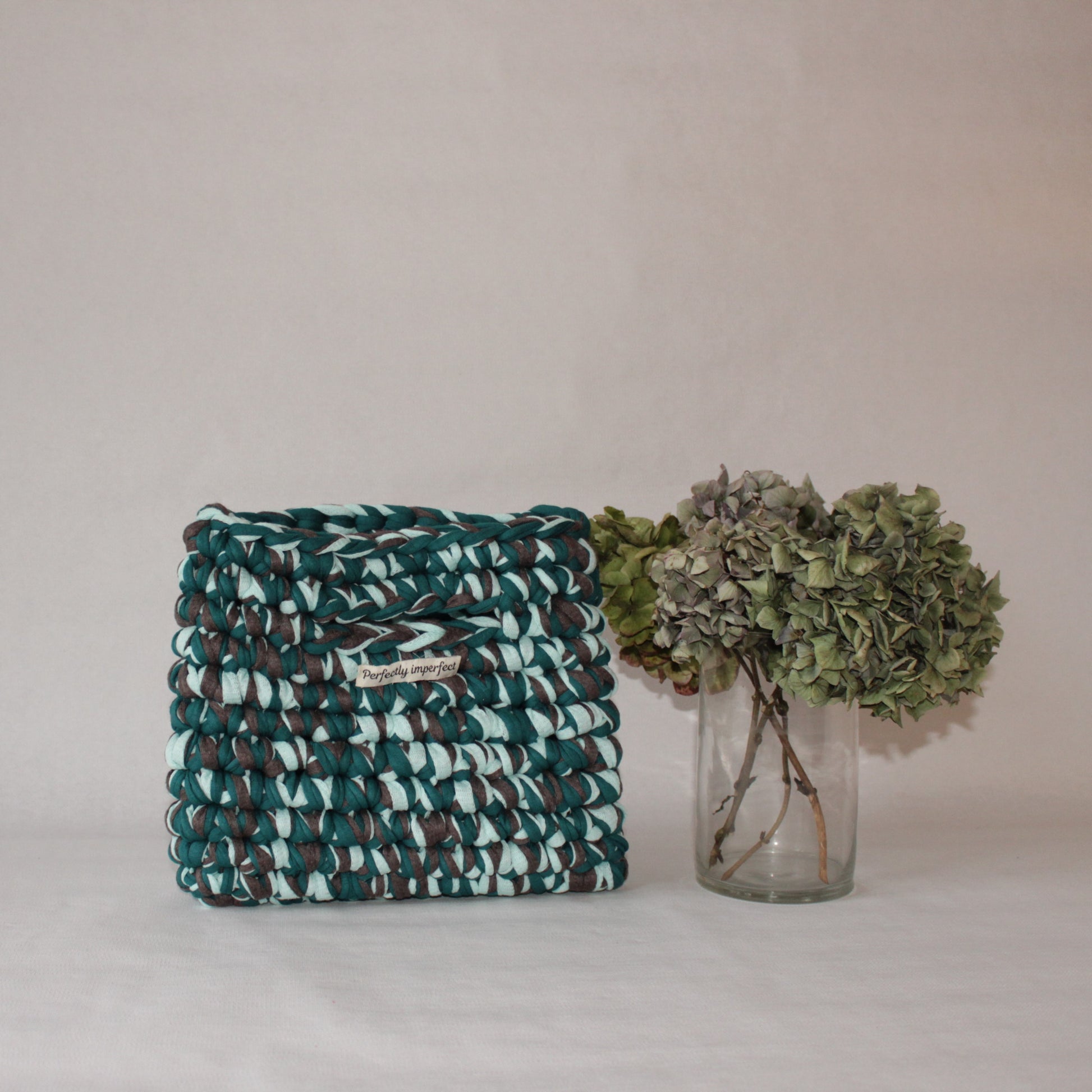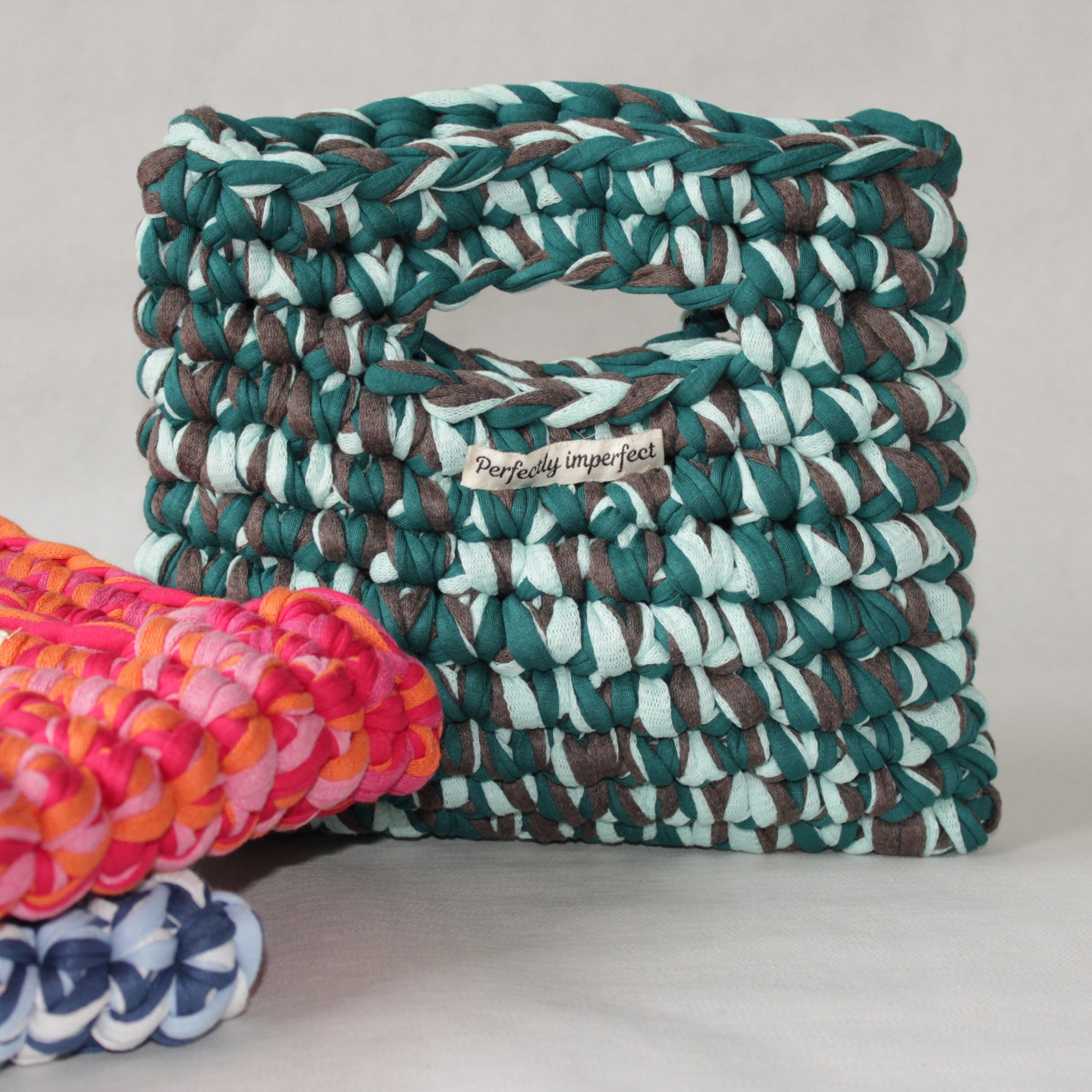 Our Astrid is a modern straight handbag. Easy to carry and holds the most important things. All the color combinations contain three different colors. Two yarns are recycled cotton yarn and one knitted yarn.