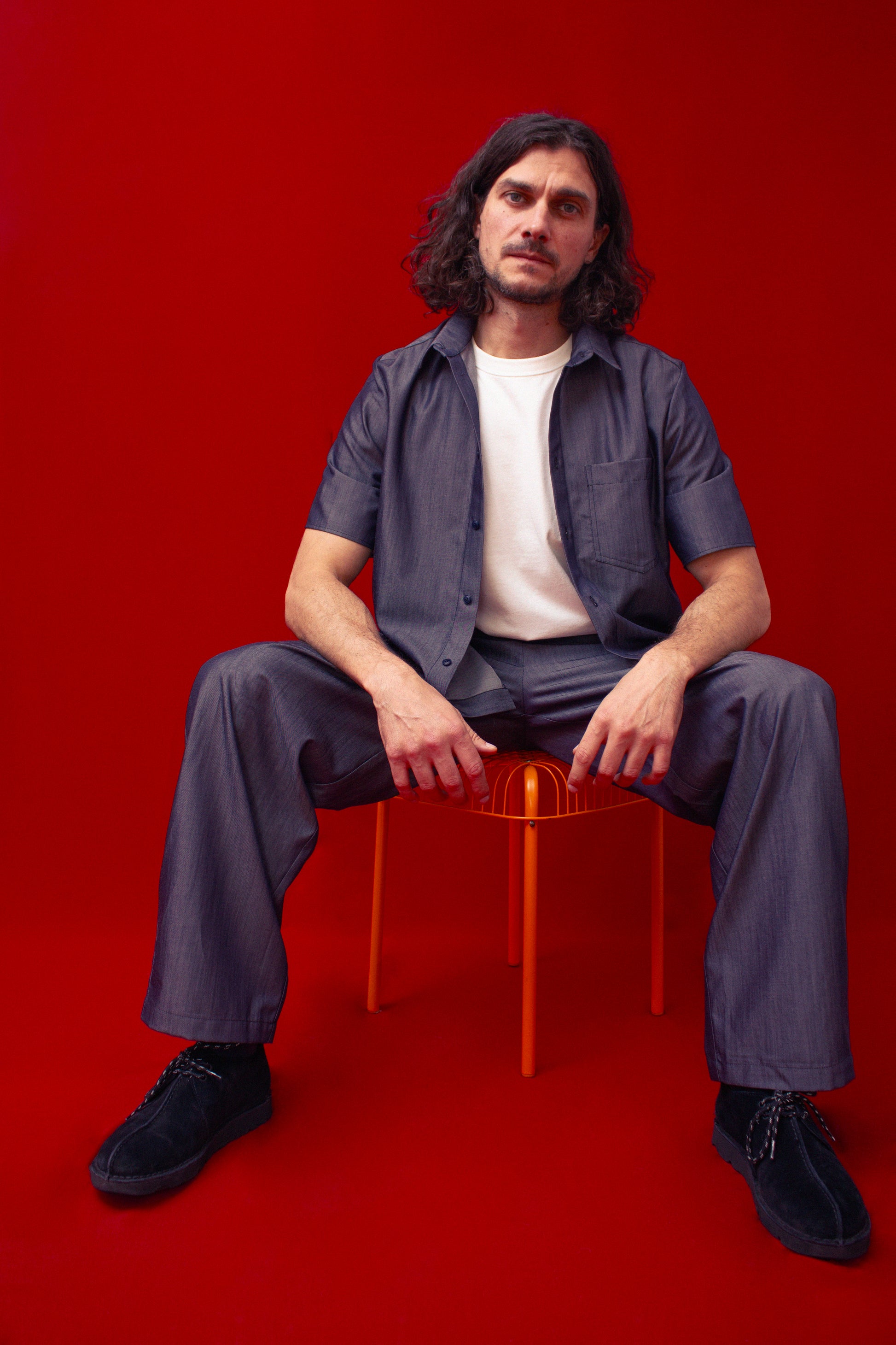 This shirt is cut from a tonic suiting fabric, which mixes indigo with silver to create a two tone appearance. A wardrobe staple for everyone this skate shirt has a button up collar and a single chest pocket. It is designed to be timeless and genderless, please see size guide for further info and here or measurements. Shyla is seen wearing a size small and Florian a size large.