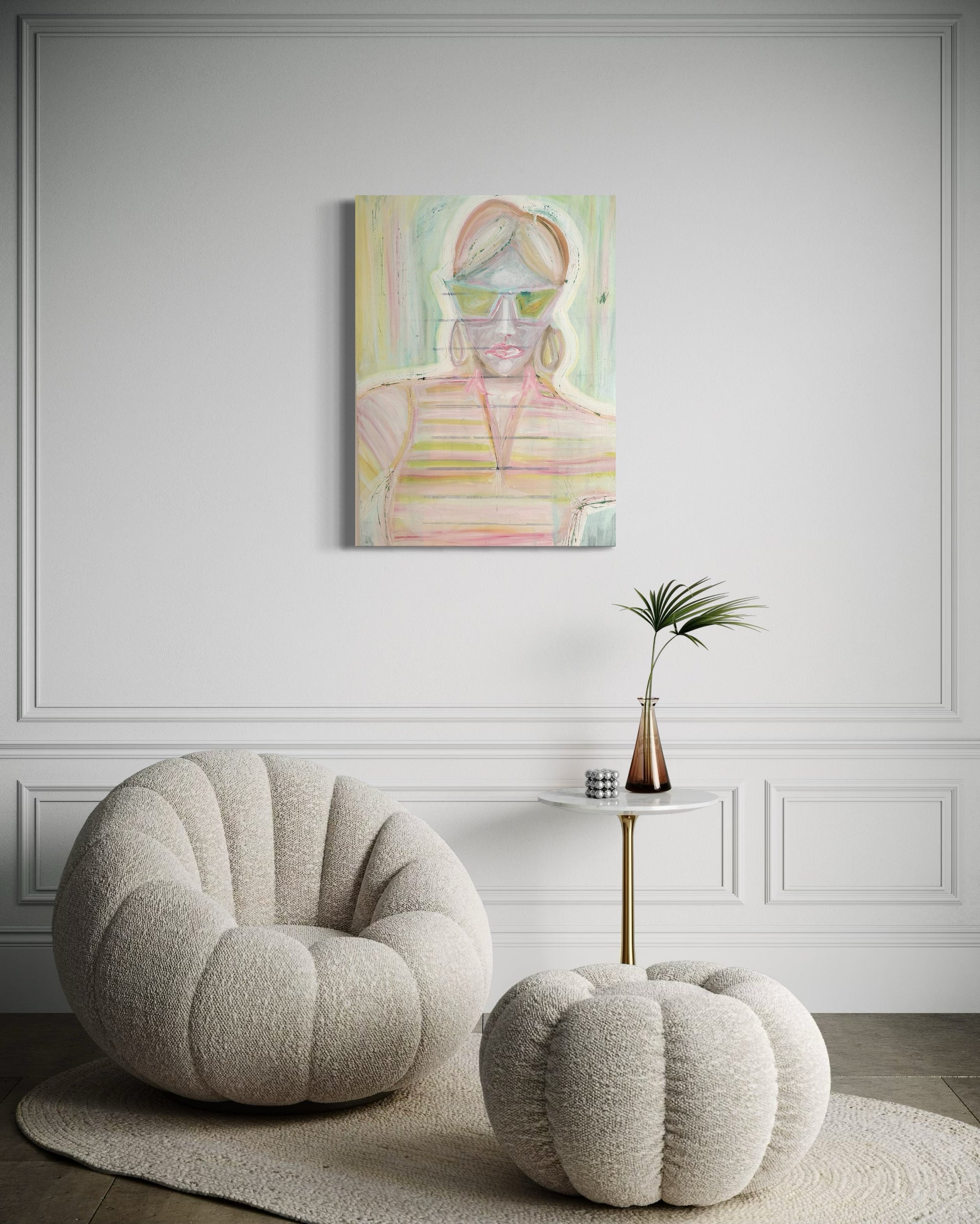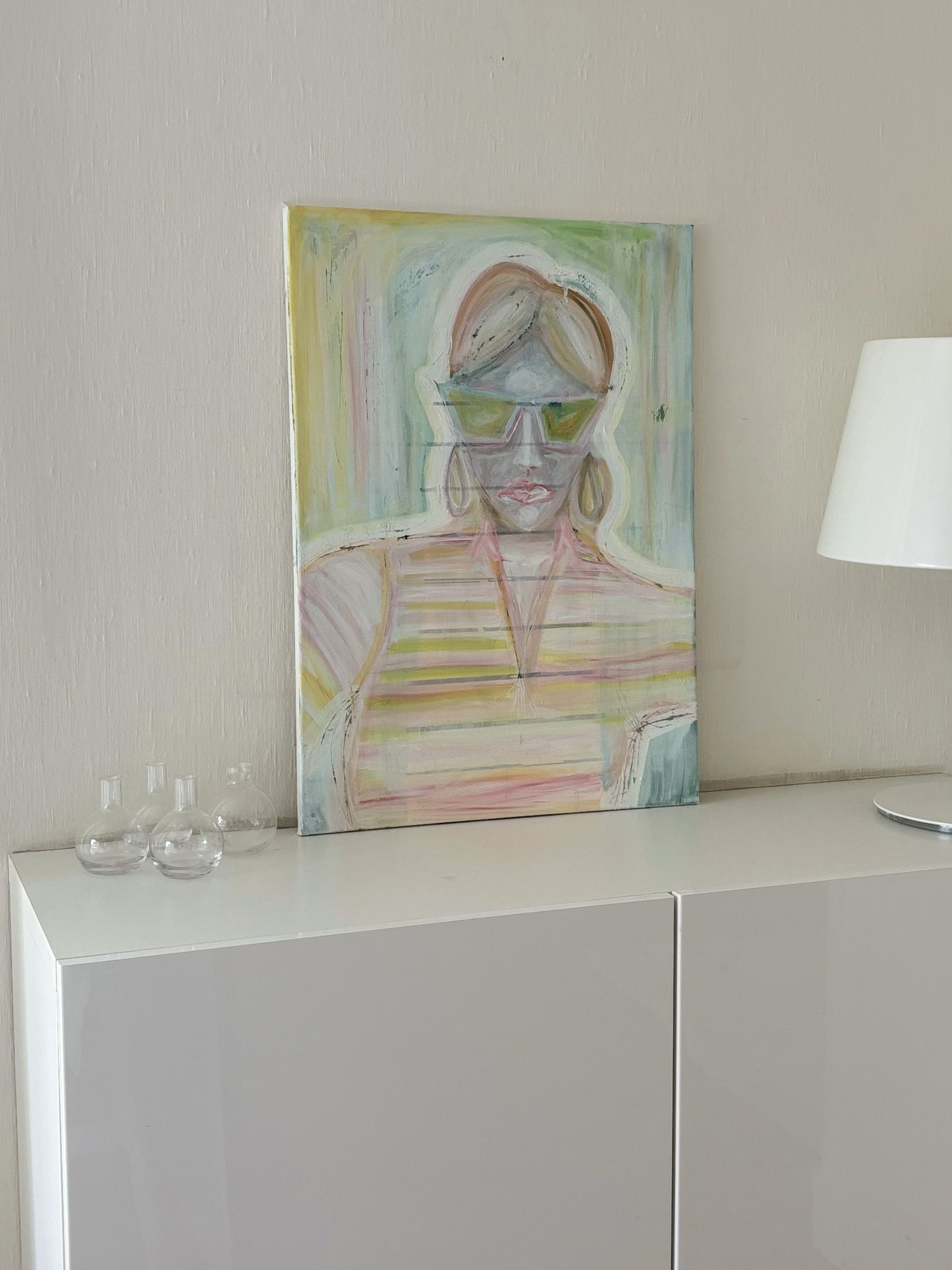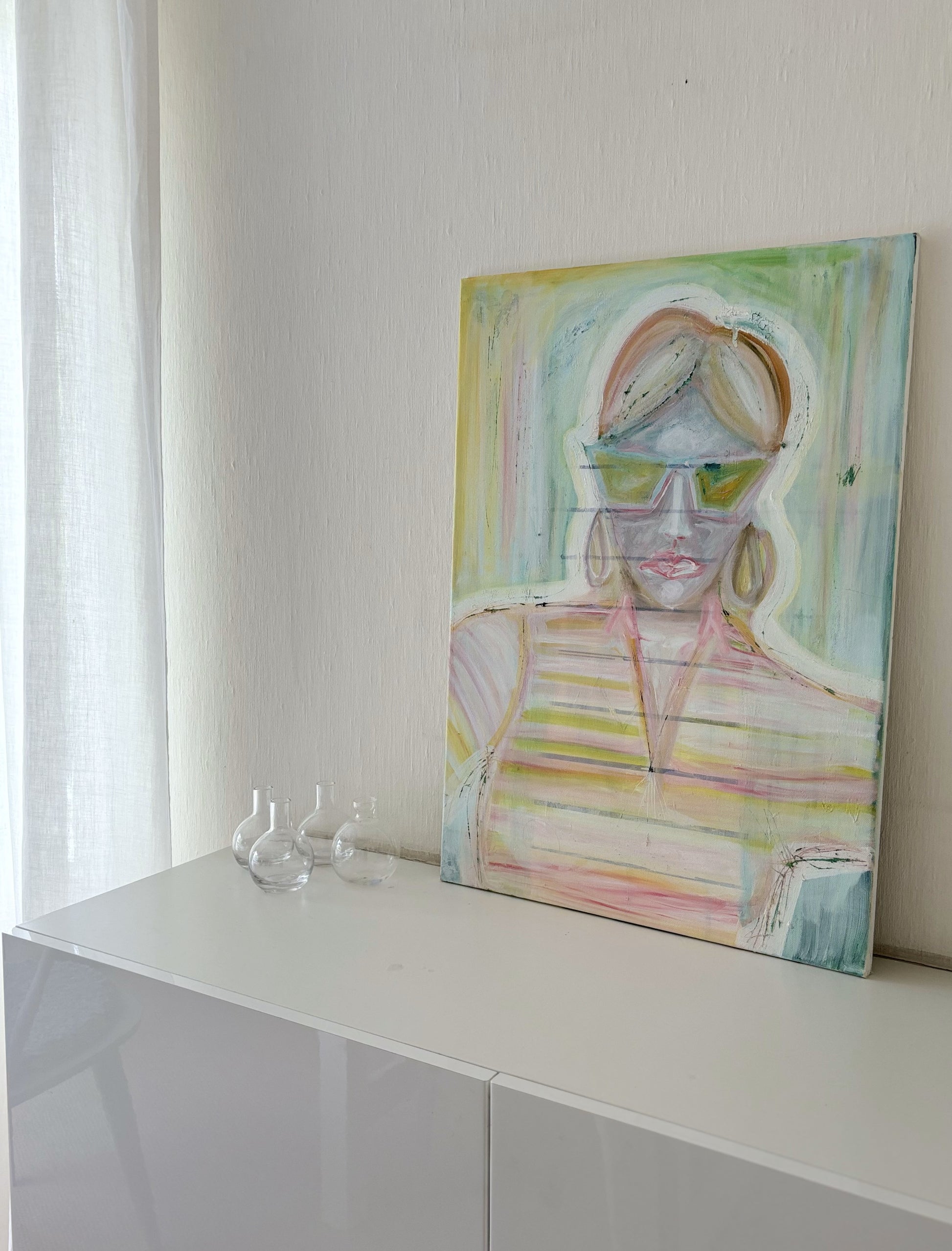 Discover the delicate elegance of “Klar”, an original painting by Emma Lisnell. This expressive artwork features soft pastel hues and flowing brushstrokes that create a serene, ethereal quality. With its minimalist aesthetic and subtle blend of colors, this piece exudes a quiet sophistication that complements contemporary, modern, and minimalist interiors.