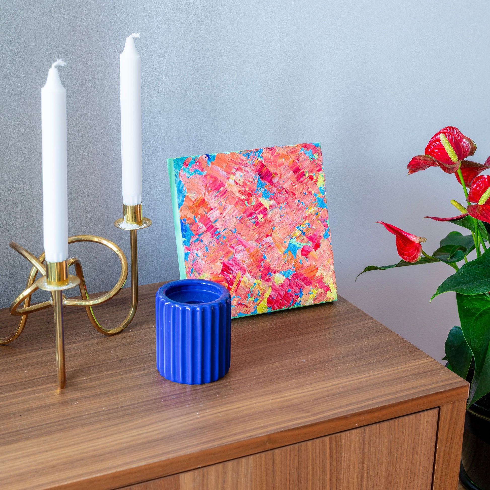With the color palette inspired by classic Swedish candy, Lördagsgodis by Klara Collin is a fun, vibrant piece for the candy lover. Brighten up your space with this sweet reminder of the playful joys of childhood.