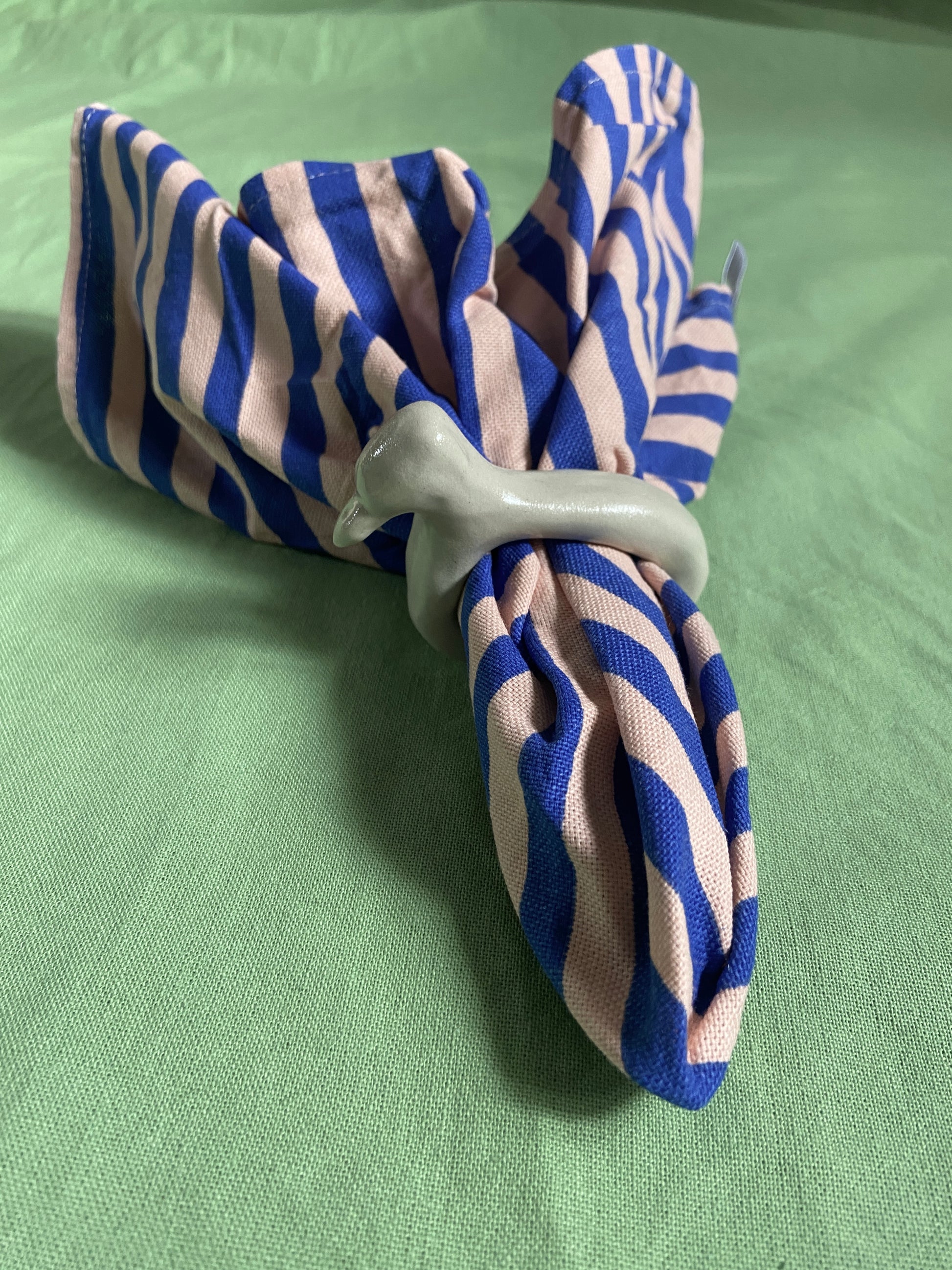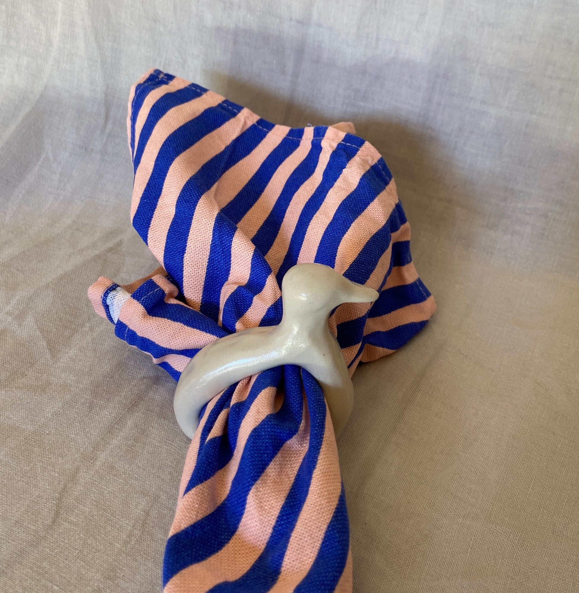 This is a fun, handmade napkin holder in the shape of a duck by the ceramicist Tahkamik. Its unique shape will truly make it stand out in your kitchen.