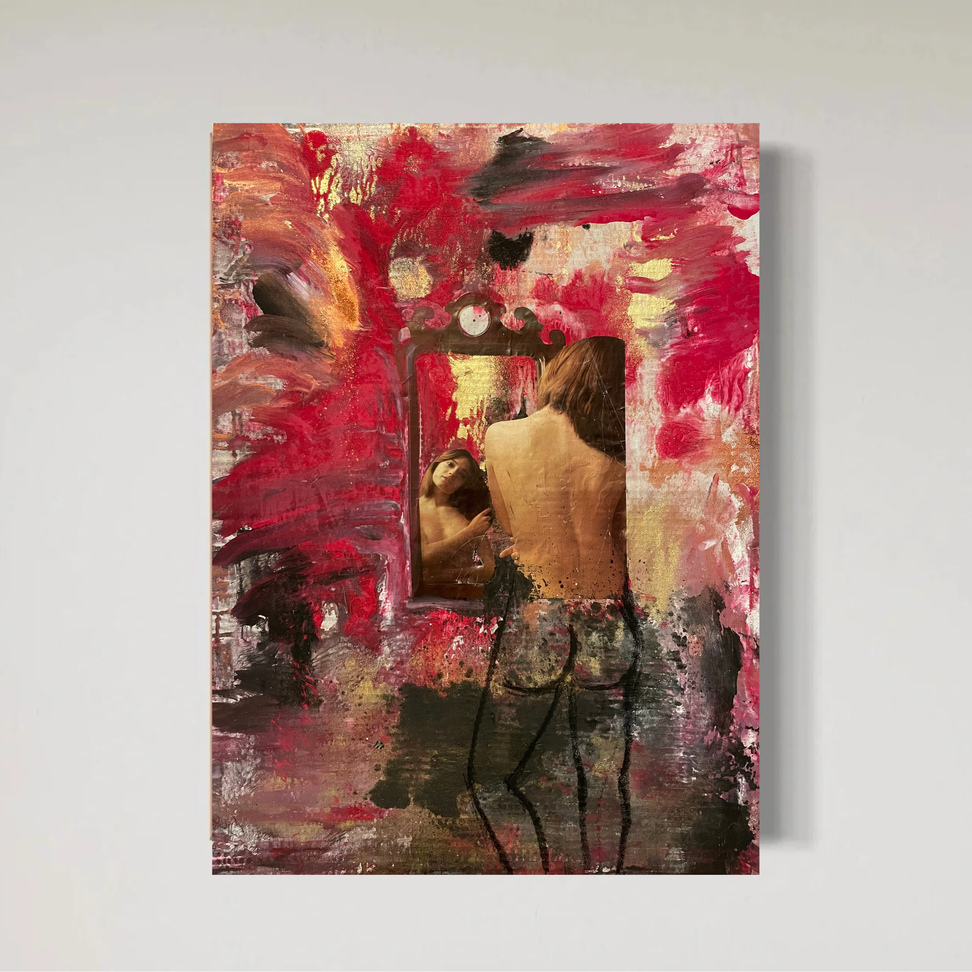 Acrylics and collage on cardboard