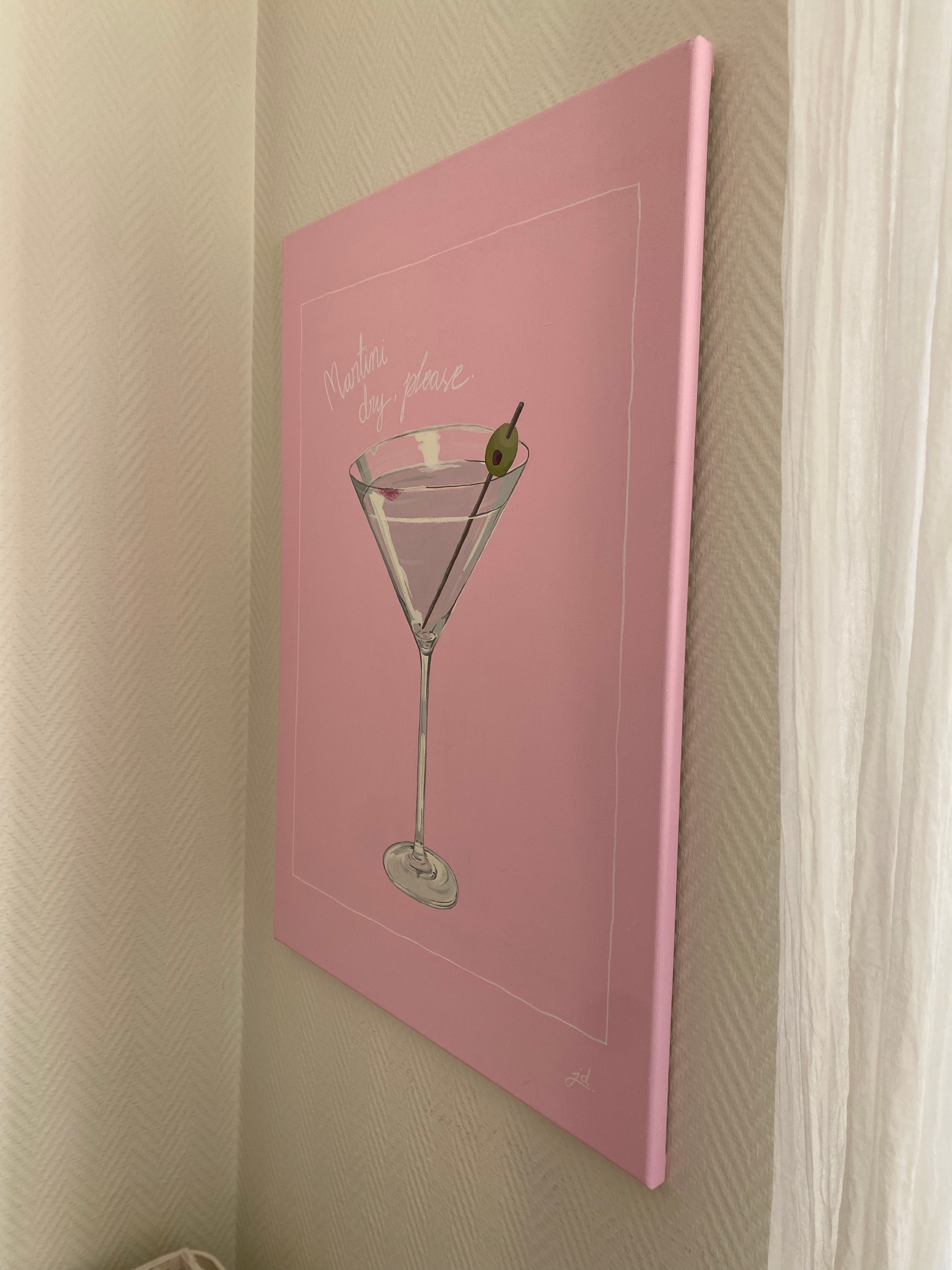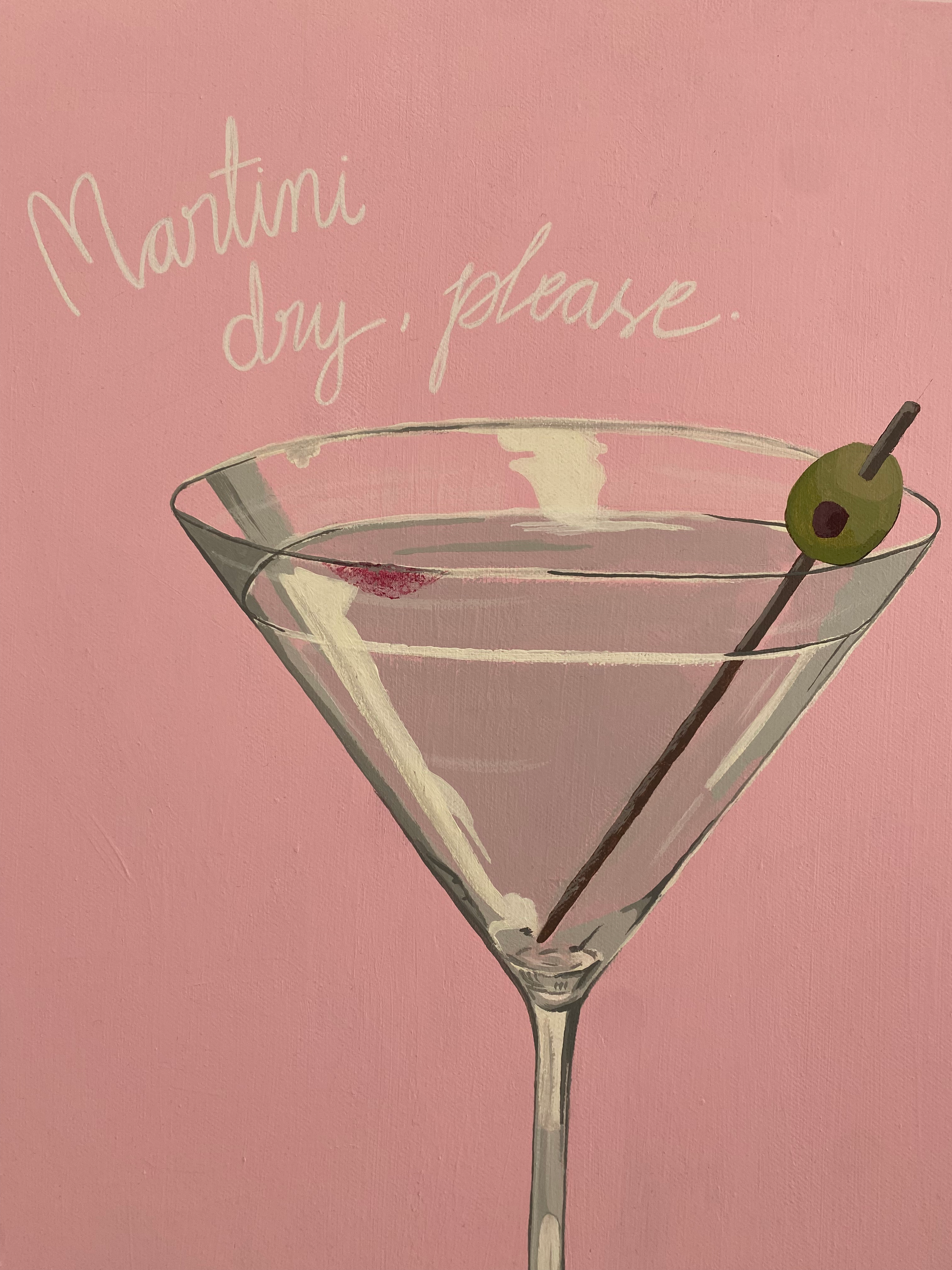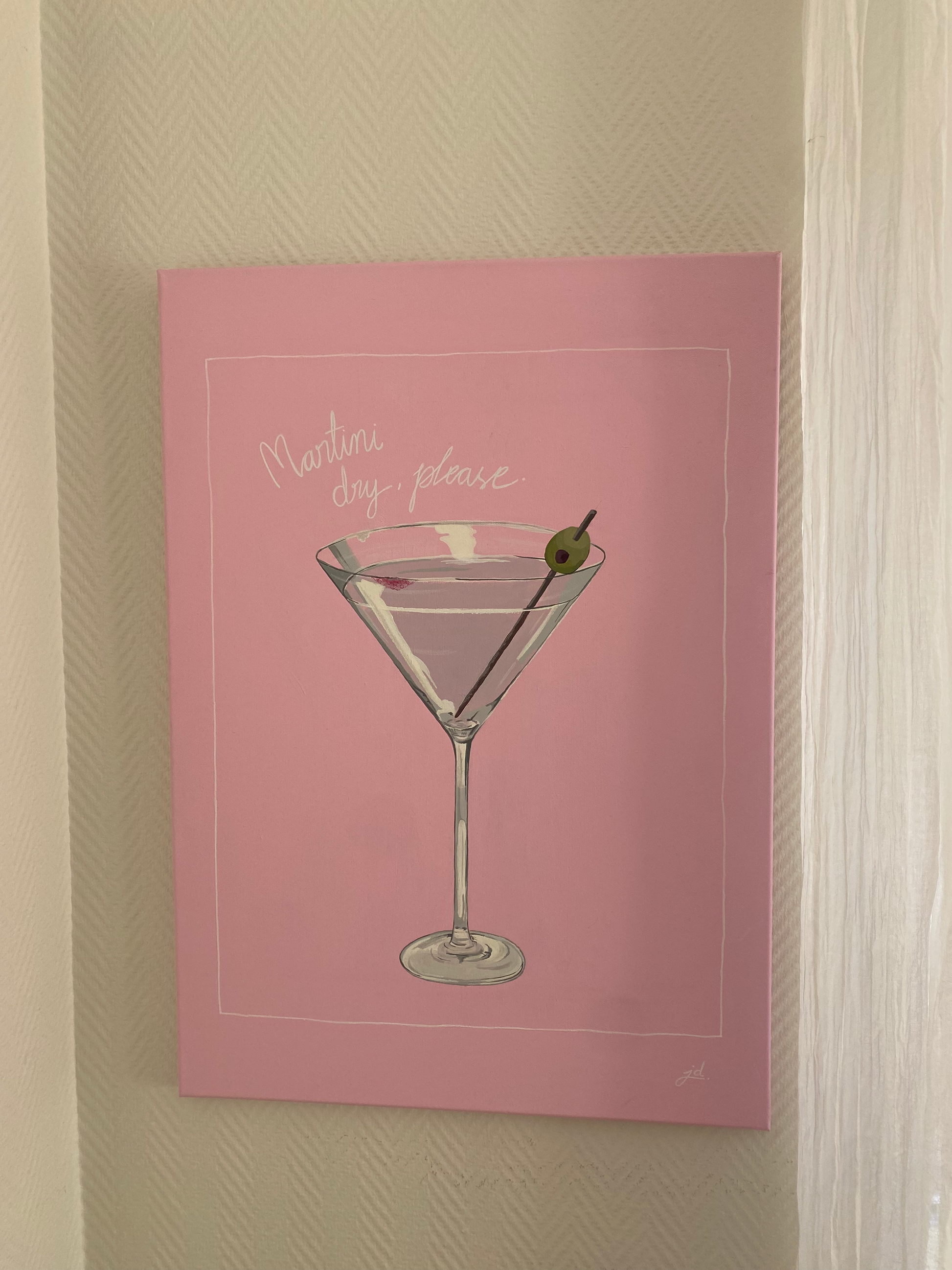 "Martini dry" is a handmade, acrylic painting of a glass of Dry Martini made by the talented artist Julia Diep. This art piece is for you who want something unique, colorful, minimalistic and classy on your wall!