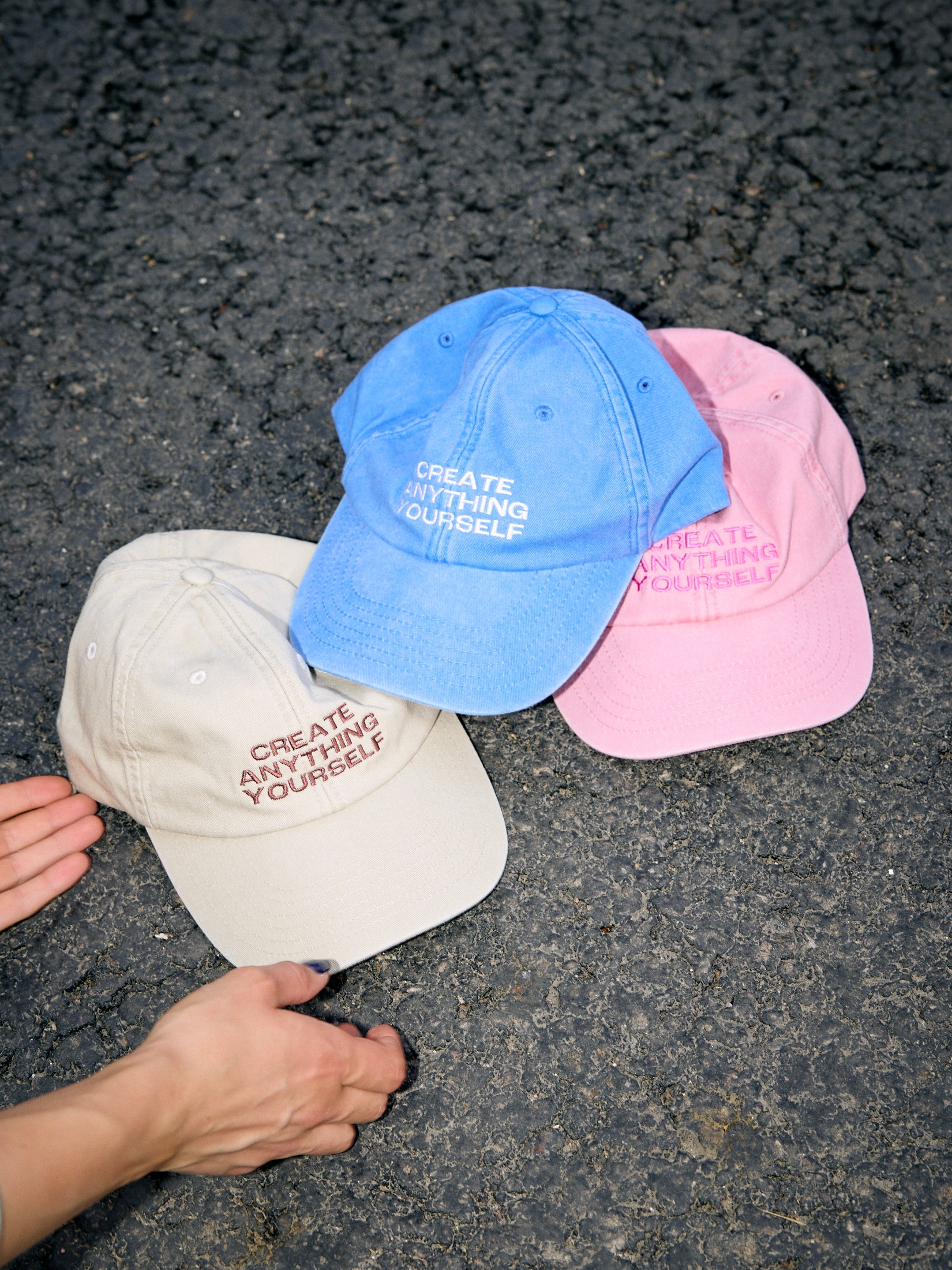 Embroidered with the phrase “create anything yourself,” it’s a statement piece from Cay Collective’s merch line. Whether you’re in the studio, on the go, or just out in the sun, this cap is a bold reminder to stay true to your vision.