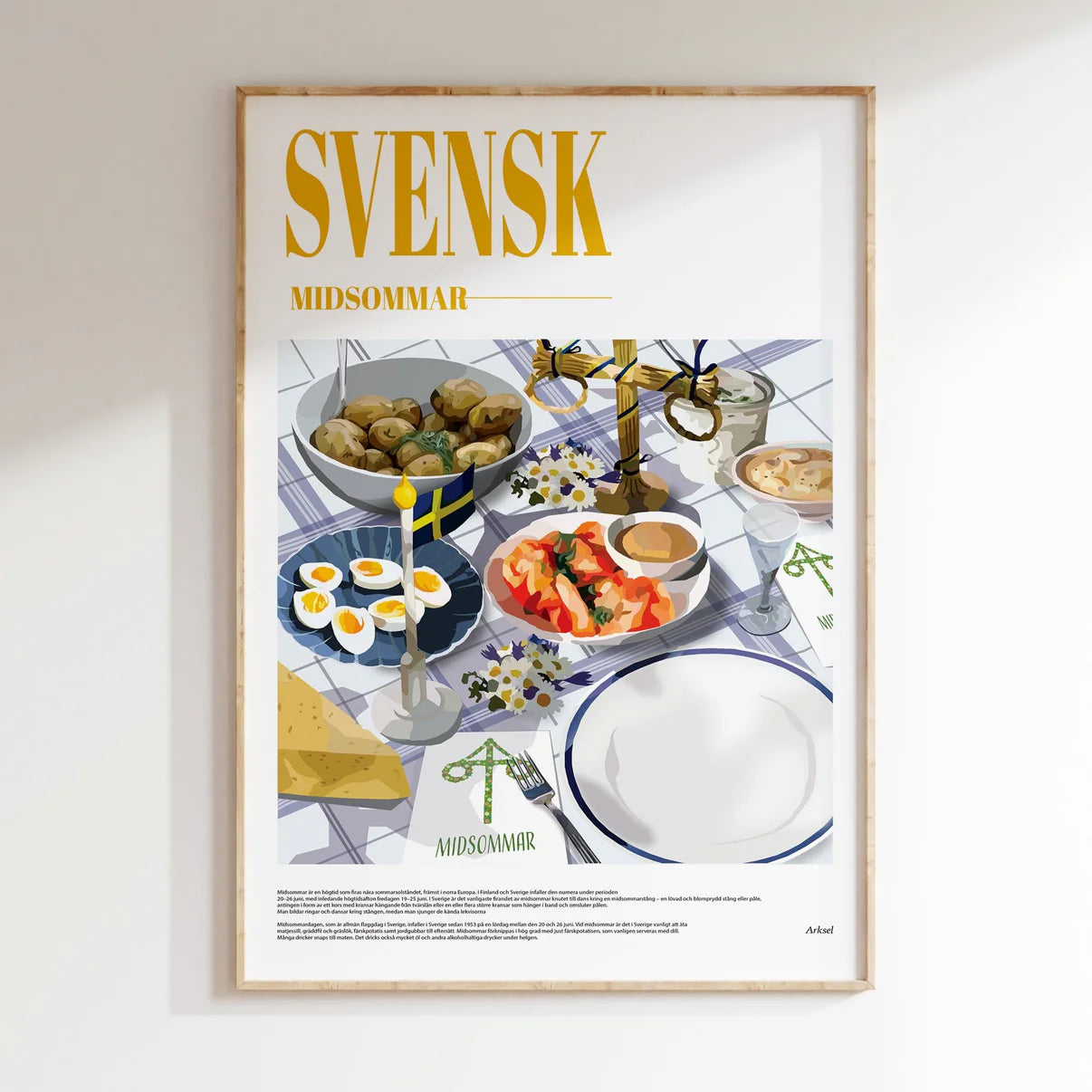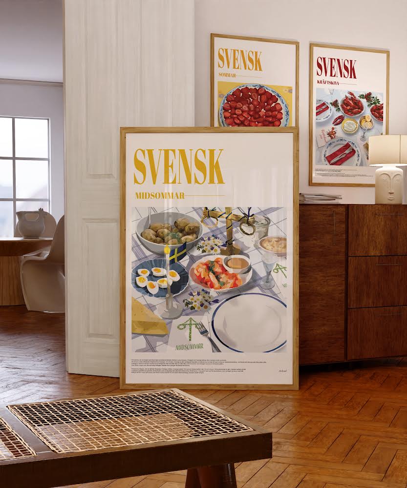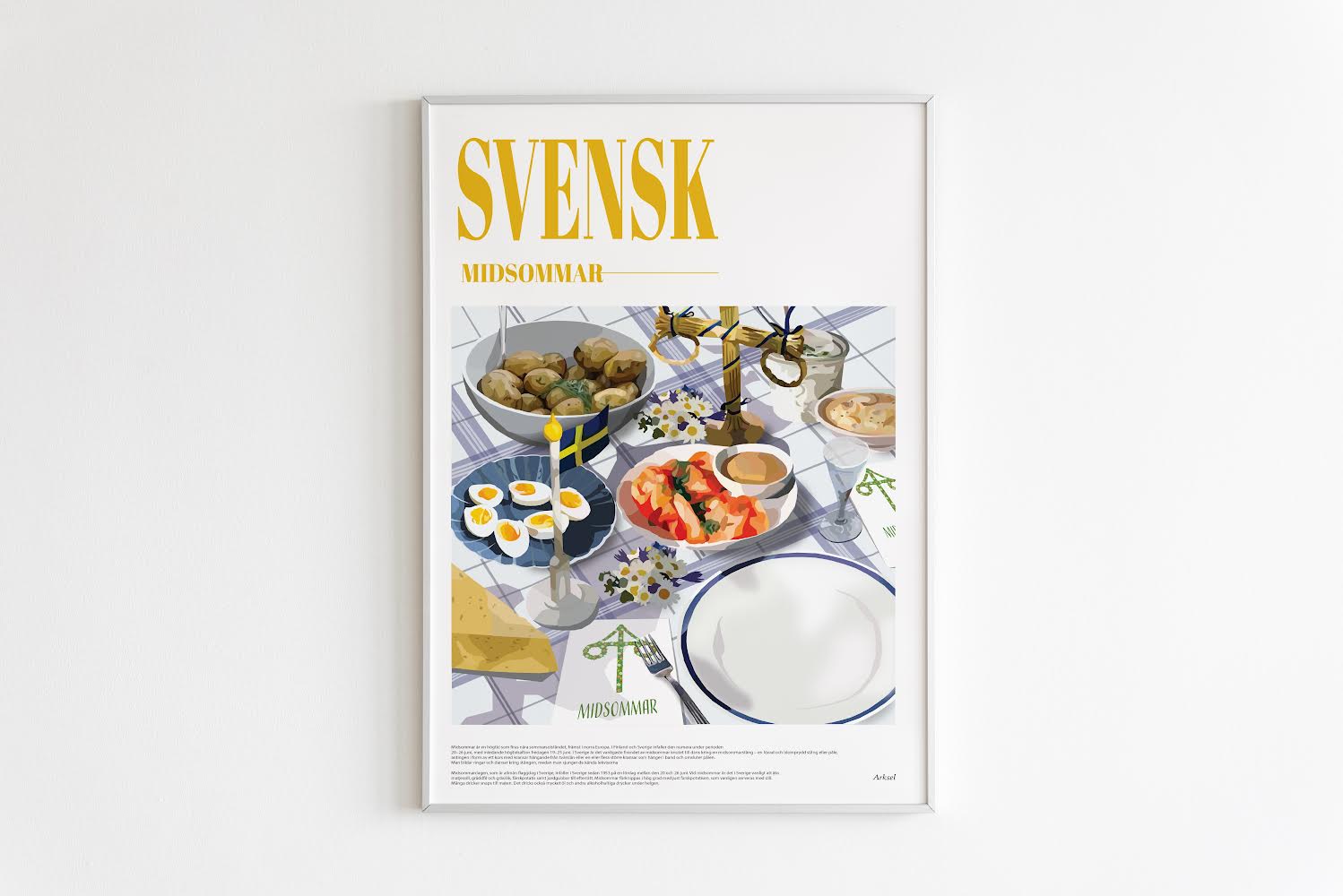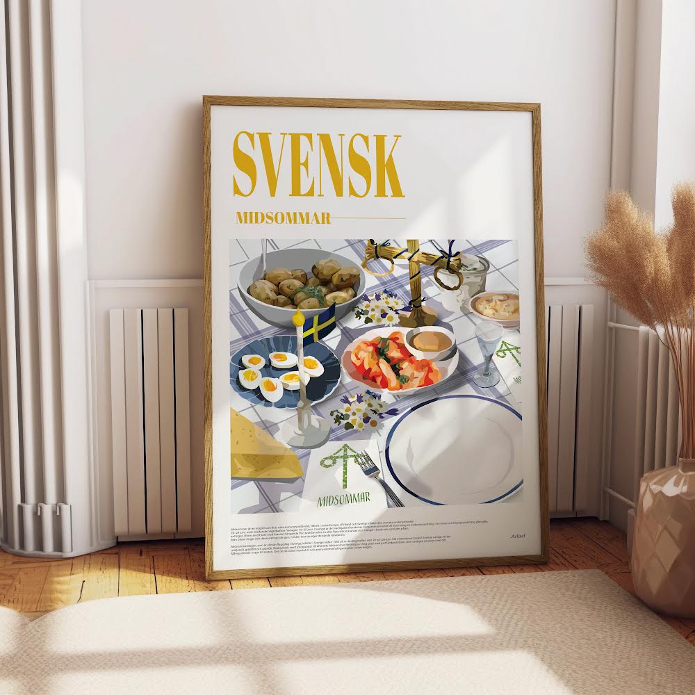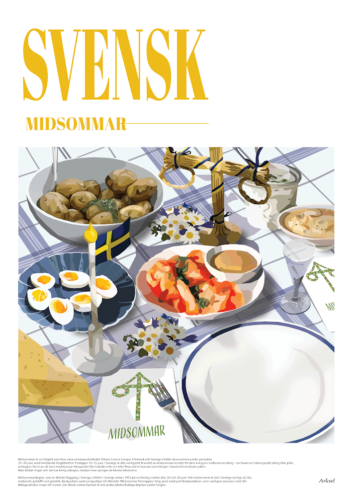 Make your walls more colorful, playful and personal with this Midsommar themed poster by the artist Arksel! Graphic art that brings joy to your home and also makes your home decor more unique.