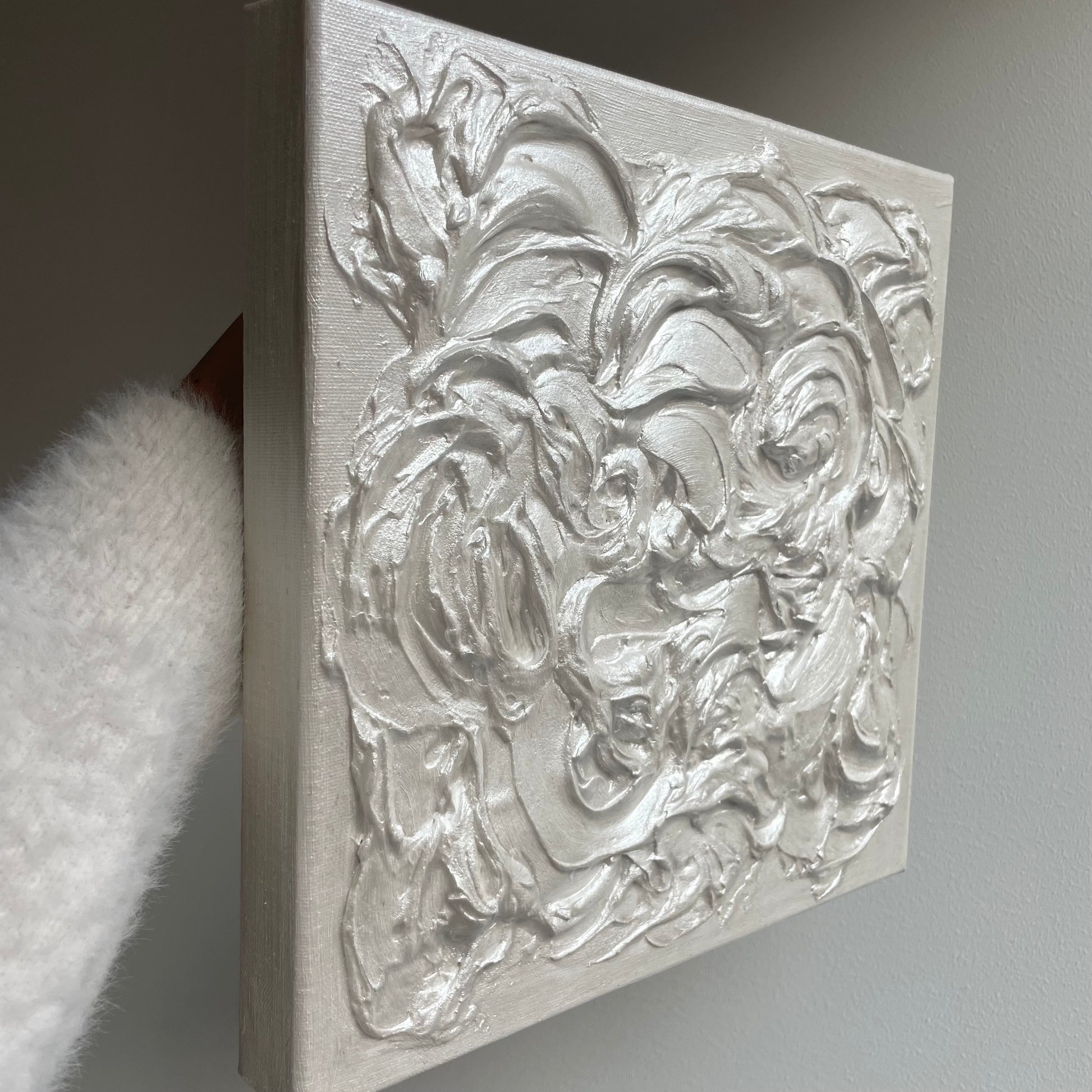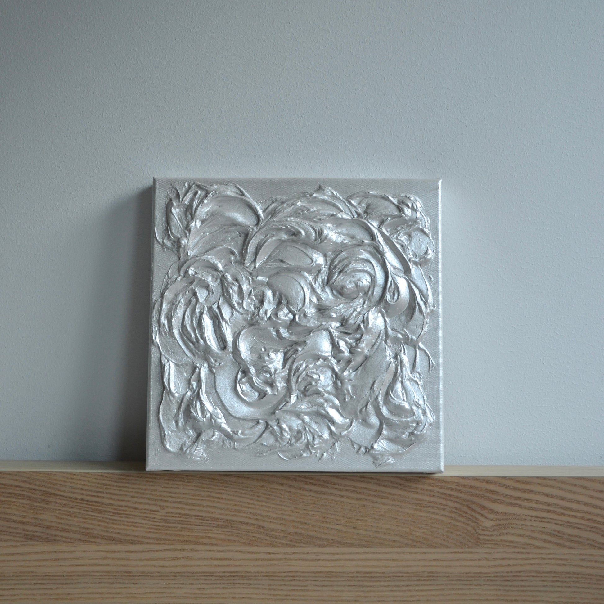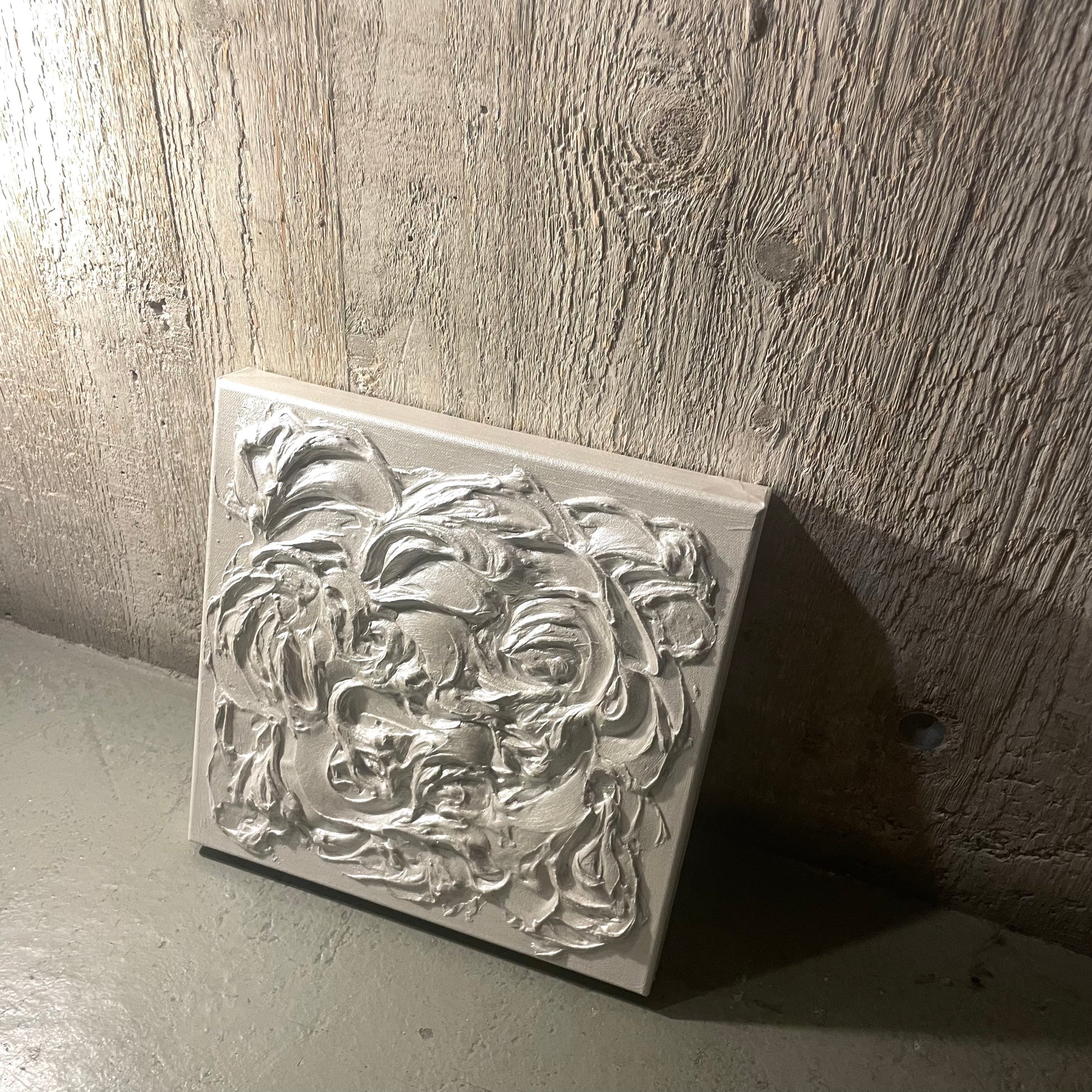Materials: Canvas board with cotton and wood, putty and acrylic paint