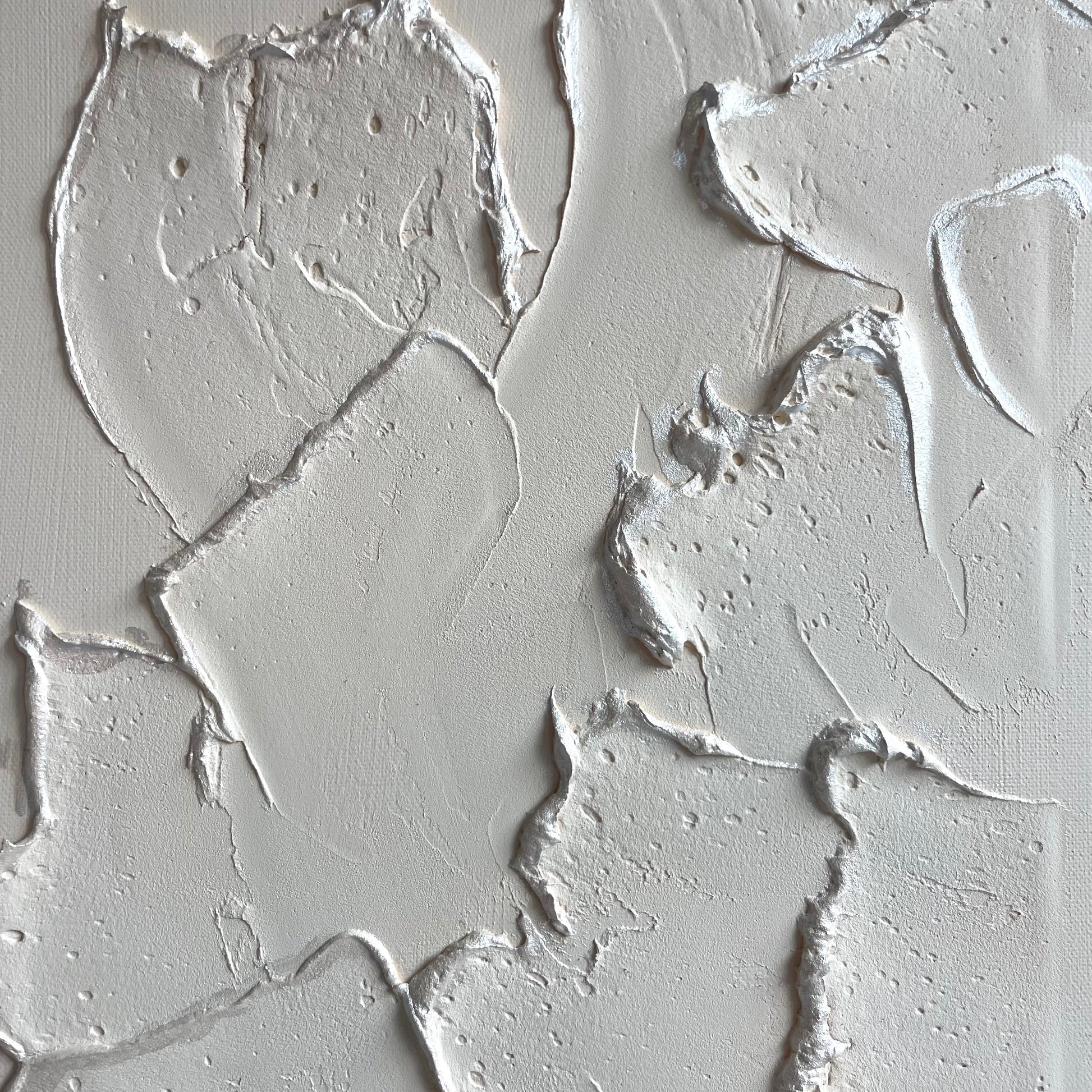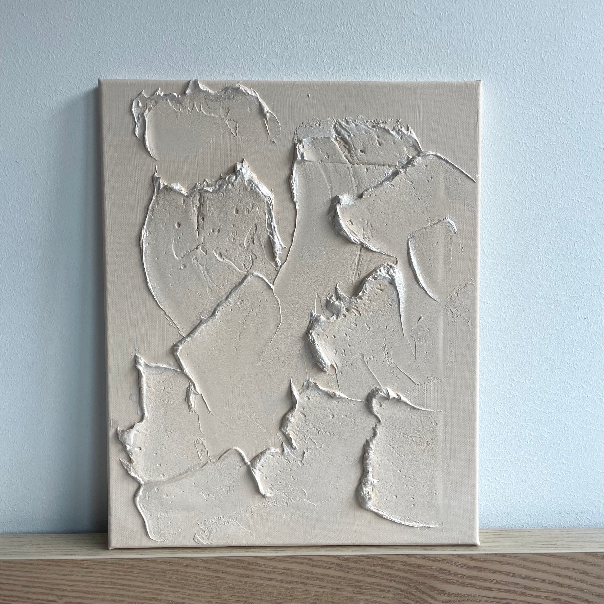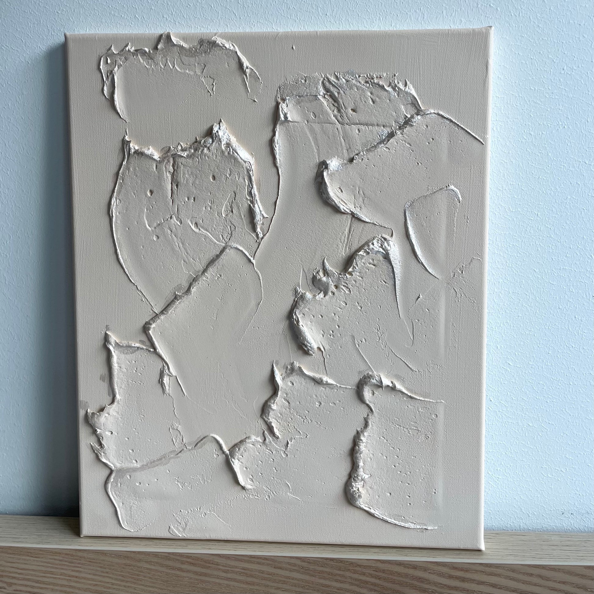 Materials: Canvas board with cotton and wood, putty and acrylic paint