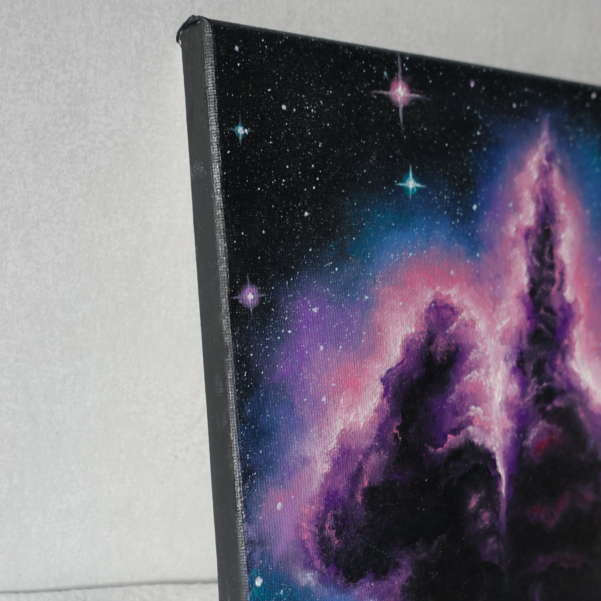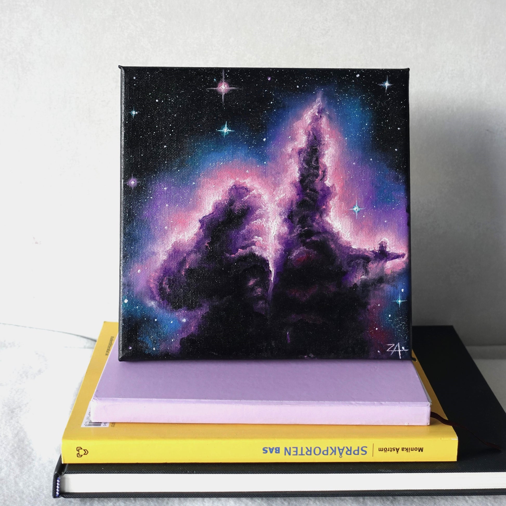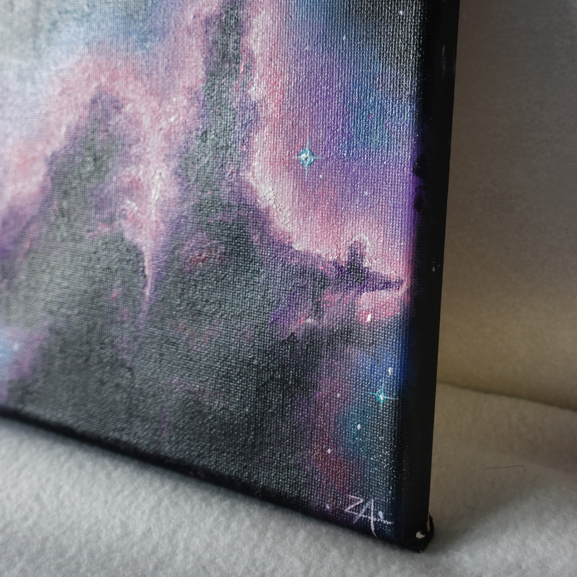 A vibrant pink oil painting of the Mystic Mountain located within the Carina