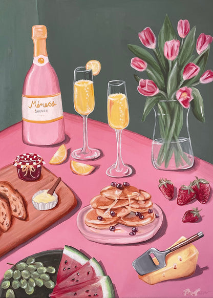Bring joy and warmth to your home with the “Mimosa Brunch” art print by Thea Timsäter. This vibrant piece captures the cheerful essence of a lively brunch scene, featuring bold and playful colors that brighten any space.