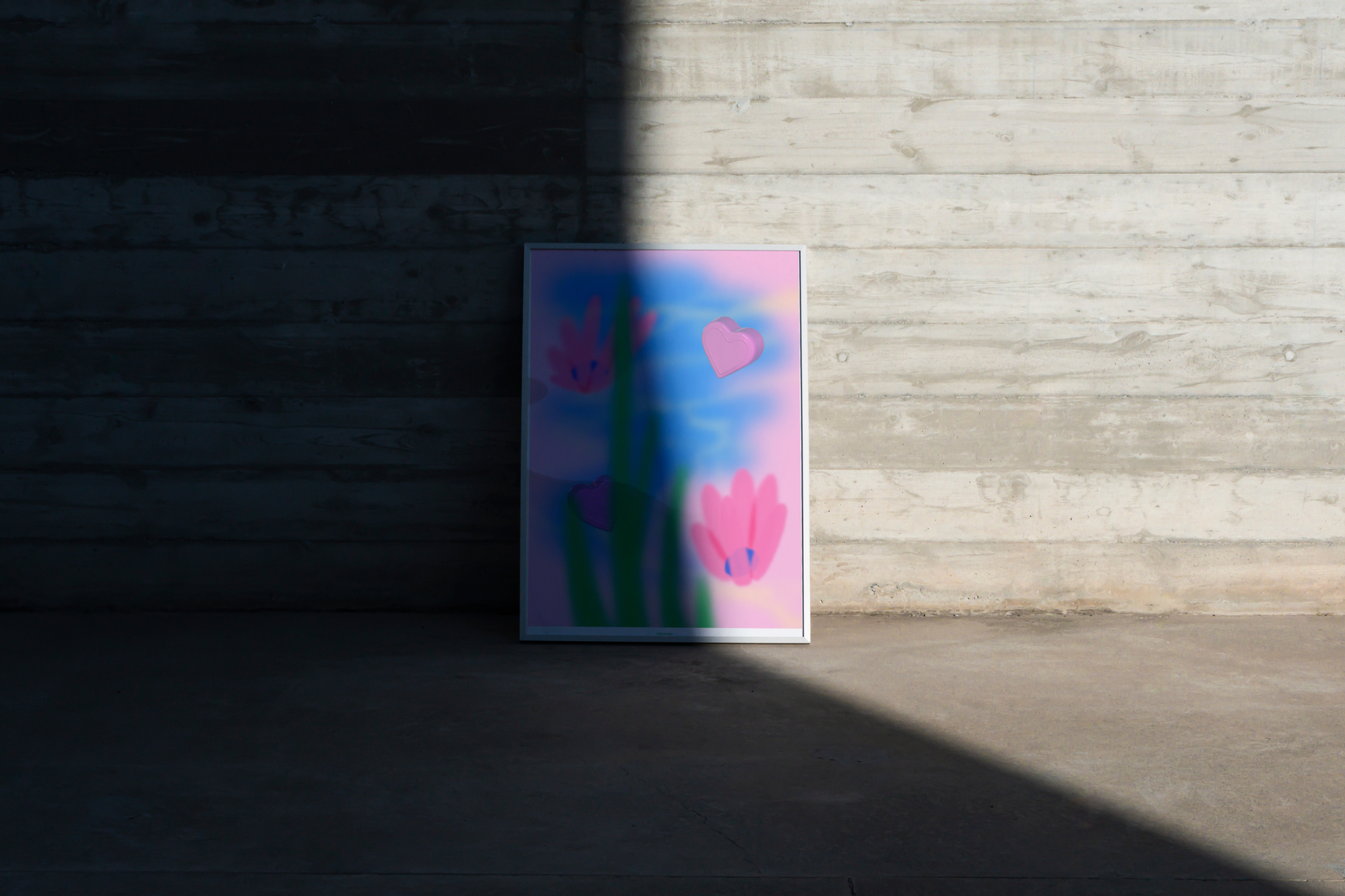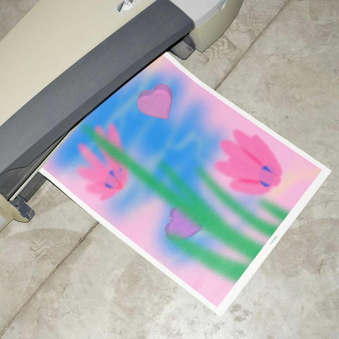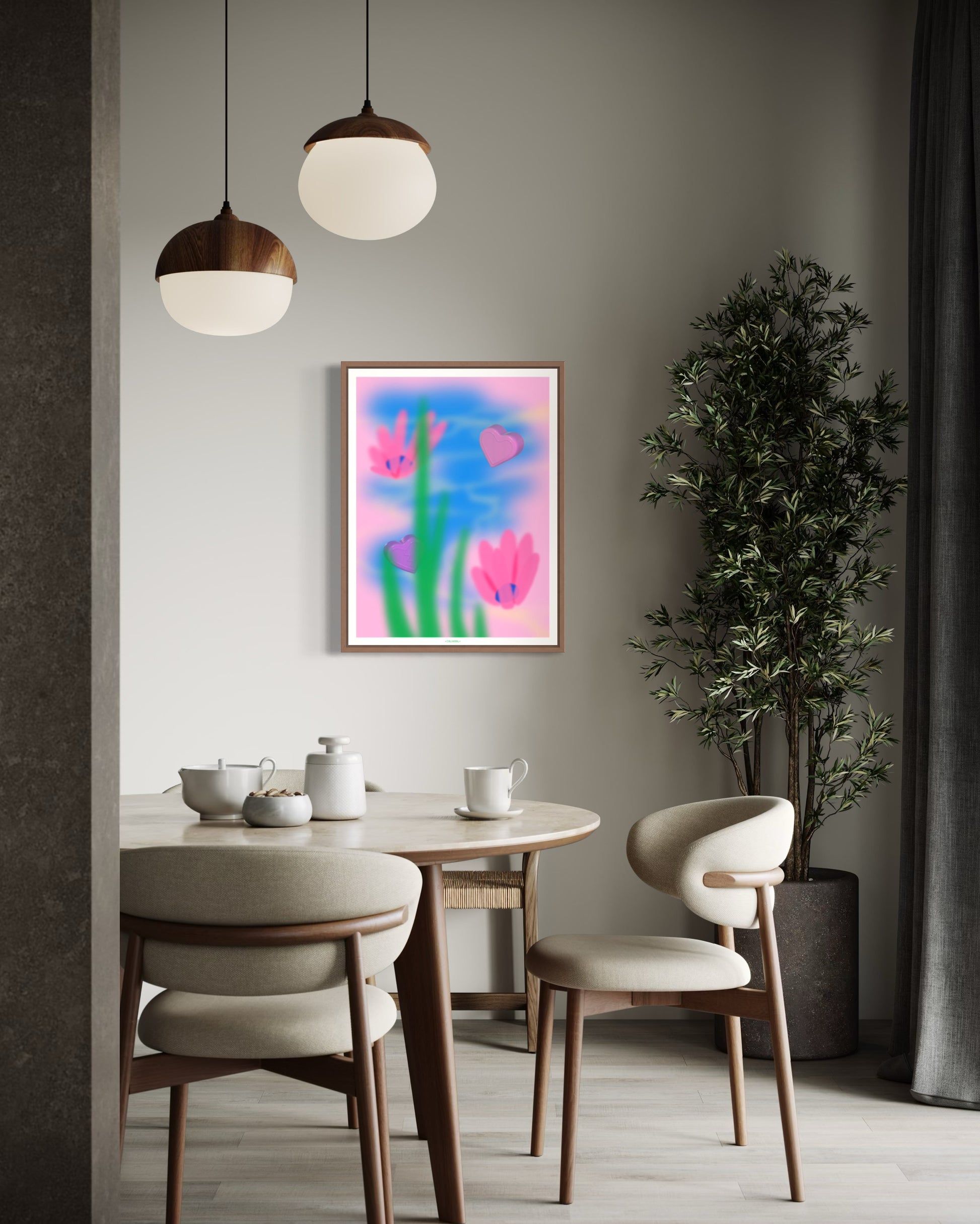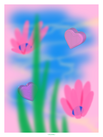 A unique illustrated poster by the talented designer CALIKARL. "Heartfield" is an art piece with a lot of vibrant colors and fun shapes that's made with in different techniques. Brings more style and personality into your home!