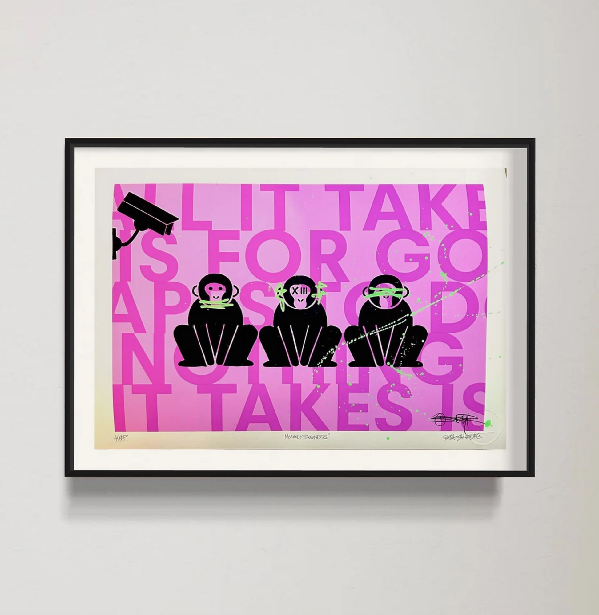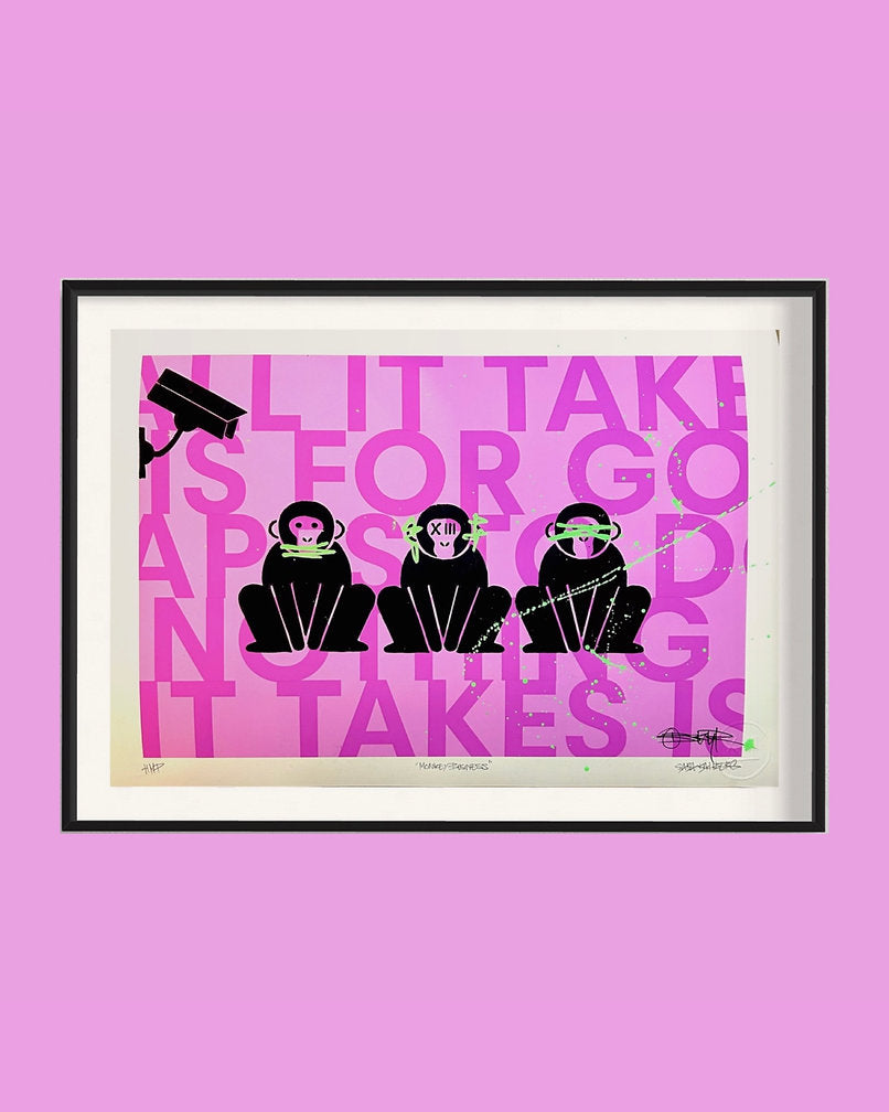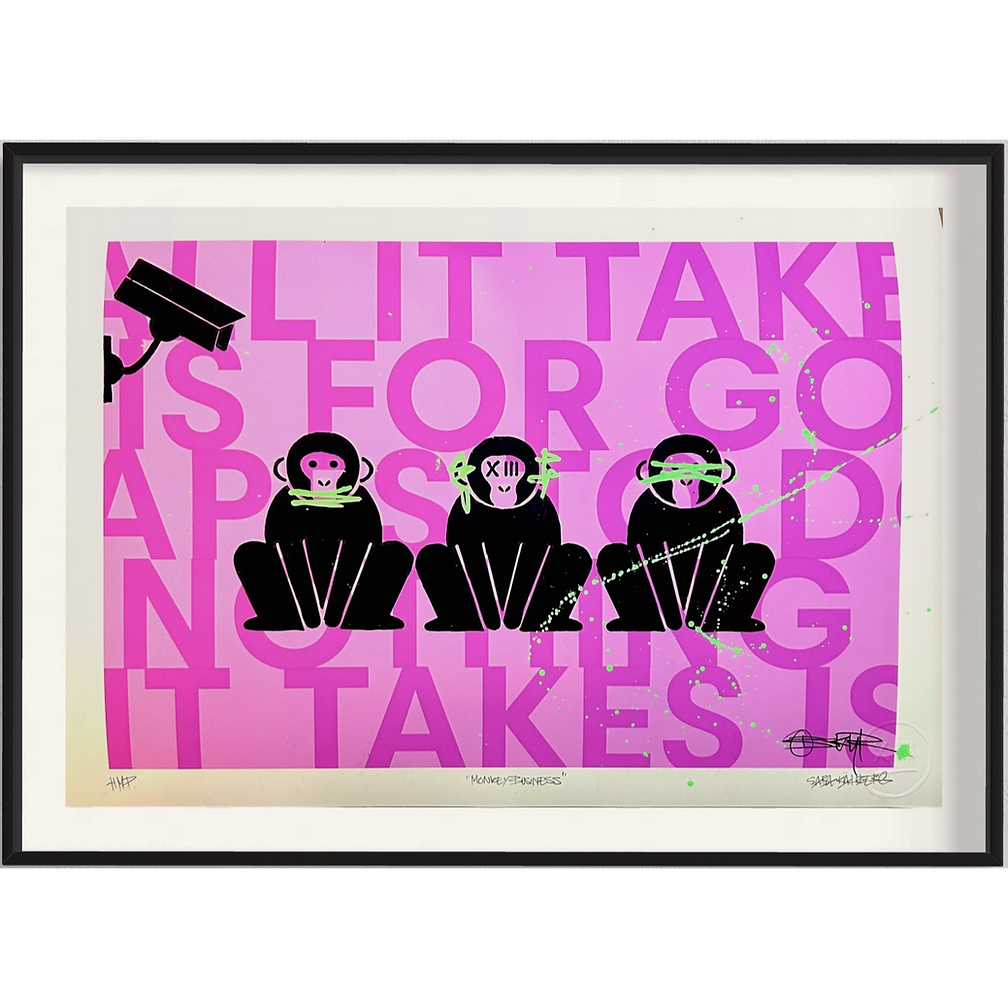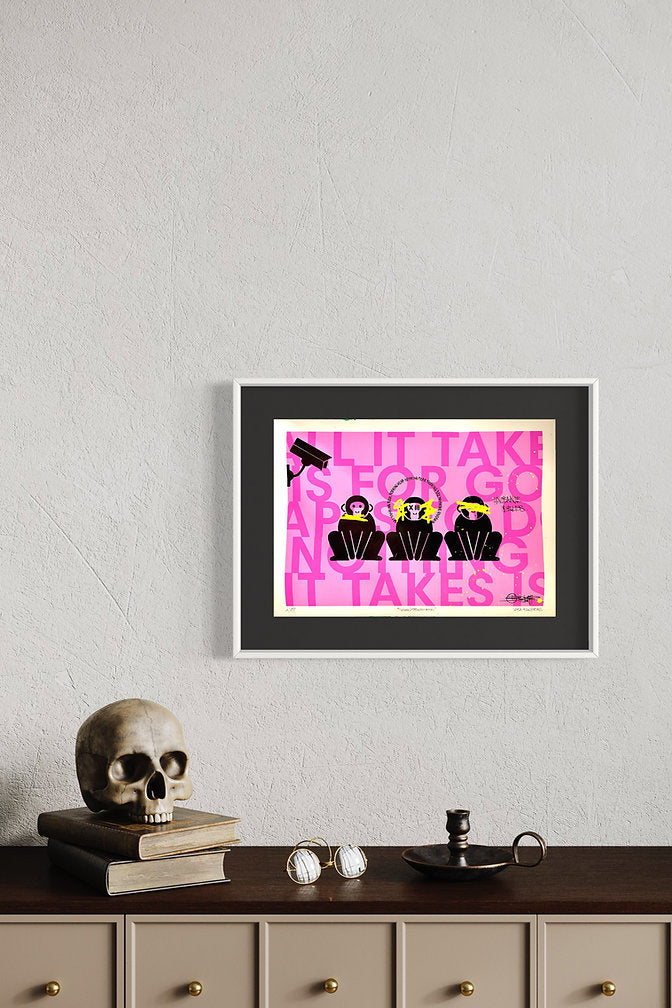 Part of a series inspired by the iconic “wise monkeys” – but in contrast to their silence, this piece dares to see, hear, and respond to what feels off. A visual reminder of self-reflection and moral responsibility: