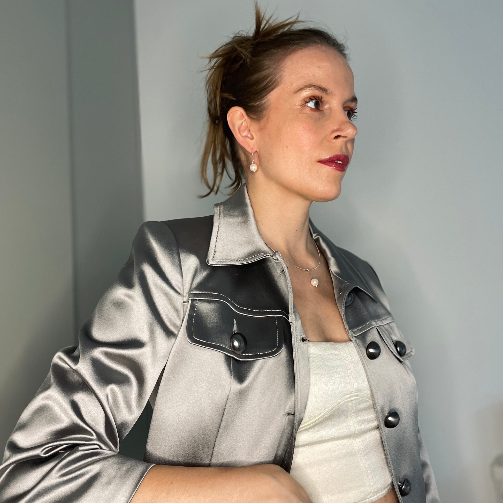 silver. Available in sophisticated champagne or classic gray to suit your style. Handmade with care in Stockholm of recycled silver - a timeless piece of jewelry with a unique character.