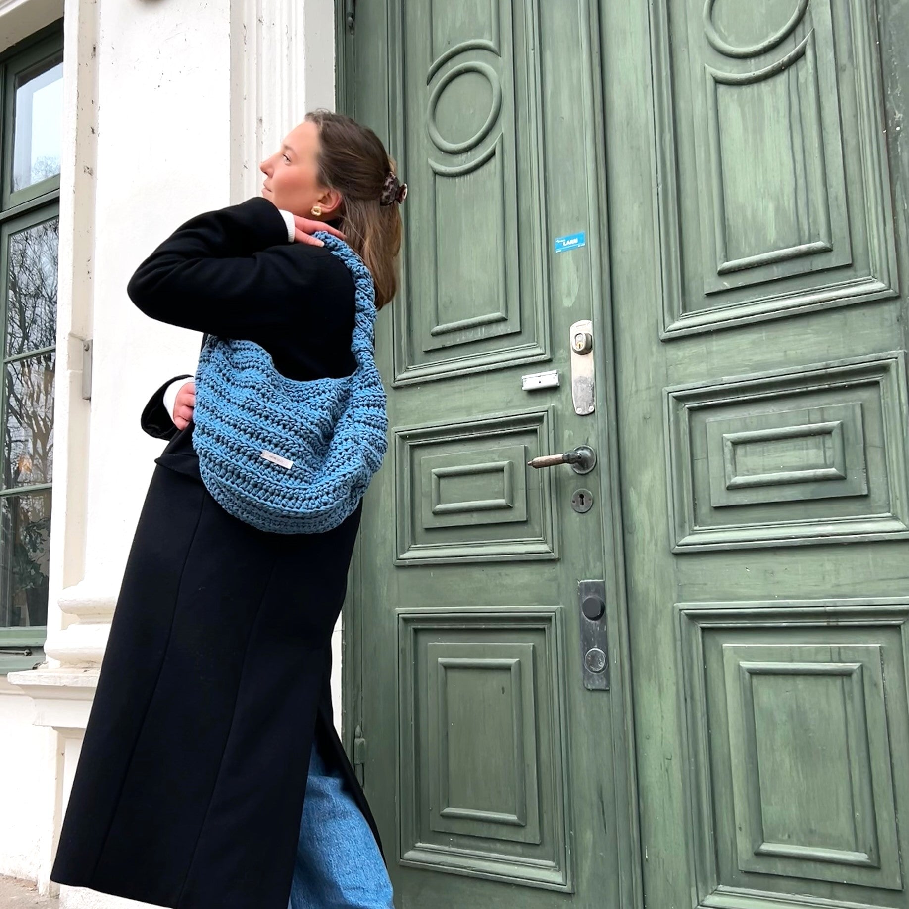 Odette is the perfect bag when you need to carry a little more. It's bulky, stylish, and adds a soft touch to your outfit! Designed to be worn over the shoulder, it features an extra crocheted layer at the bottom for added stability. The vibrant blue color pairs beautifully with denim and brings life to even the dullest of days.