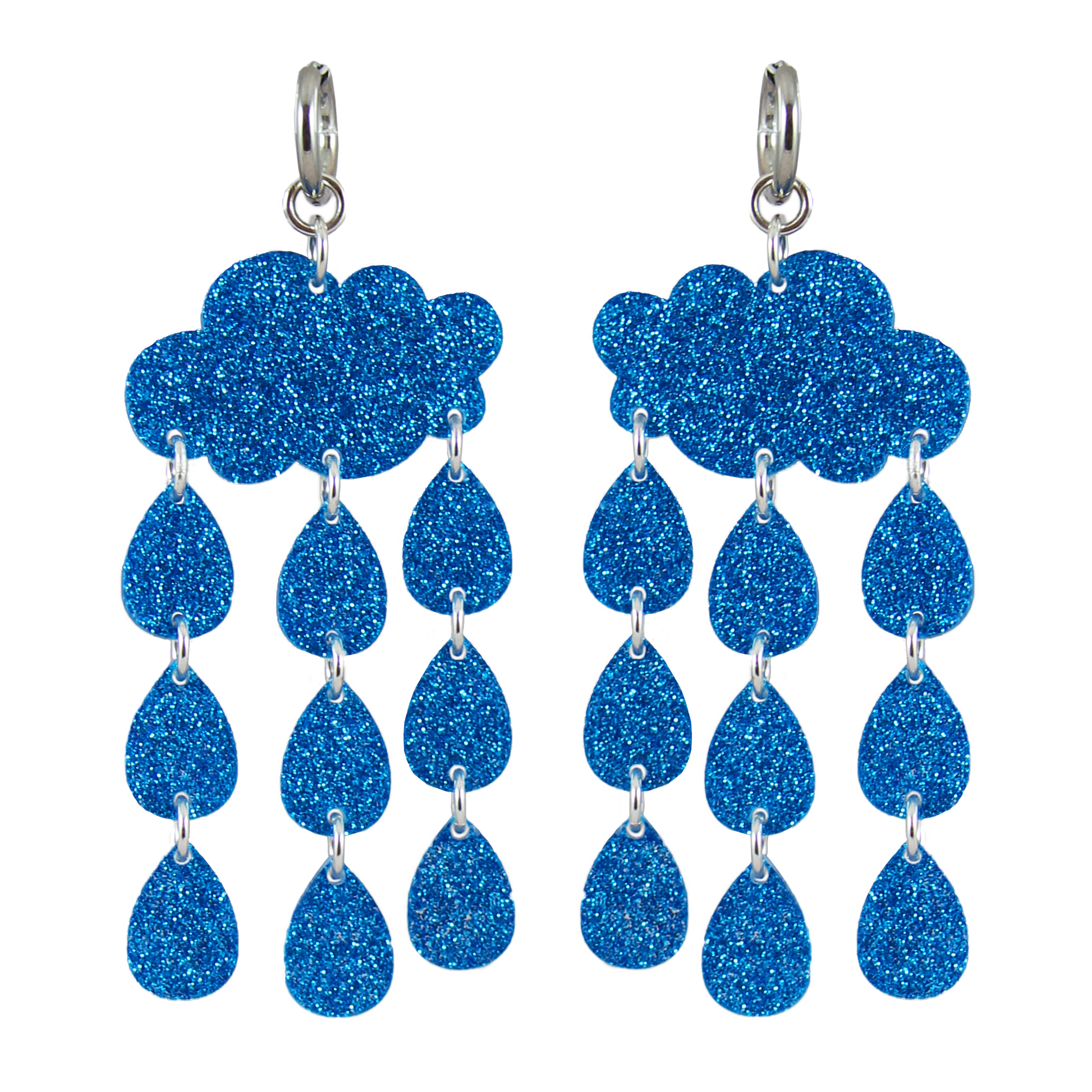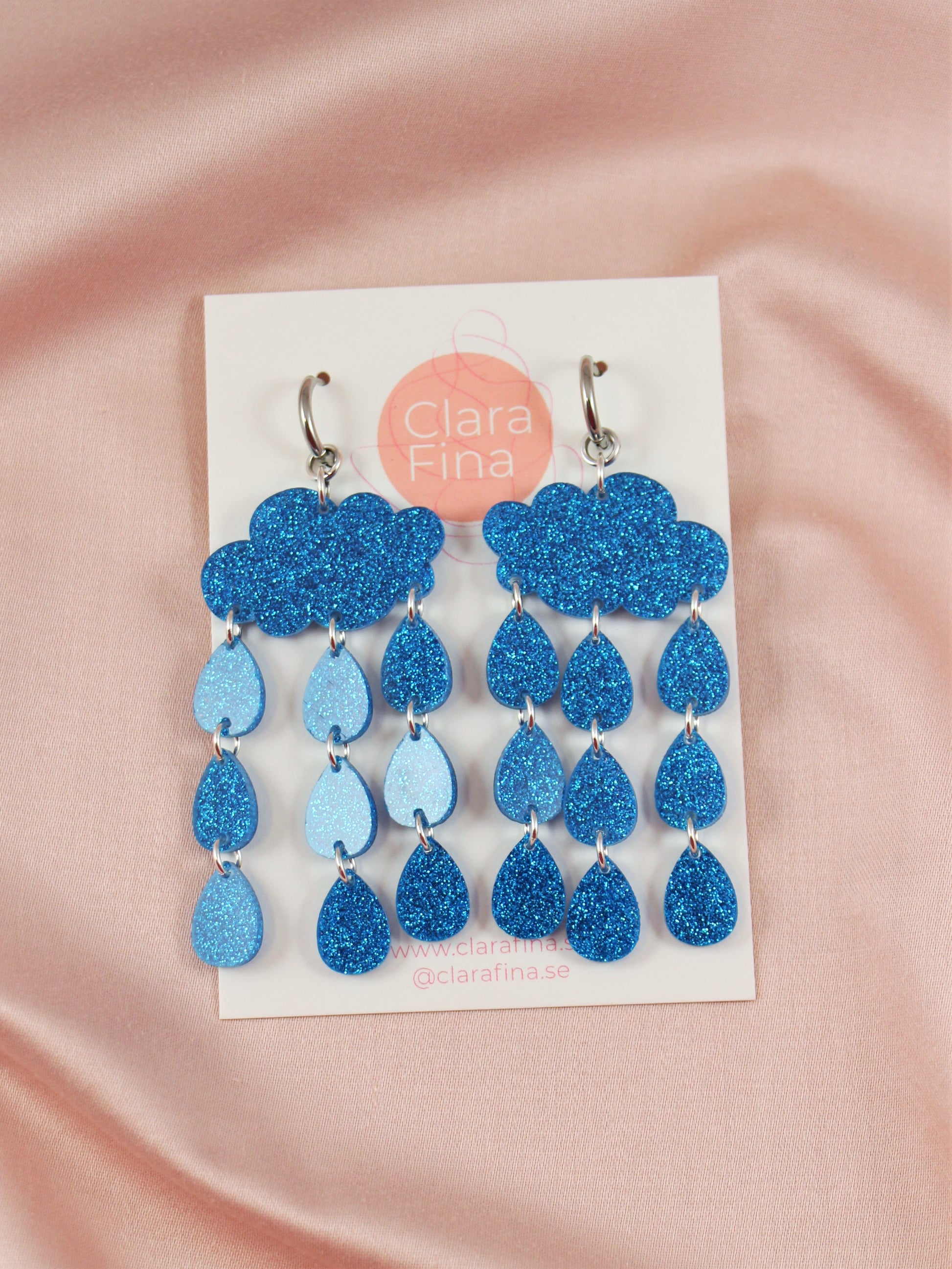 Ösregn are blue, glittering earrings inspired by Gothenburg's most common weather and pair perfectly with your raincoat to add a touch of glamour...