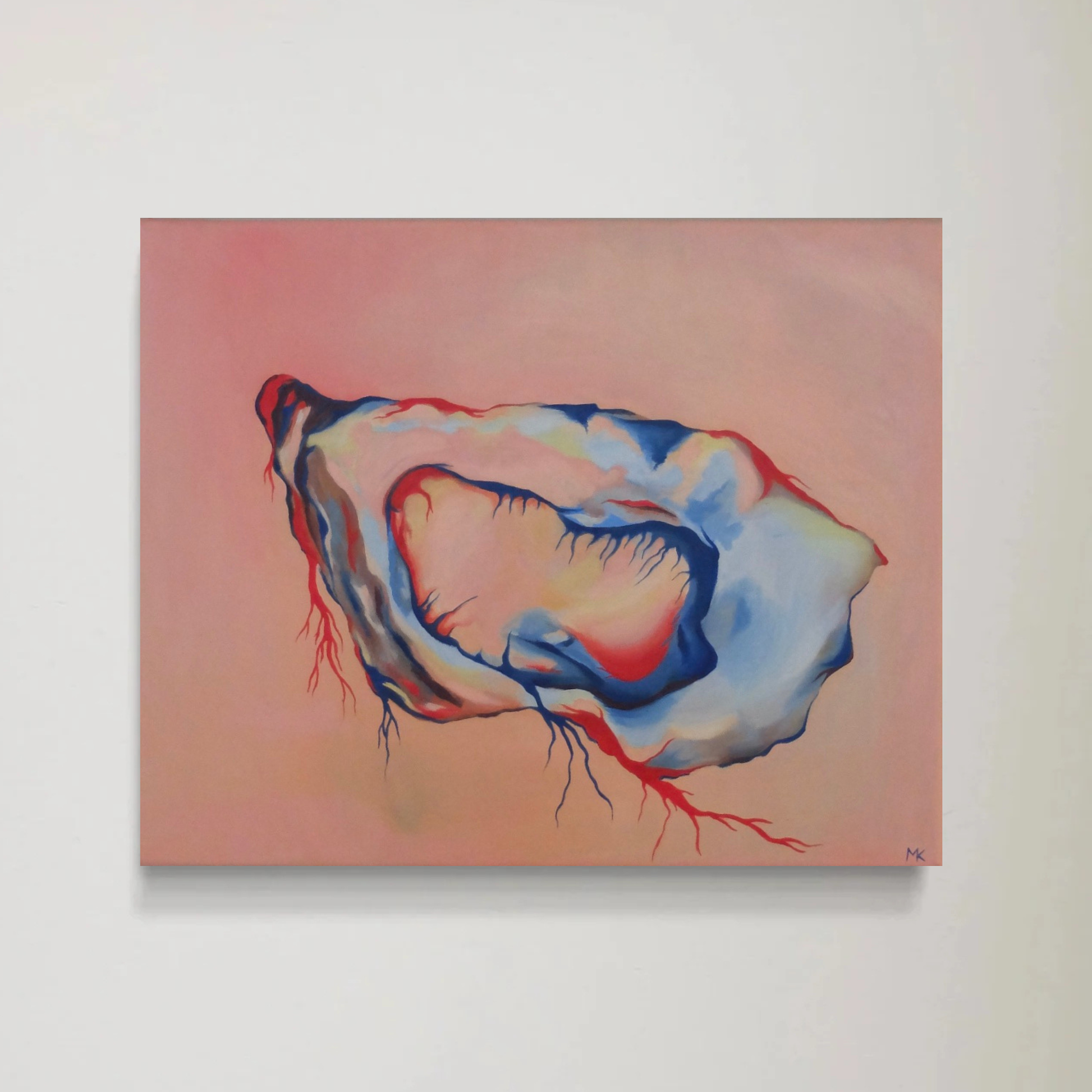 Oil painting of an abstract oyster from Bohuslän, exploring the border or realism and surrealism.