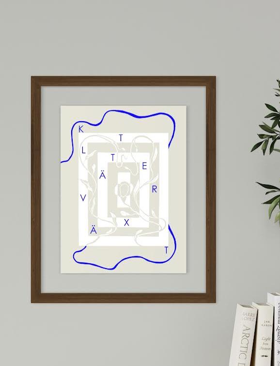 KLÄTTERVÄXT is a poster designed to bring lush nature into your home and give you a sense of liveliness all year round. The base is handmade and can be purchased as an original artwork on the website, but the poster features a different color palette and additional details created in Adobe Photoshop.