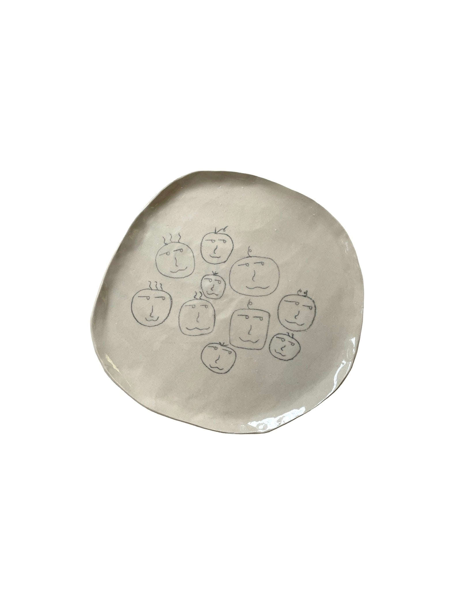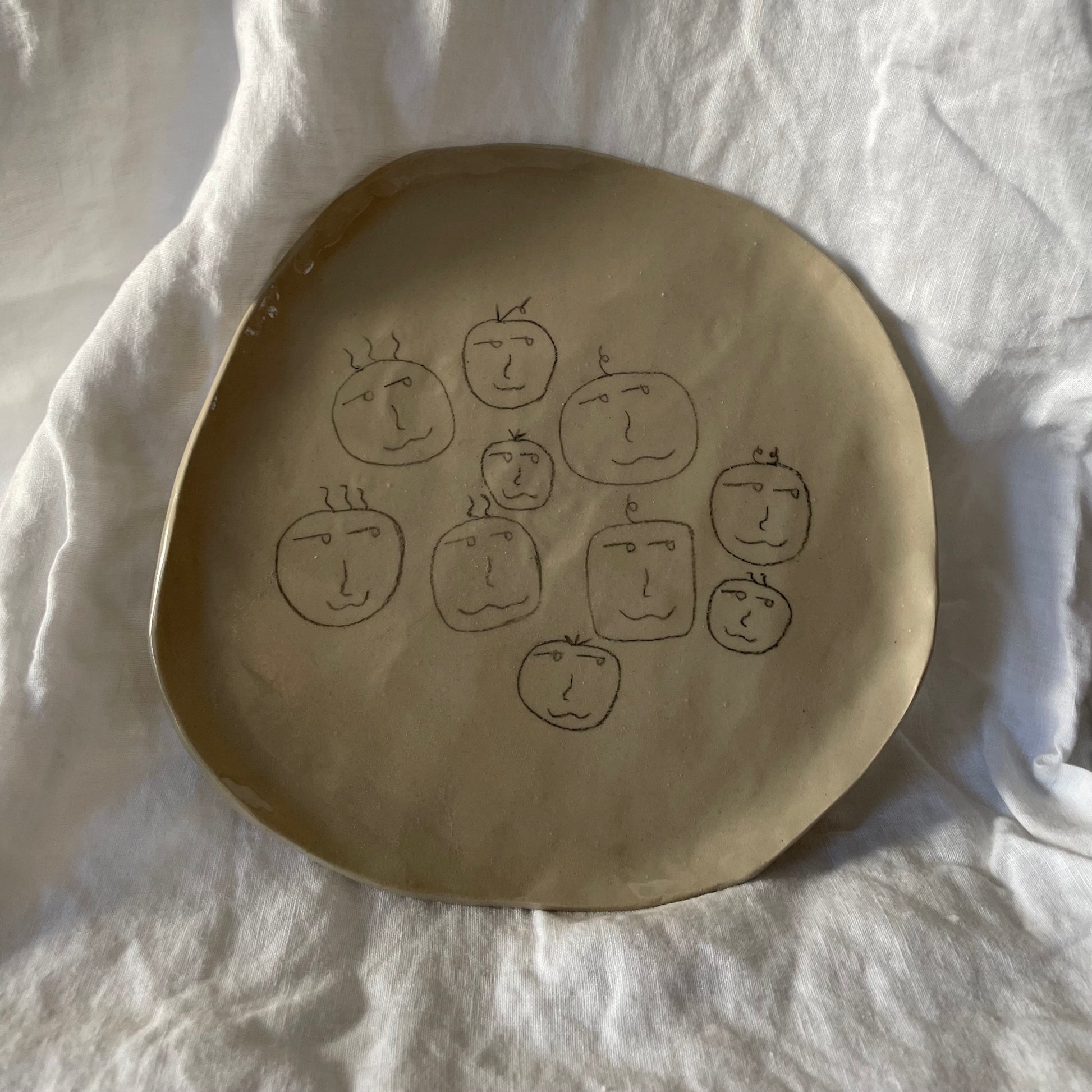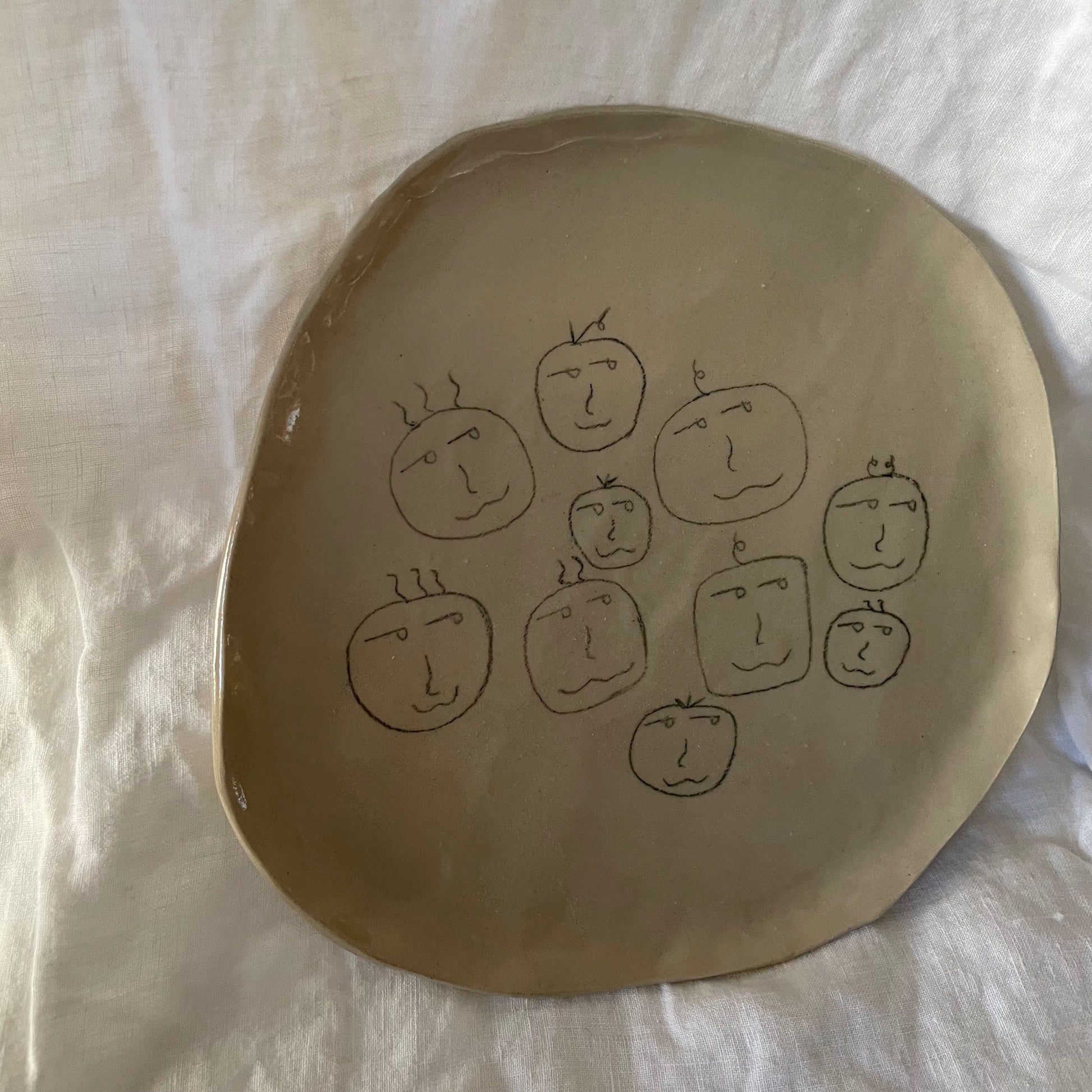 Handmade ceramics in stoneware clay, painted with engobe and glazed with a transparent glaze.