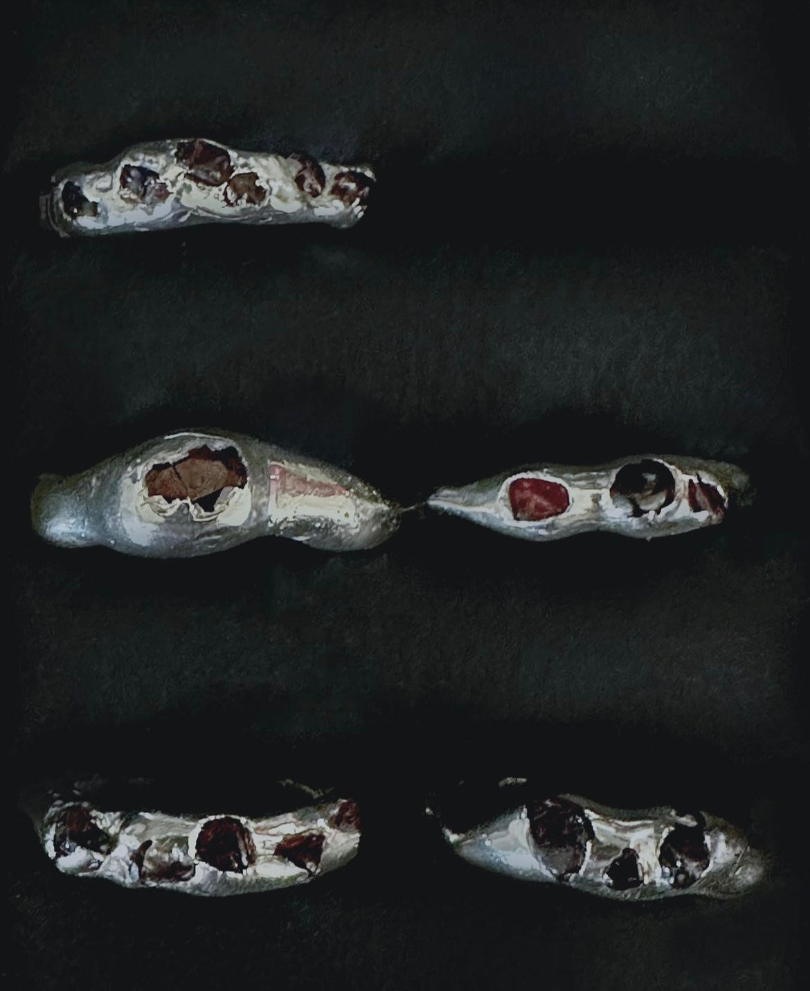 A handmade, unique silver ring by the talented jewelry designer Crowwc Design! It has a cool, organic shape and different colored stones inside of it. Perfect for spices up your style by adding more personality and details to it. Each piece differs.