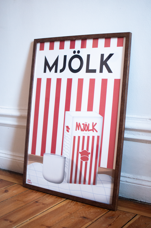 The well-known, traditional Swedish packaging for milk in a graphic poster - that is "Röd Mjölk" by the designer Erik Fläder. Bring unique, retro inspired art into your home and make it more playful and stylish!