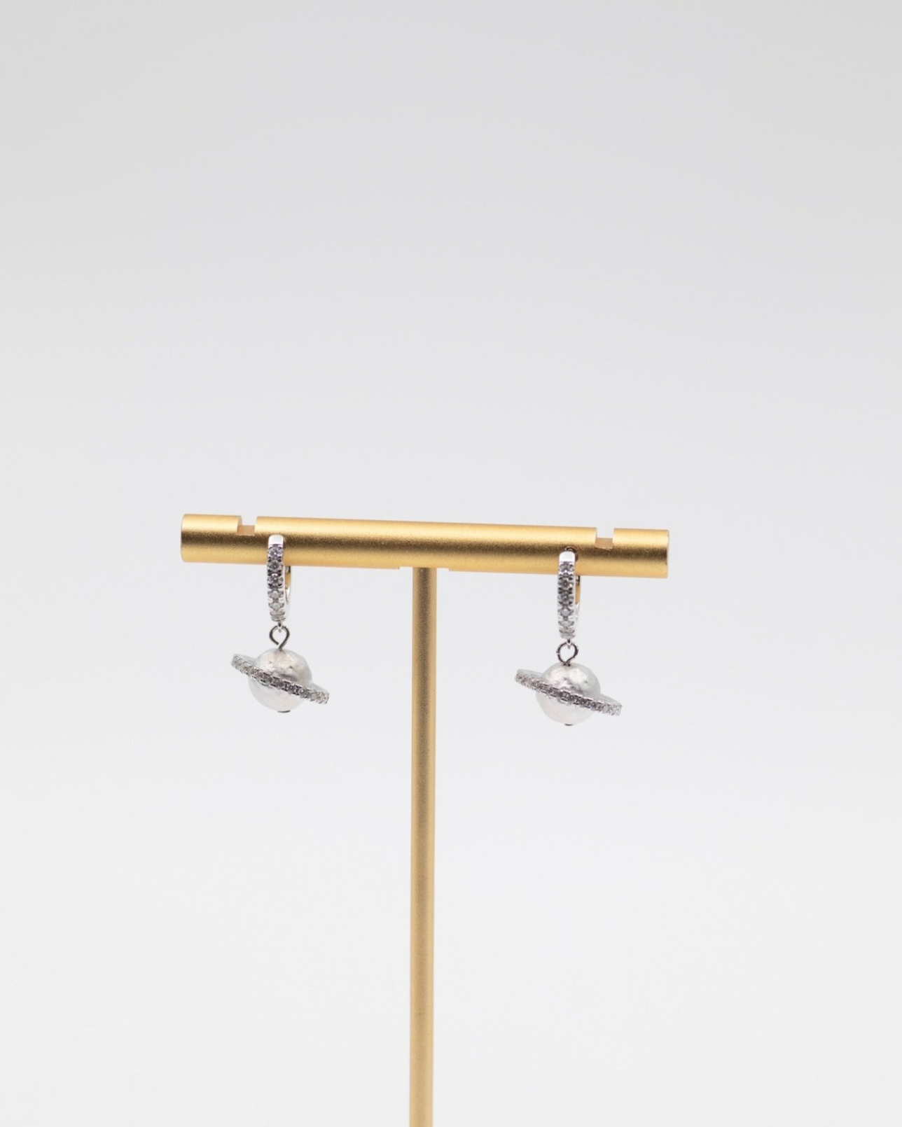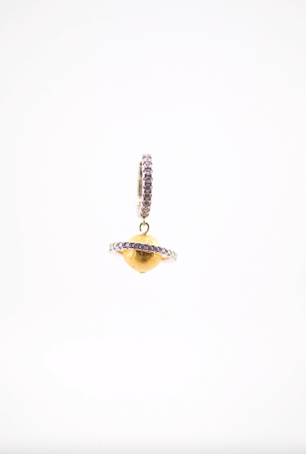 The Saturn earring is crafted from 925 sterling silver with additional 18K gold-plating and little gems. An elegant and unique high quality jewelry piece for the style conscious person!