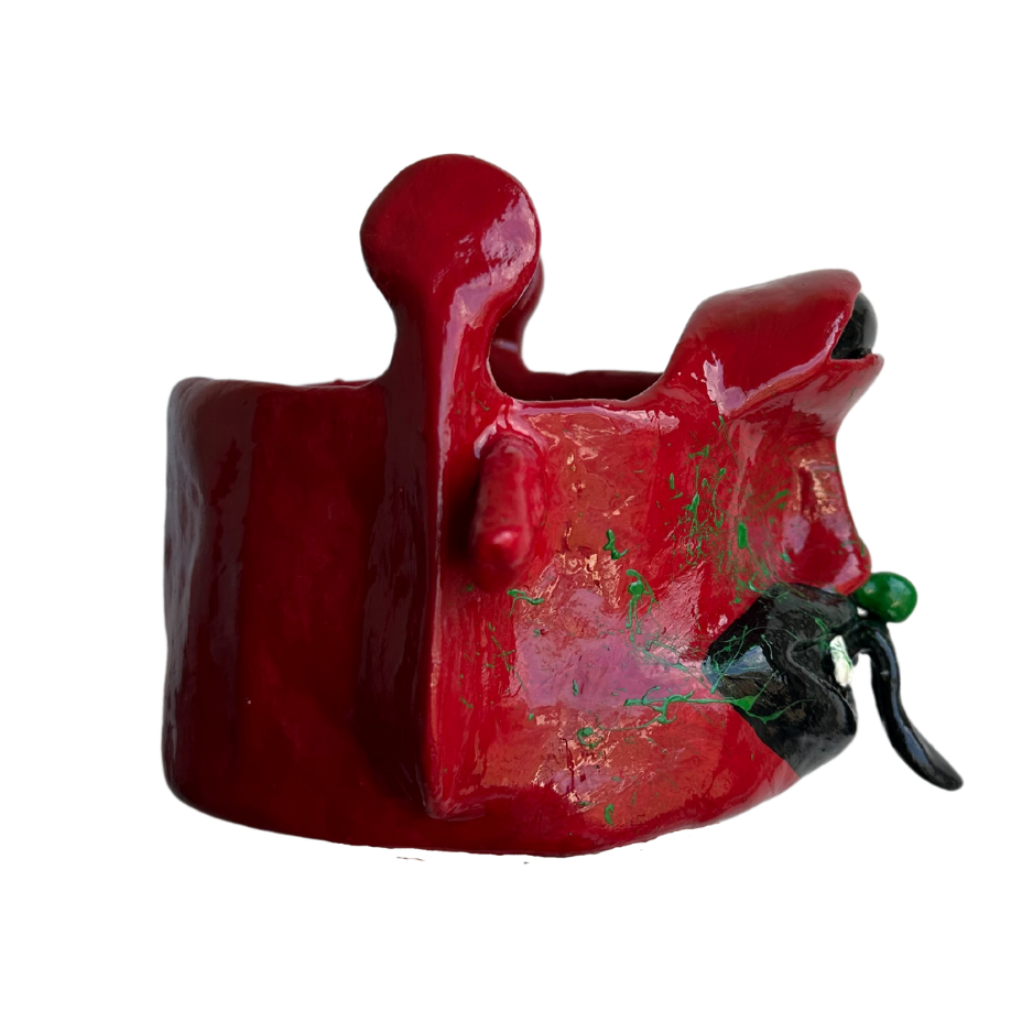 Materials: Homemade air-dry clay from natural products with a silicone layer over for durability.