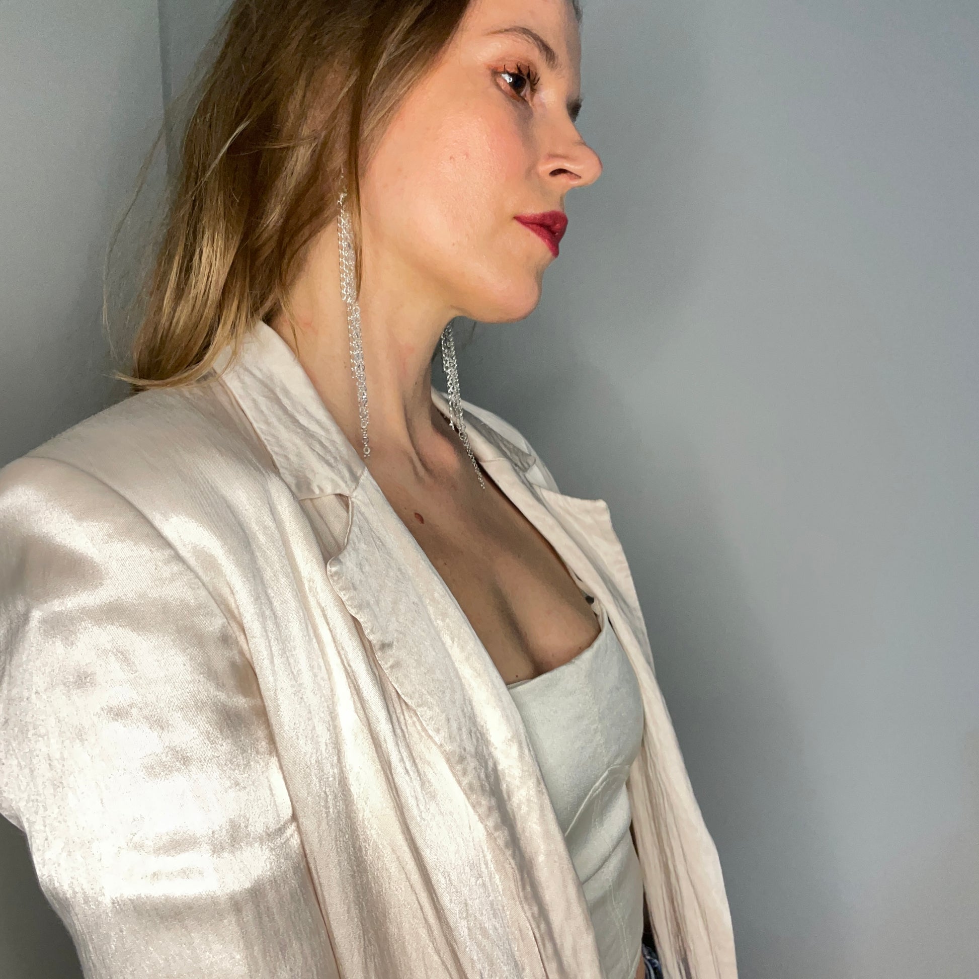 Stylish and unique earrings with a beautiful case, created by three different recycled sterling silver chains. Their shimmering movement catches the light perfectly – an elegant detail for every occasion. Handmade with care in Stockholm.