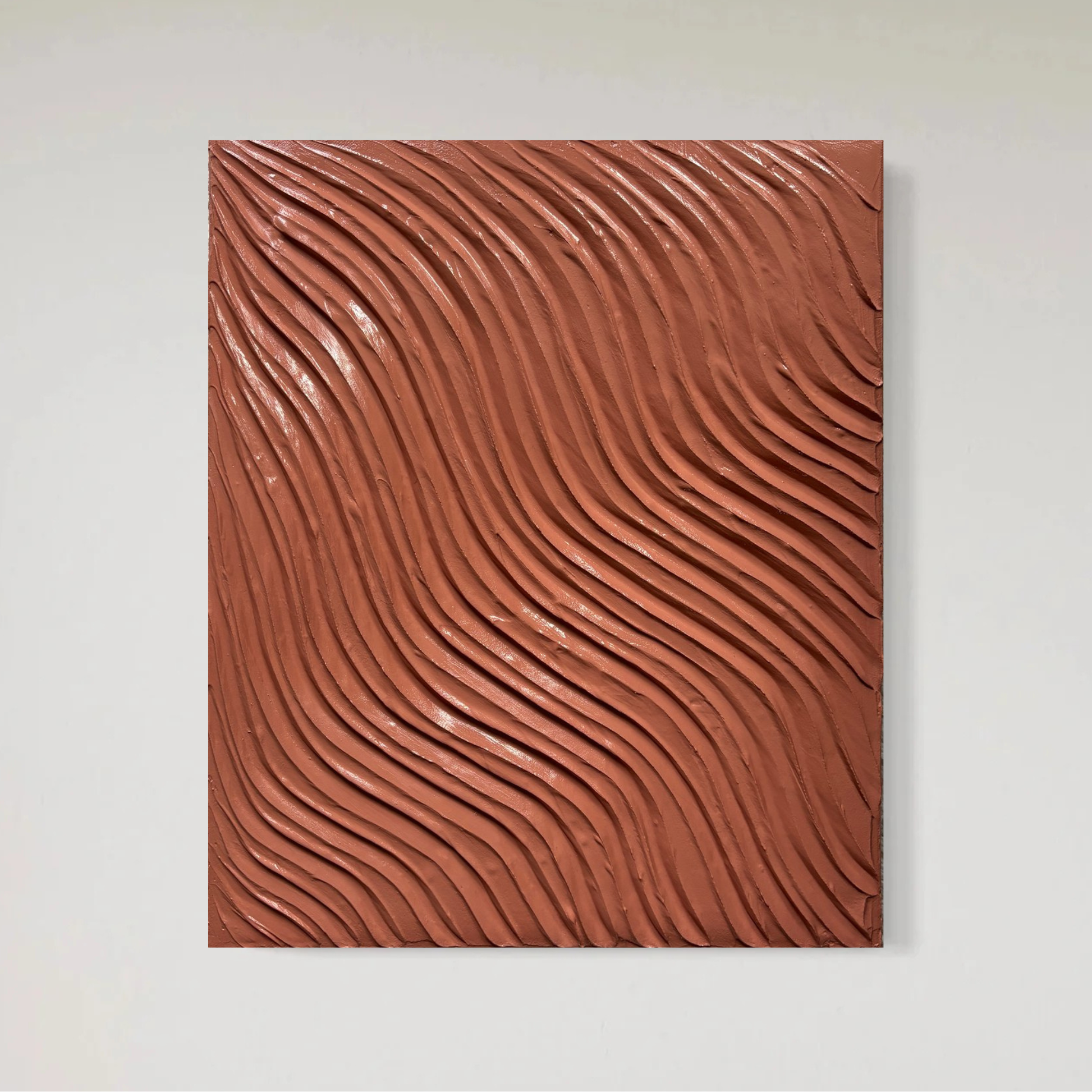 This is textured art and is a 3D piece Sara Vigerlands "Tillstånd" collection in a 38x46 piece in a fiery coral red. Featuring an intense wave-like texture, this piece evokes exciting feelings flowing around. Handcrafted with attention to detail, this artwork not only adds aesthetic appeal but also creates a tranquil ambiance with a touch of colour to pop any room. Perfect for home or office spaces, it's an ideal choice for art enthusiasts looking to enrich their interiors with a touch of elegance and colour.