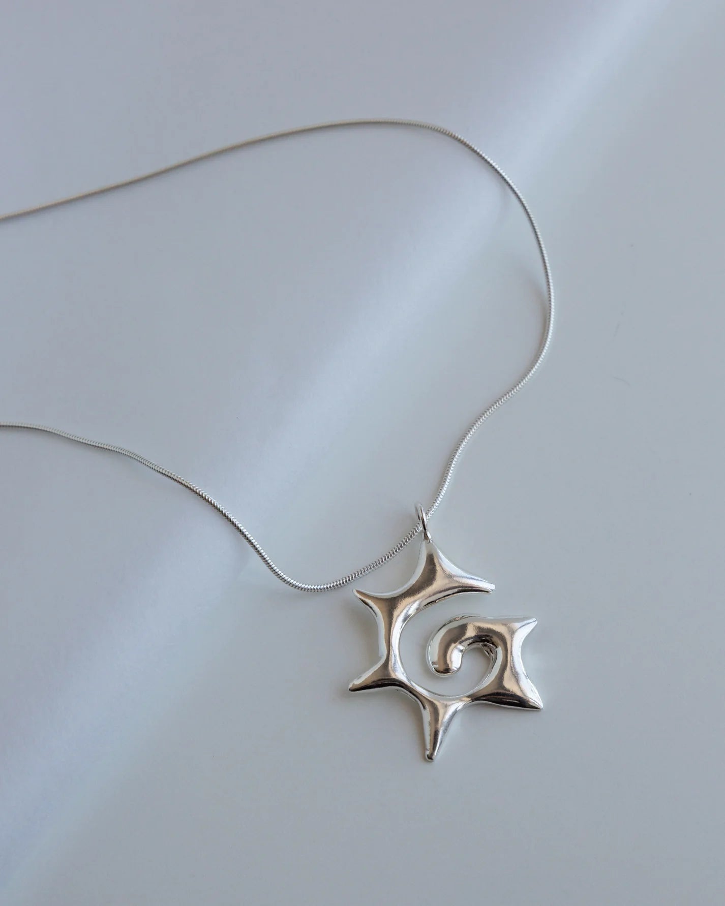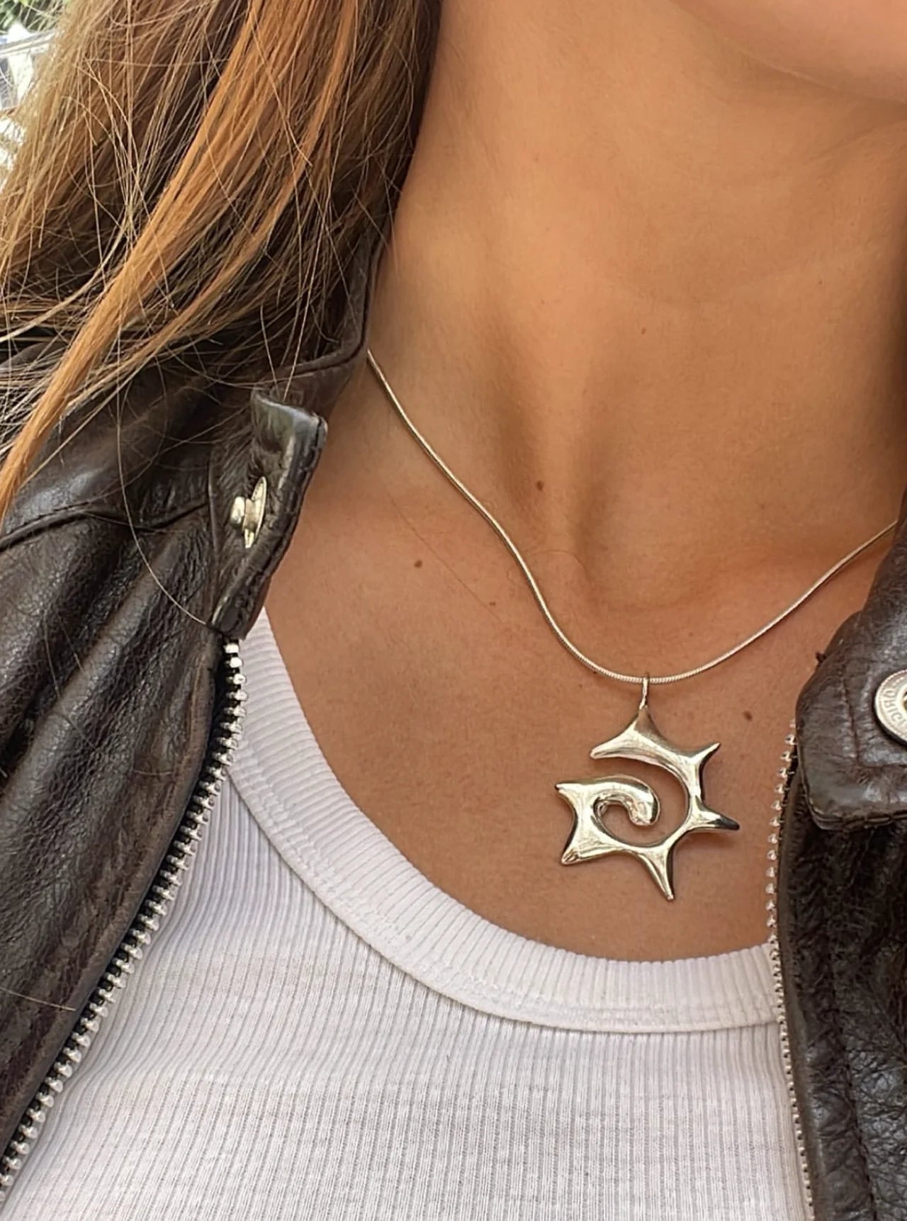 The SPIKY SPIRAL is a unique, handmade necklace with a cool, spiky shaped pendant. It embodies the radiance of cosmic energy, the life force that keeps the whole universe in continual motion. It is the pattern of eternal life, creation, evolution, awareness and growth.