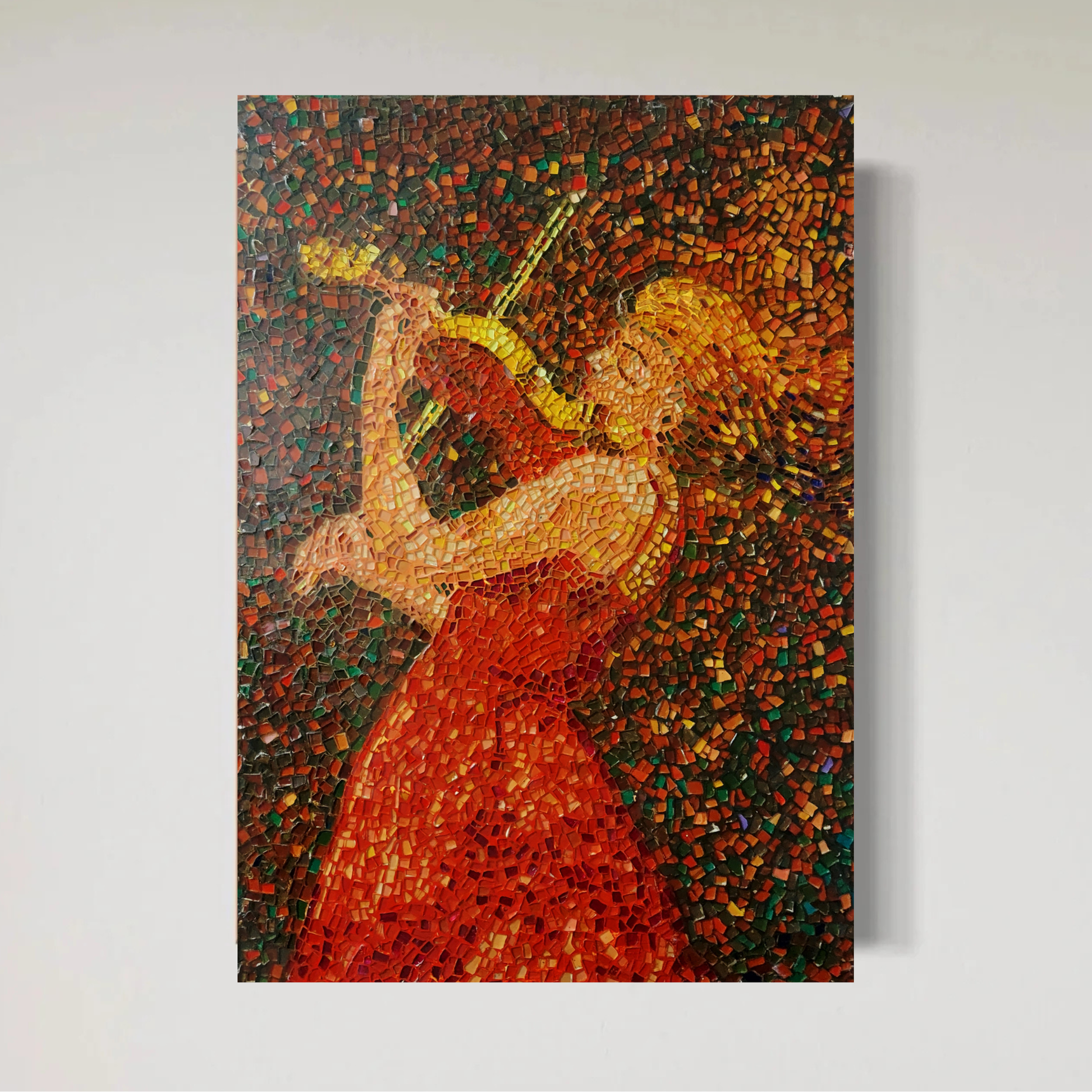 A unique and exclusive mosaic artwork, created approximately 11 years ago, crafted from small hand-cut glass pieces tinted with oil paint. The piece unites the expressive qualities of traditional painting with the brilliance of glass art, resulting in a vibrant and timeless impression.