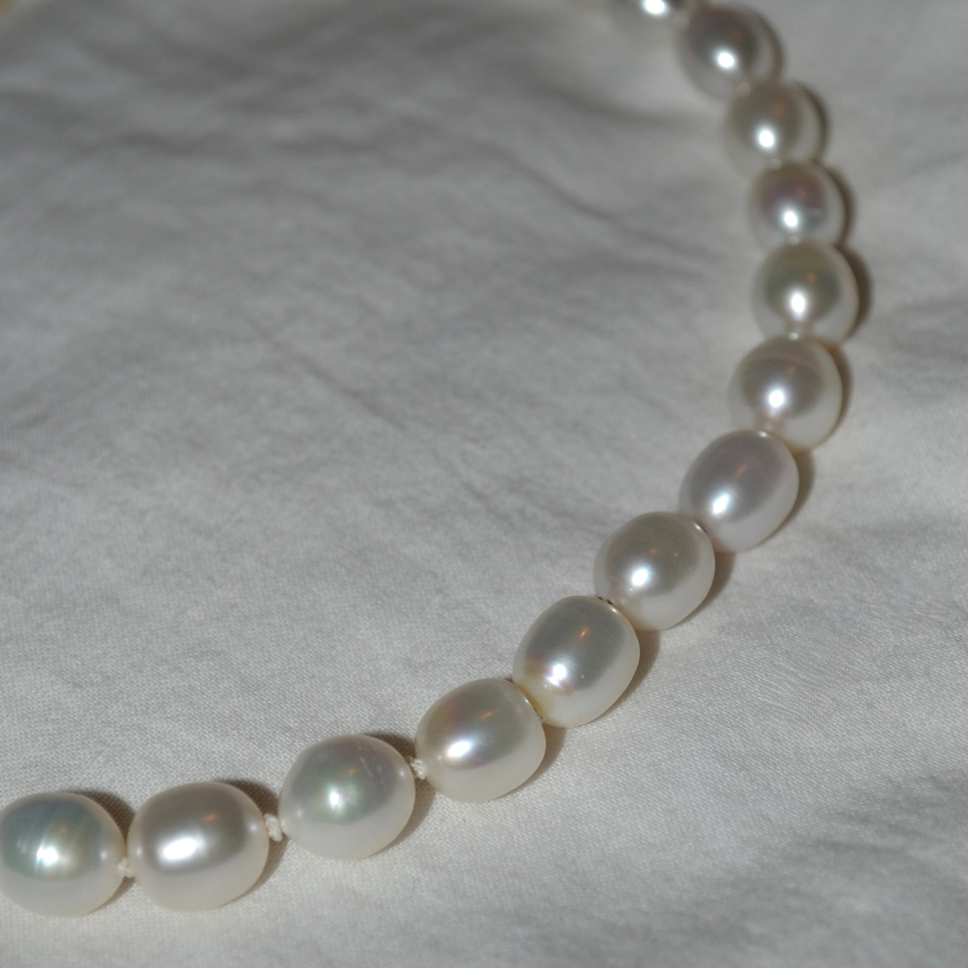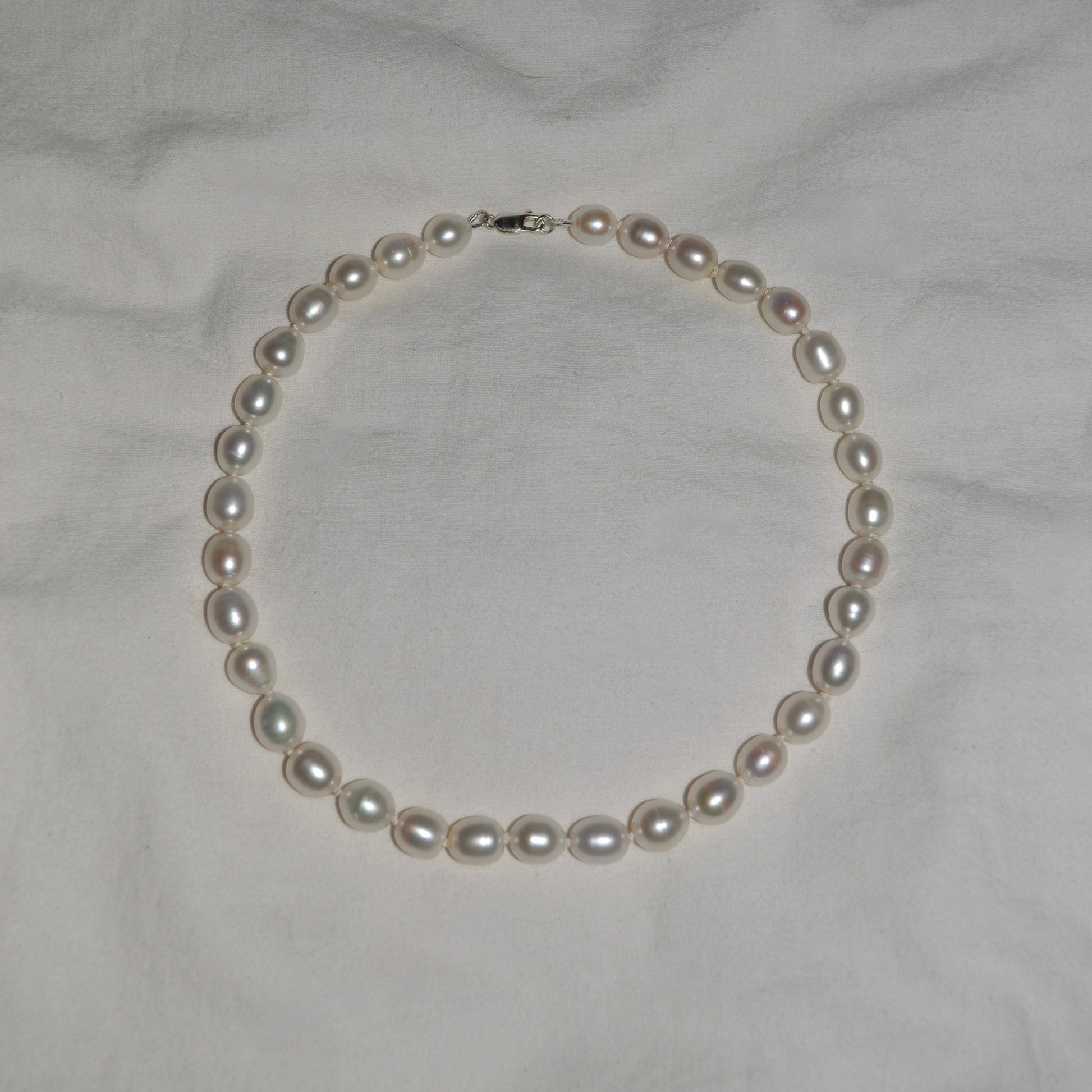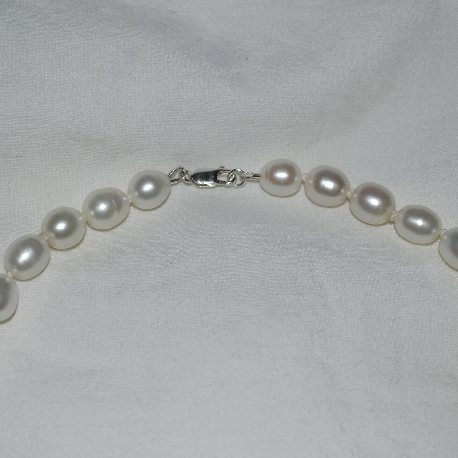 A beautiful pearl necklace with a stylish sterling silver detail. Handmade with care in Stockholm - a timeless piece of jewelry where each piece is unique, and natural variations may occur.