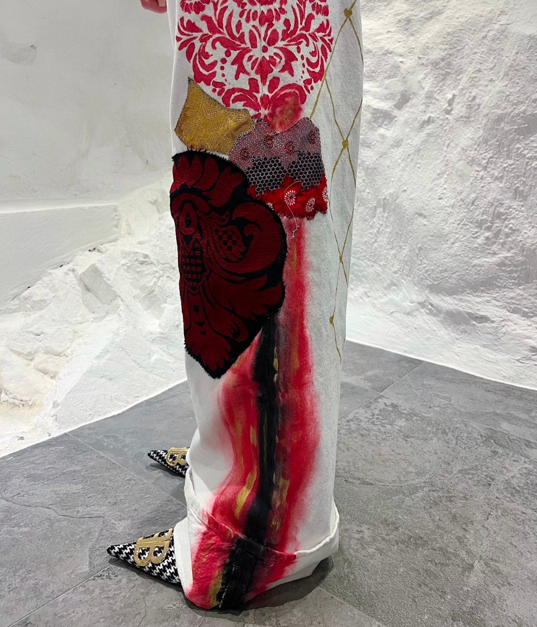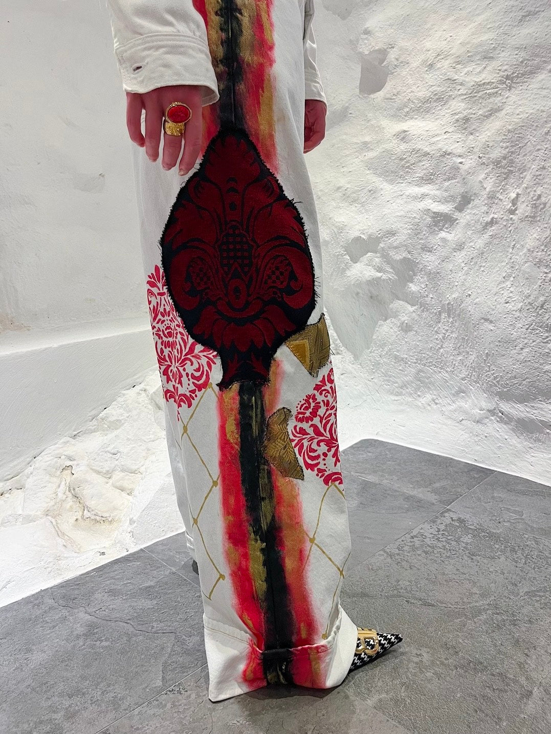 Hand painted and hand decorated jeans in white