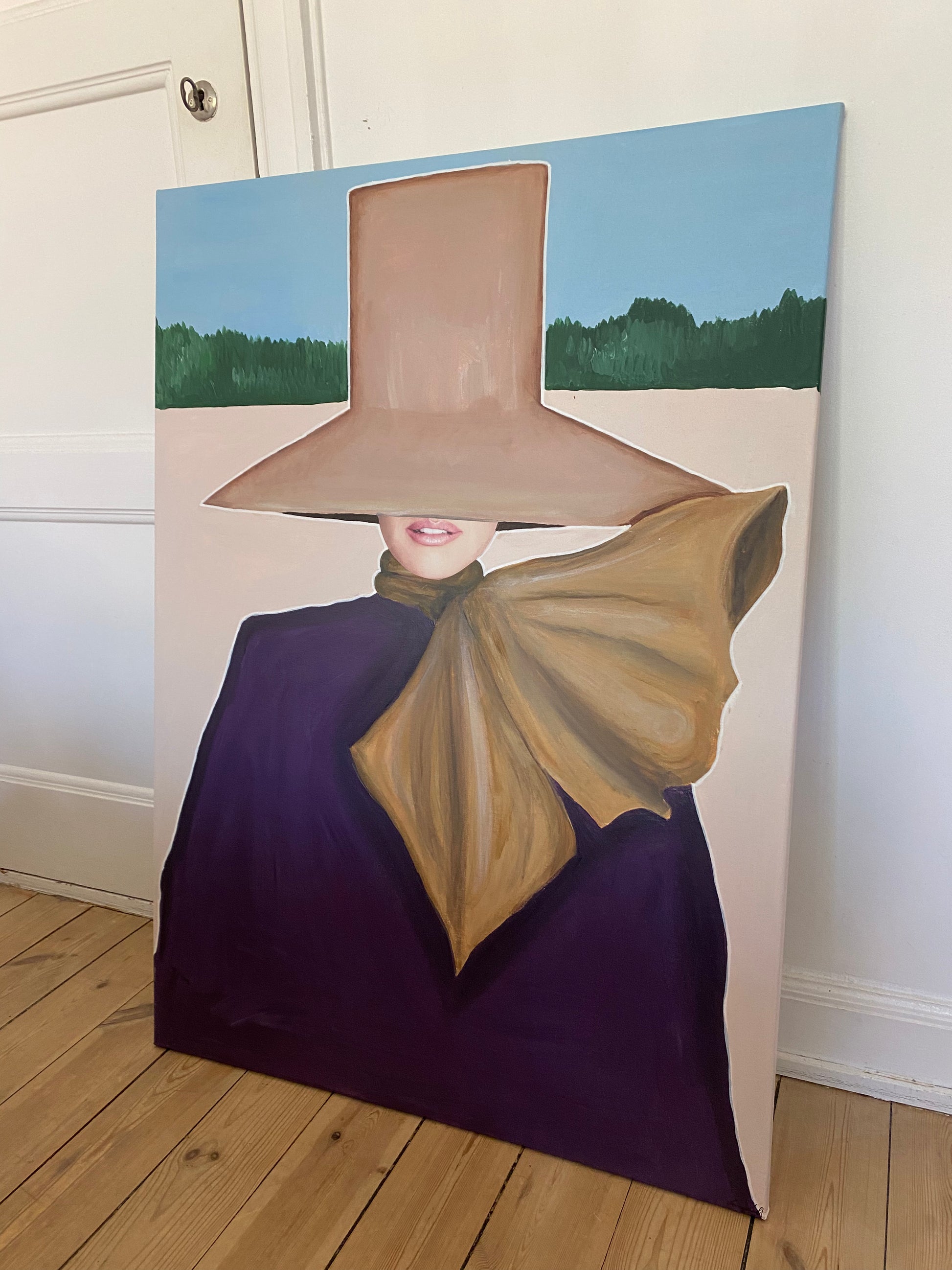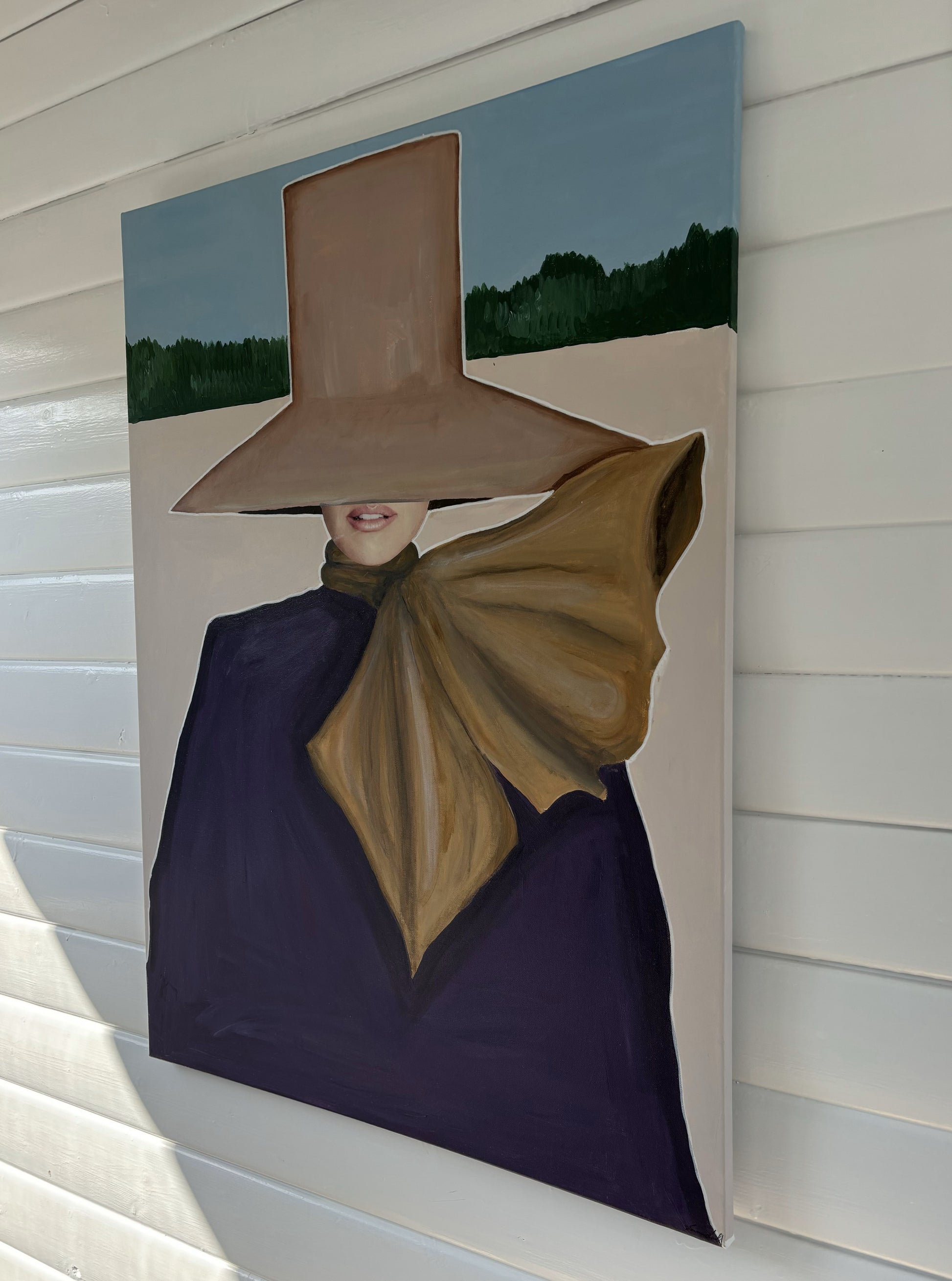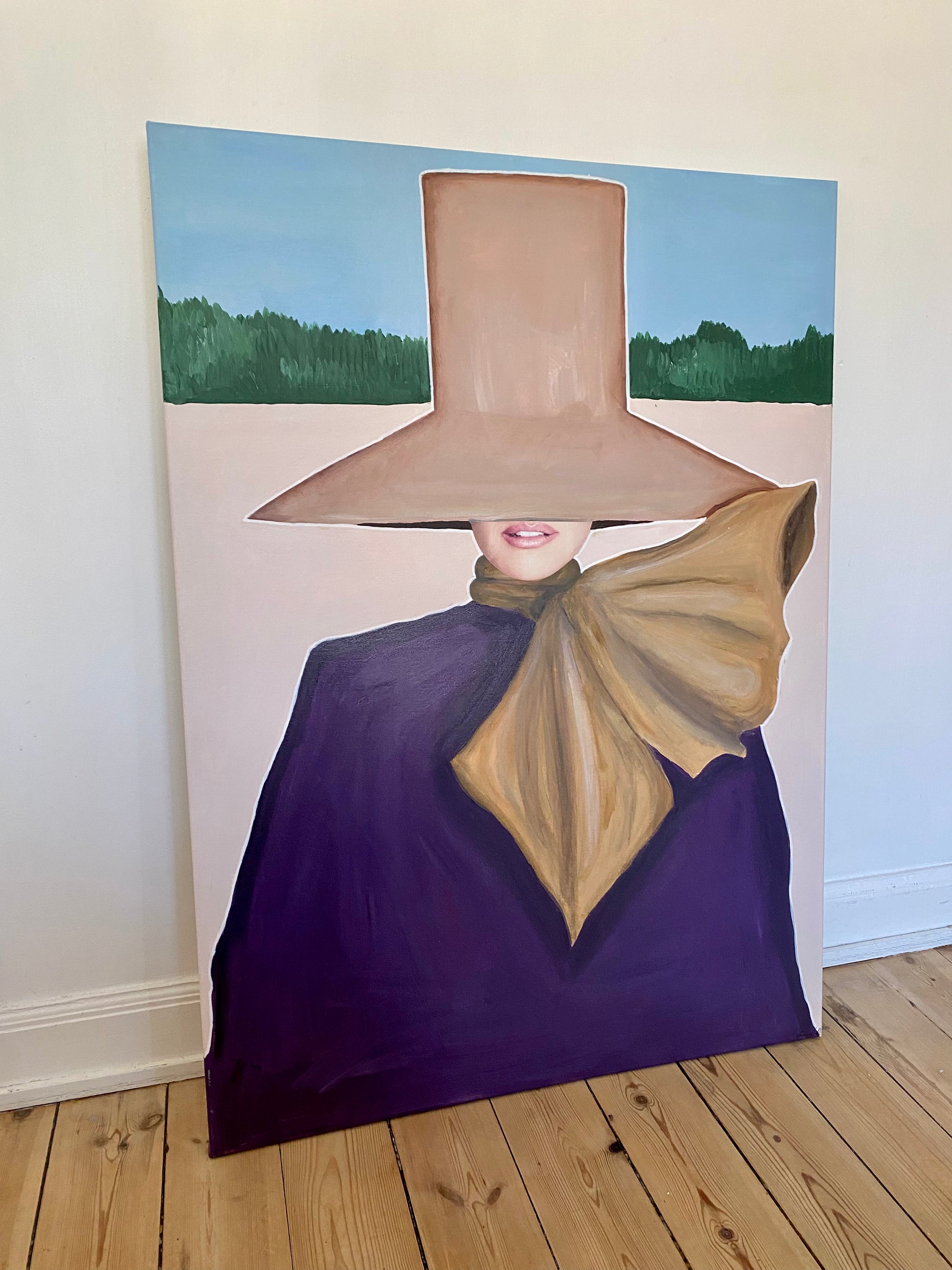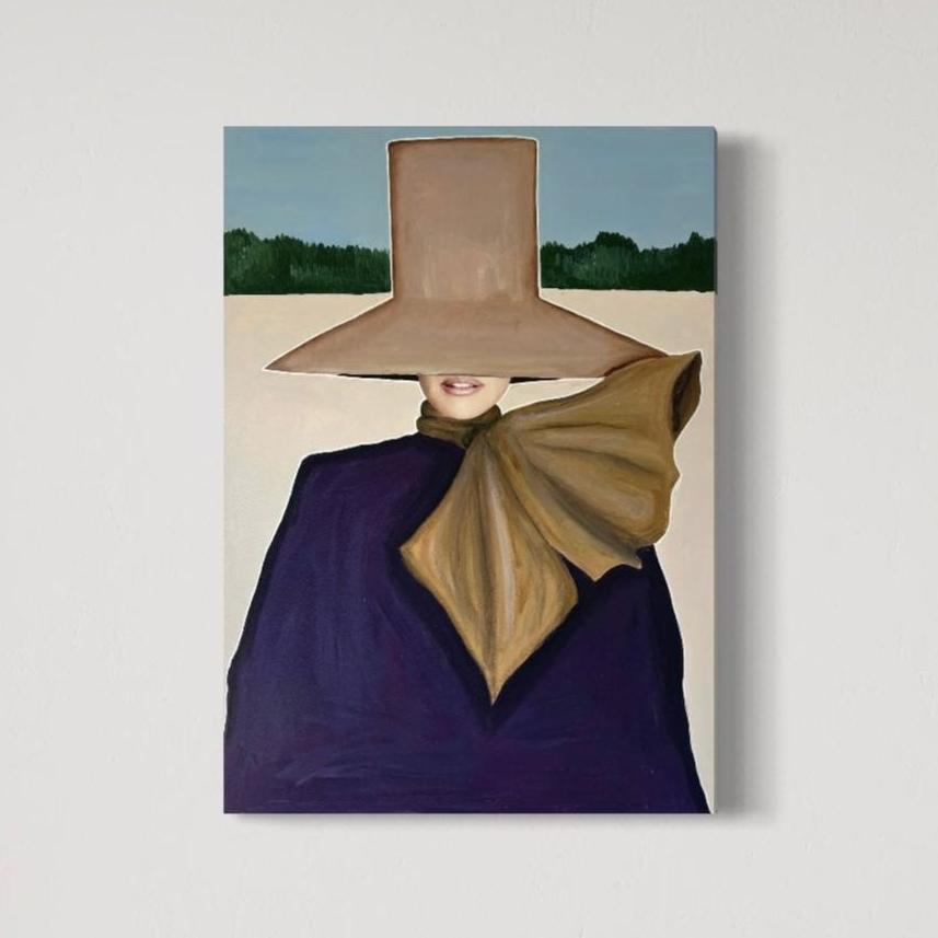 Bring movement and style into your home with “Wind”, an original painting by the talented Emma Lisnell. This captivating piece embodies a dynamic blend of fashion and art, portraying a figure gracefully enveloped by flowing fabric and a wide-brimmed hat. The bold use of color and textured brushstrokes create a sense of motion, making it a striking focal point for any modern interior.