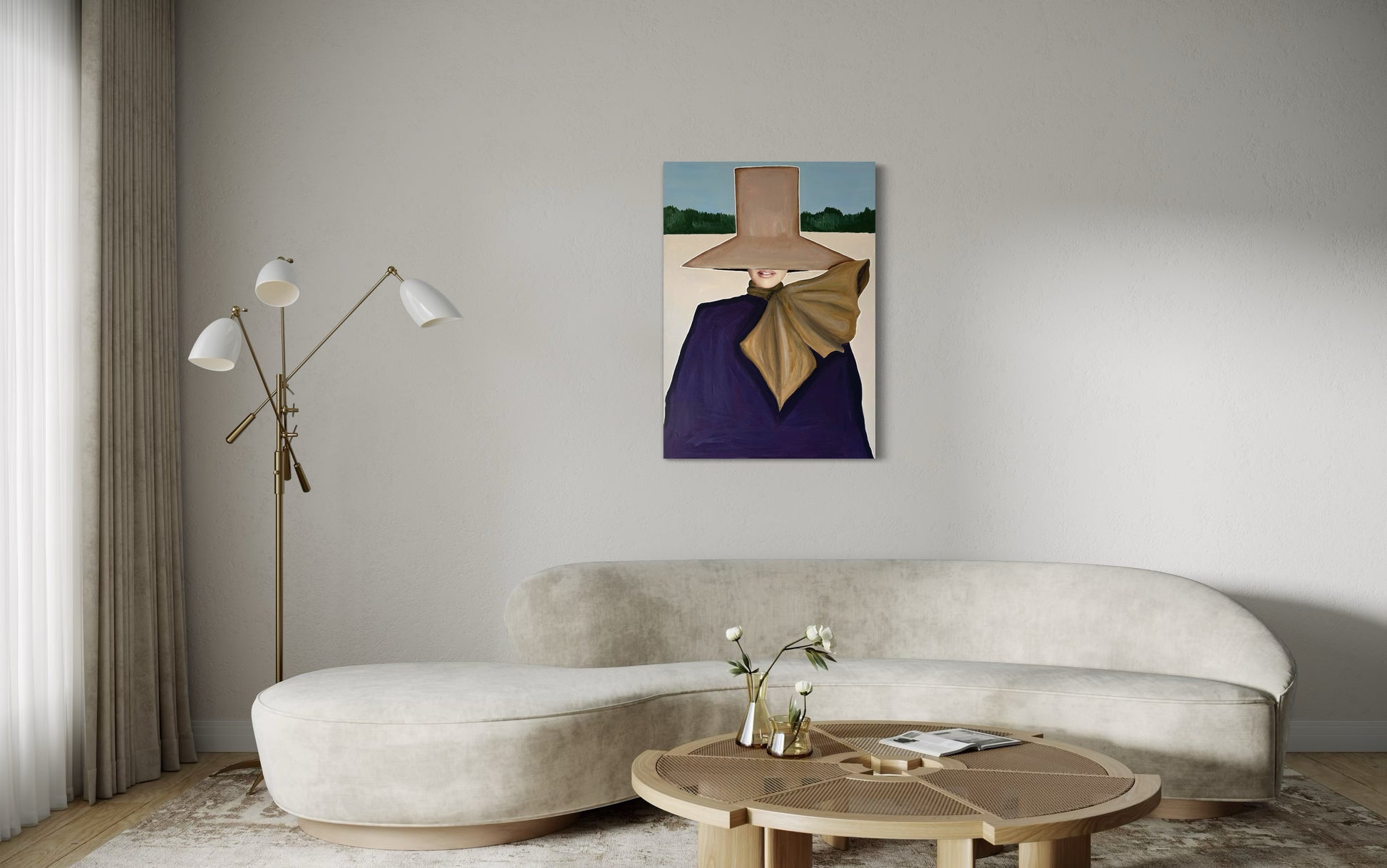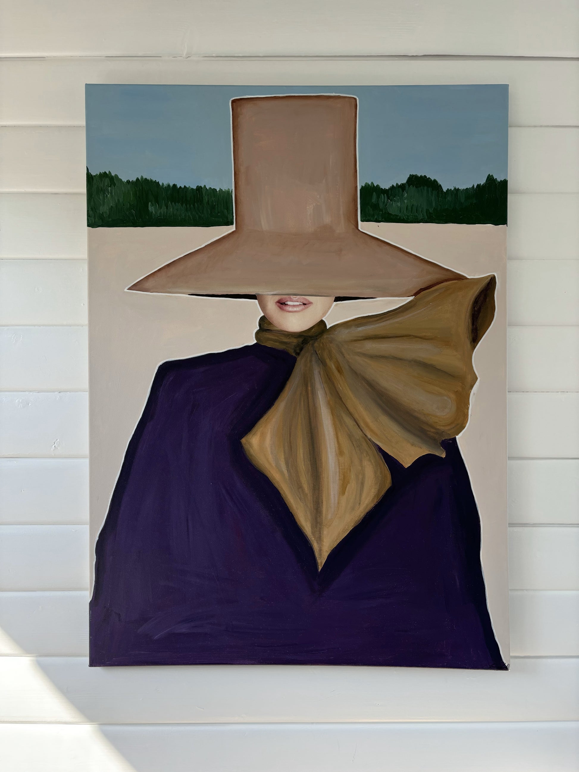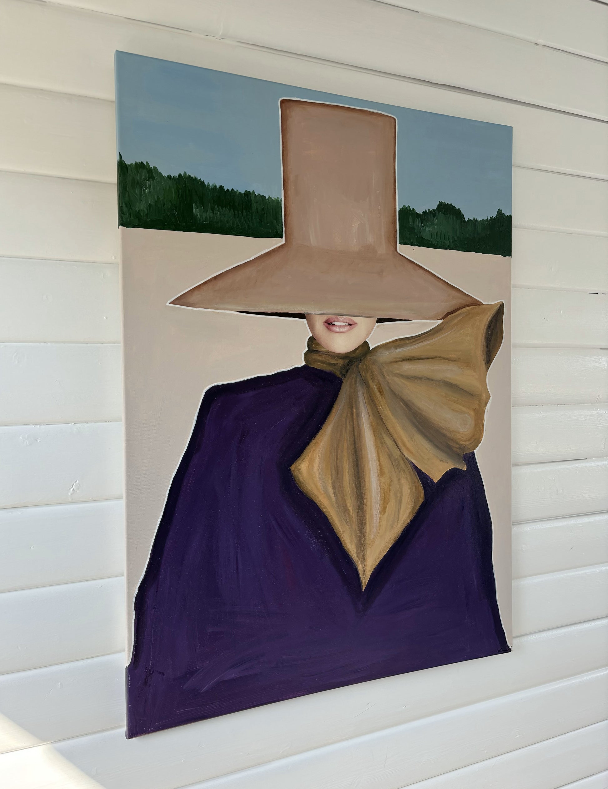 Bring movement and style into your home with “Wind”, an original painting by the talented Emma Lisnell. This captivating piece embodies a dynamic blend of fashion and art, portraying a figure gracefully enveloped by flowing fabric and a wide-brimmed hat. The bold use of color and textured brushstrokes create a sense of motion, making it a striking focal point for any modern interior.