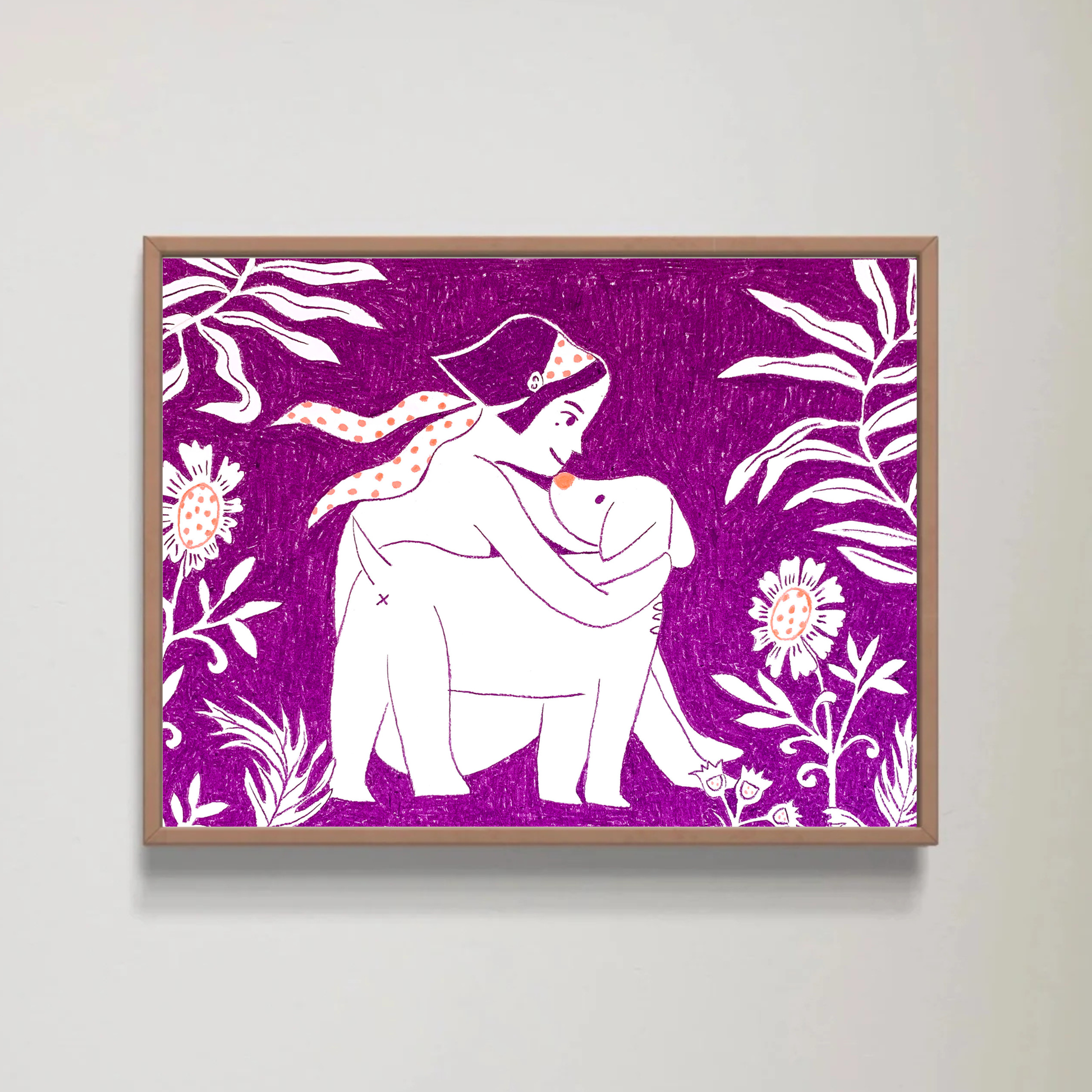The moment I first looked at you, I just knew we were meant to be together—growing together. Created with oil pastels in grape, with hints of pink hues on 250g Materica paper, size 50 x 70 cm.